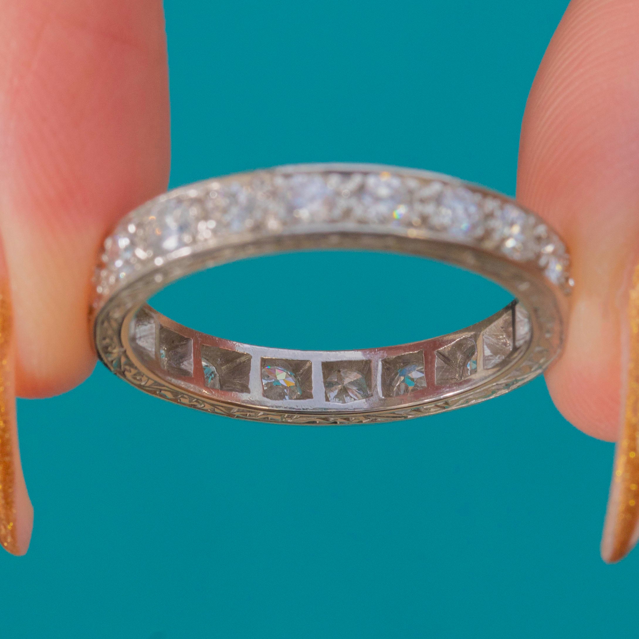 1.60ct Platinum Art Deco Diamond Eternity Ring- Engraved Profile