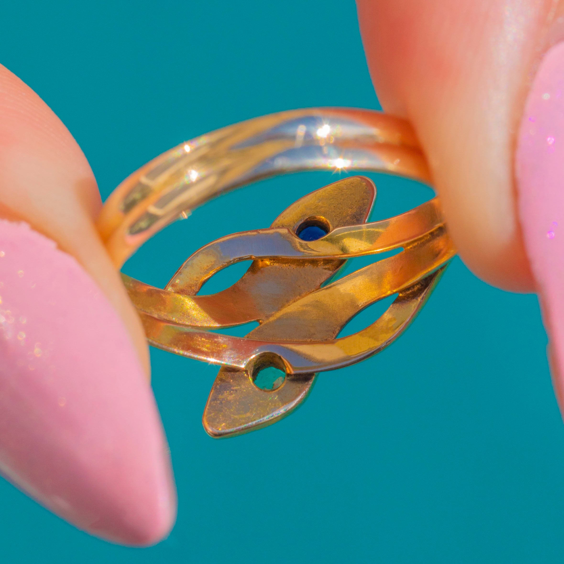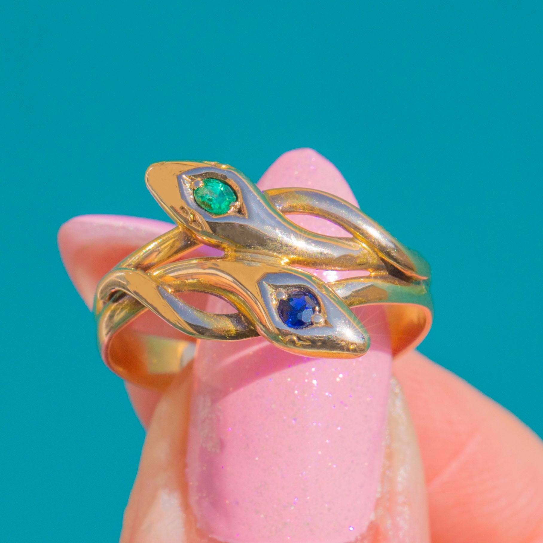 14ct Gold Emerald Sapphire Twisted Snake Ring