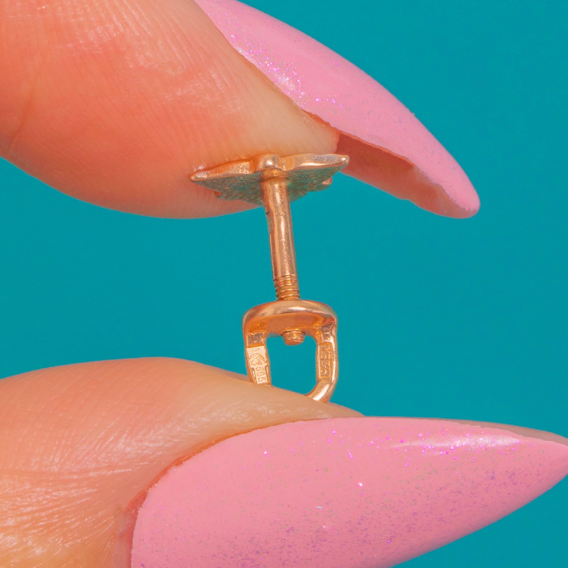 The contrasting tones of Rose and White Gold lend subtle depth and a timeless elegance, perfect for elevating everyday wear. Finished with secure screw-in backs for added peace of mind, they offer a charming dose of vintage craftsmanship in a compact silhouette.