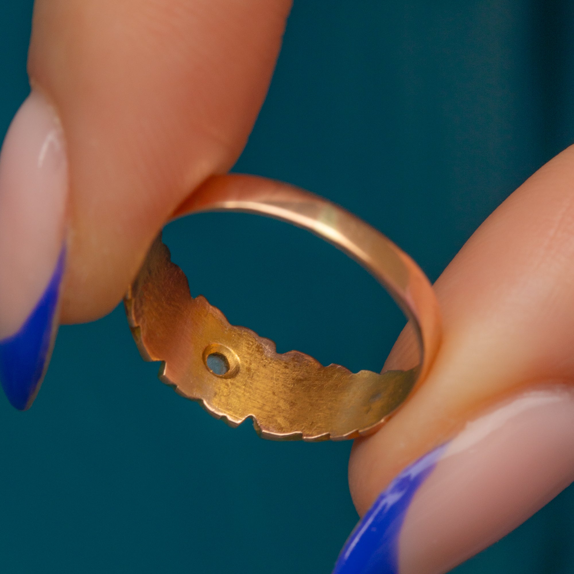 This exquisite 15ct Gold Rose-Cut Diamond Pearl gypsy ring will make your collection stand out from the rest! Crafted from rare and sumptuous 15ct Gold displaying a delectable selection of gemstones across its centre, this Victorian ring will add texture and luxury to your ring stack.