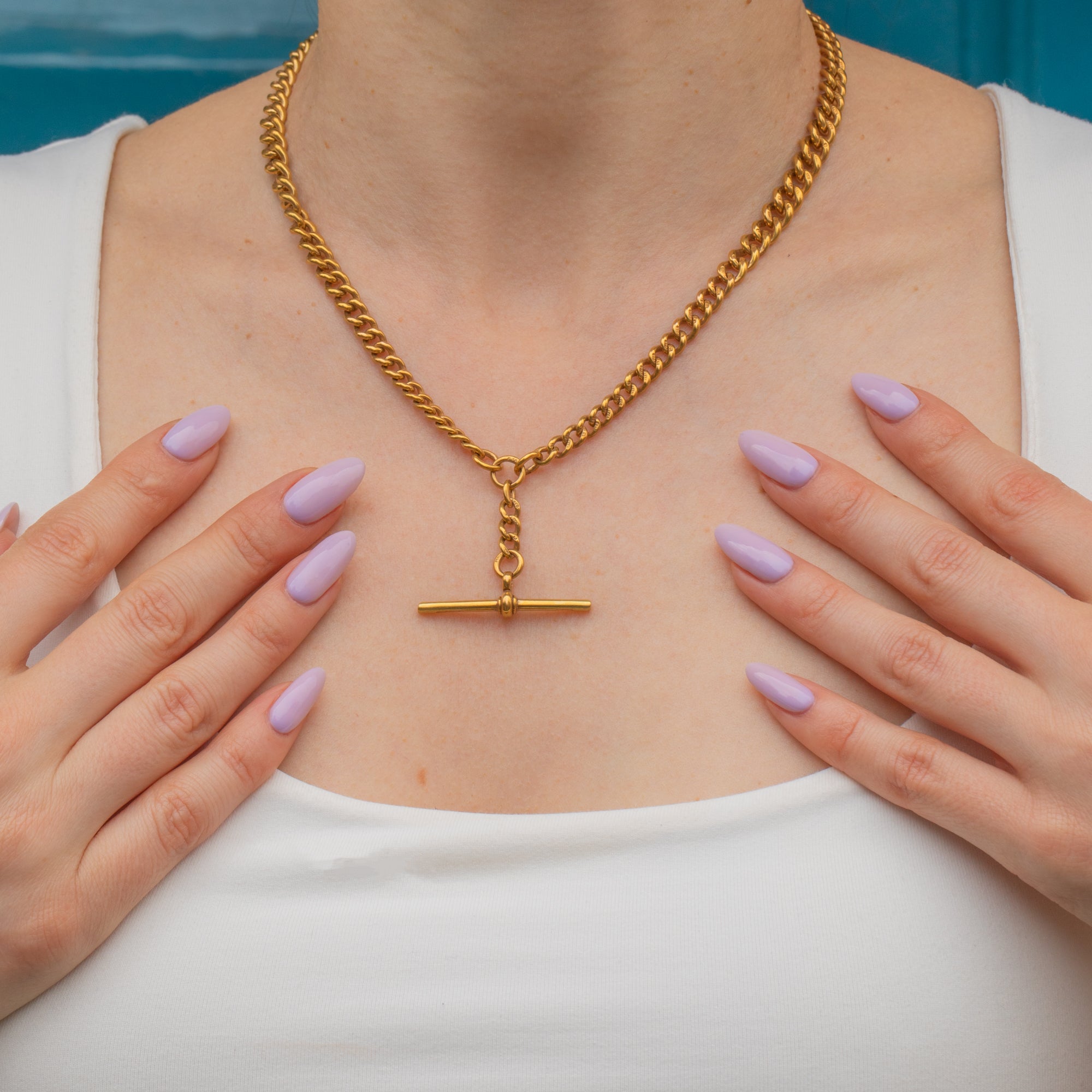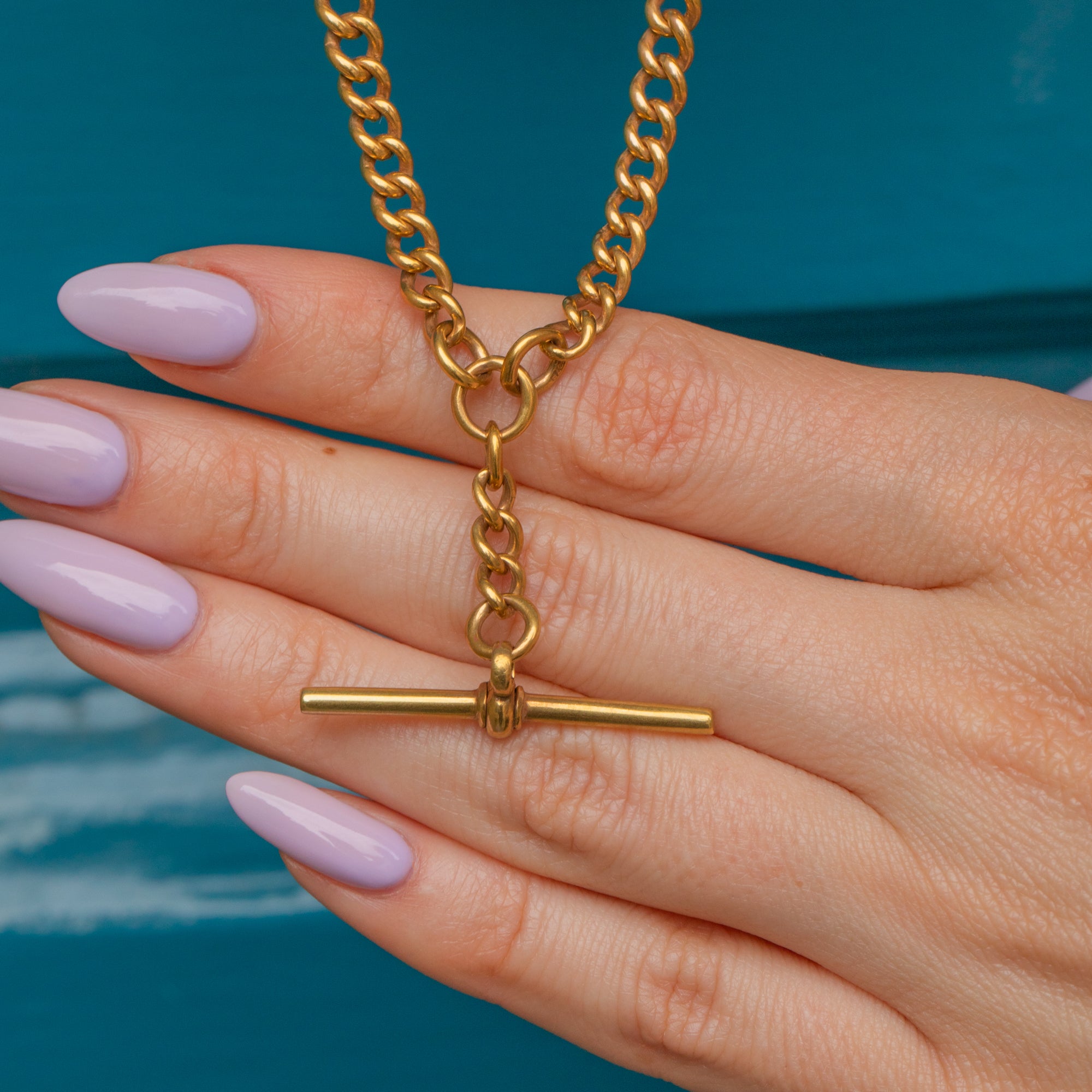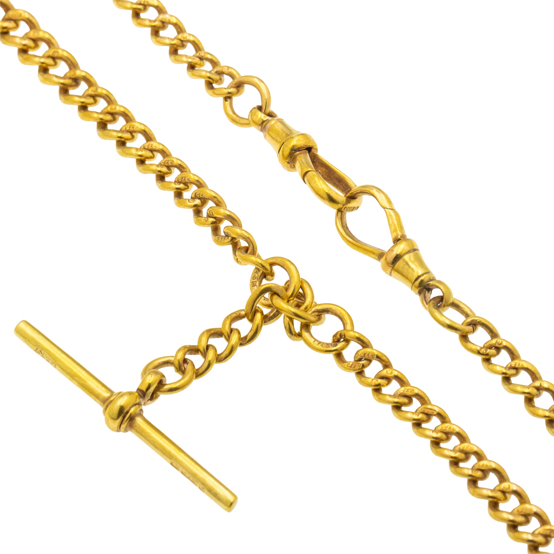 This 16.5" Victorian 9ct Gold graduating Albert chain is a versatile piece of antique jewellery you will want to wear on every occasion! This Victorian chain is crafted from 33g of solid 9ct Gold, with a suspended T-bar and two matching dog-clips.