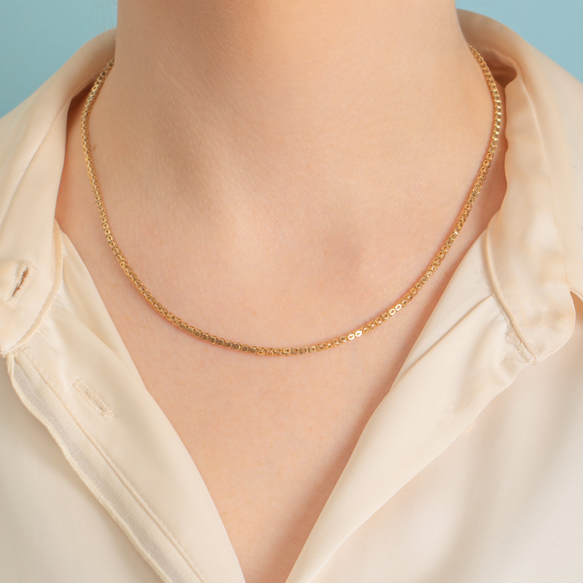 EXCELLENT. This antique 9ct Gold pierced link chain is in excellent condition. The Gold has an even saturation throughout and each link is uniform and securely connected, with no dings to the box links. The later added bolt ring is in perfect working order allowing you to wear this Victorian Gold chain with confidence!