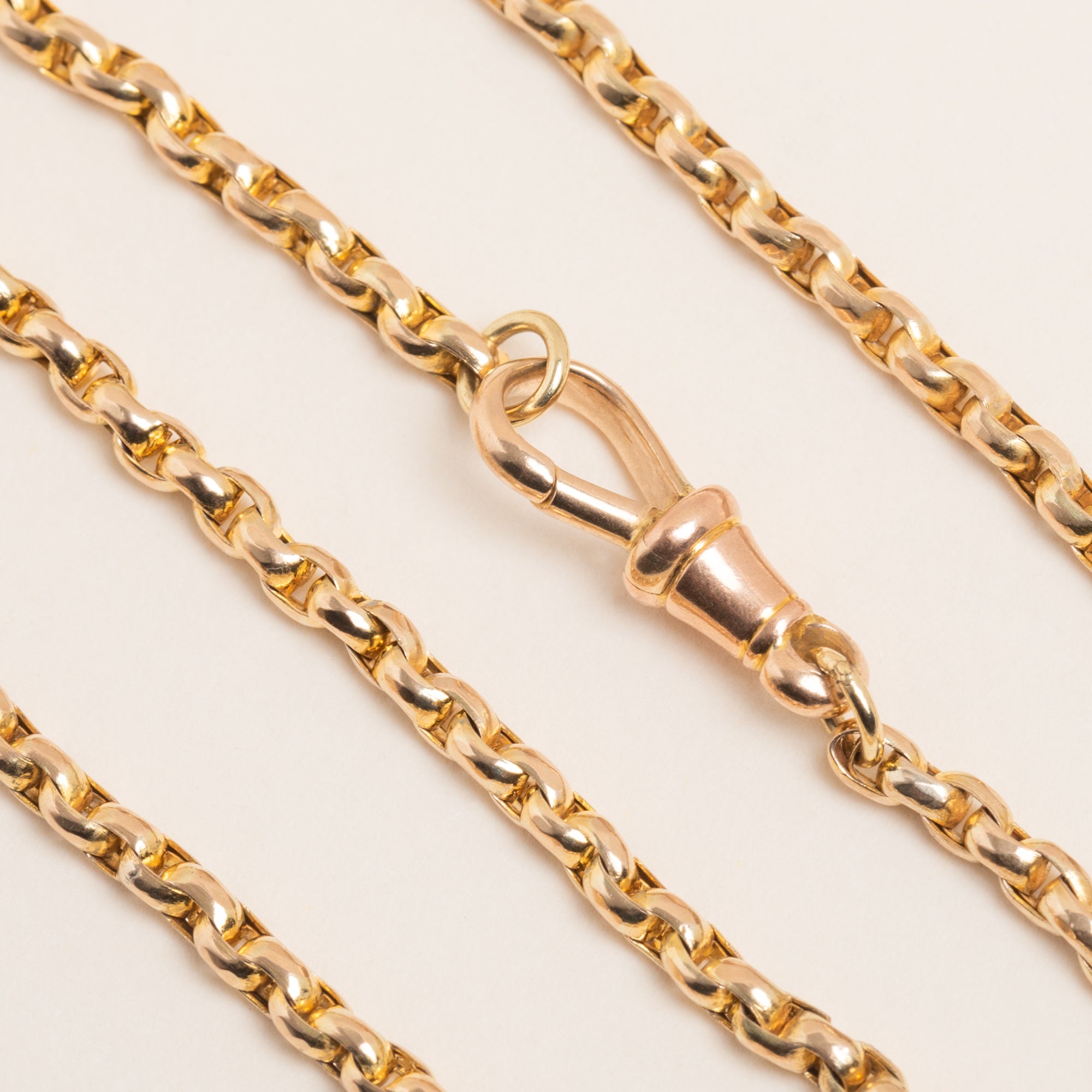 EXCELLENT. This 16" antique 9ct Gold belcher chain is in superb condition. Her links are uniform and secure, free from any visible signs of wear. Her gorgeous dog-clip is in great working order, providing confident and comfortable wear. In such wonderful condition, this Victorian Gold chain will make a superb addition to your collection!