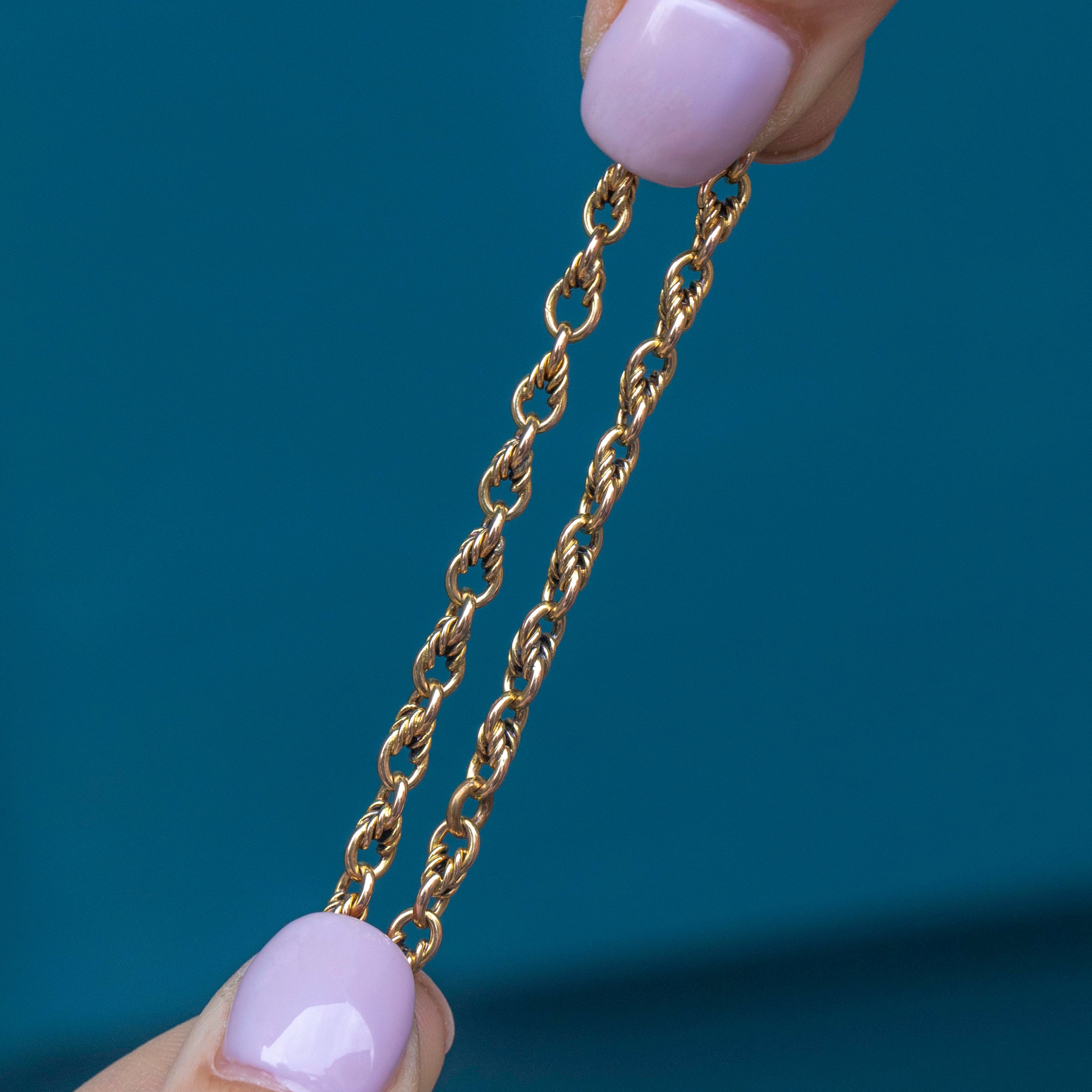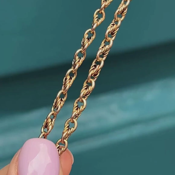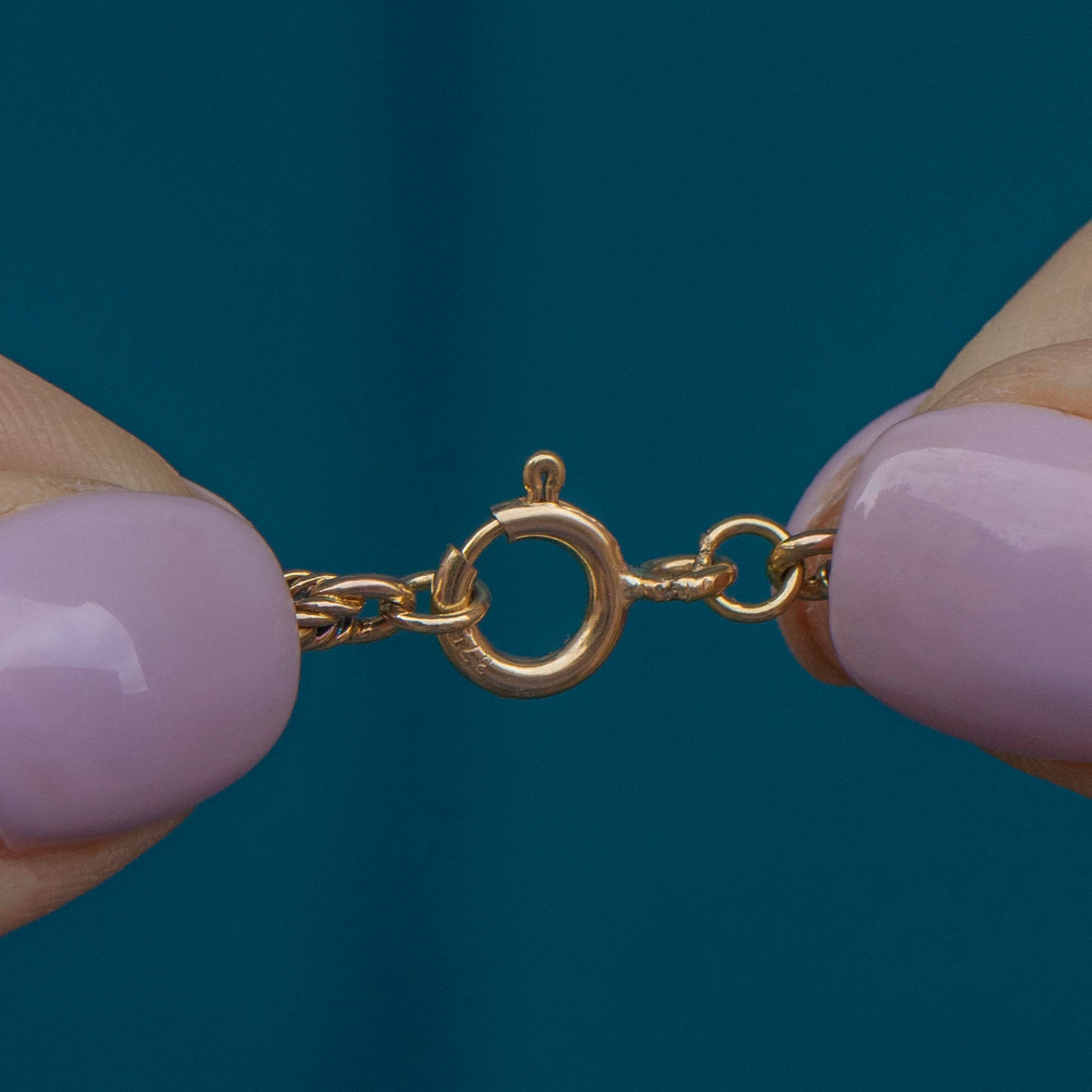 Fastened with a bolt-ring, this Gold necklace provides everything you could want and more from Victorian jewellery. At 16 inches, she is the perfect length to accompany both formal and informal attire making her an easy go-to piece!