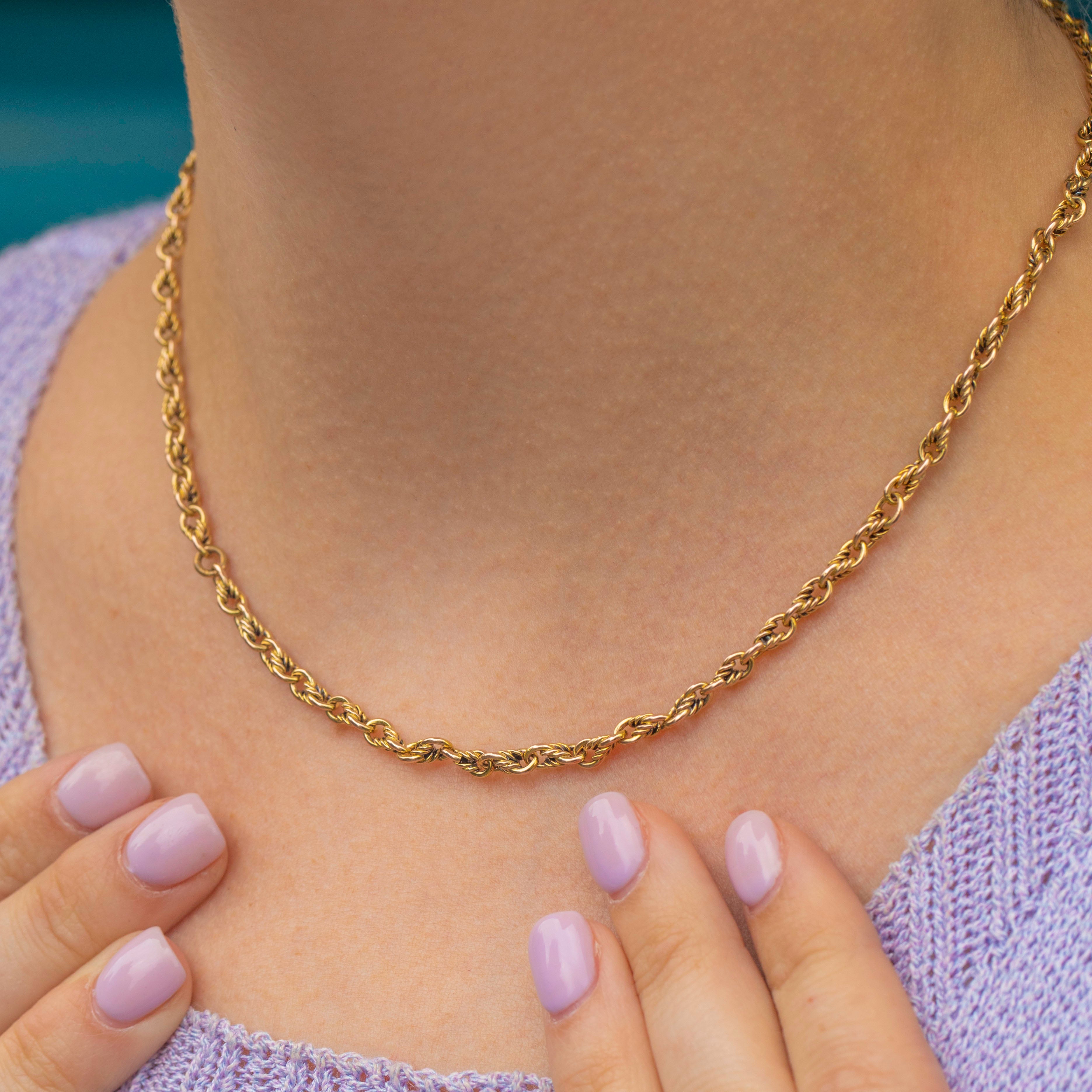 EXCELLENT. We are pleased to present this 16" antique 9ct Gold lover's knot link chain in excellent condition! The links are all firmly connected and uniform, with no damage to note. The later added bolt-ring is in perfect working order, securely holding this Victorian Gold chain around your neck!