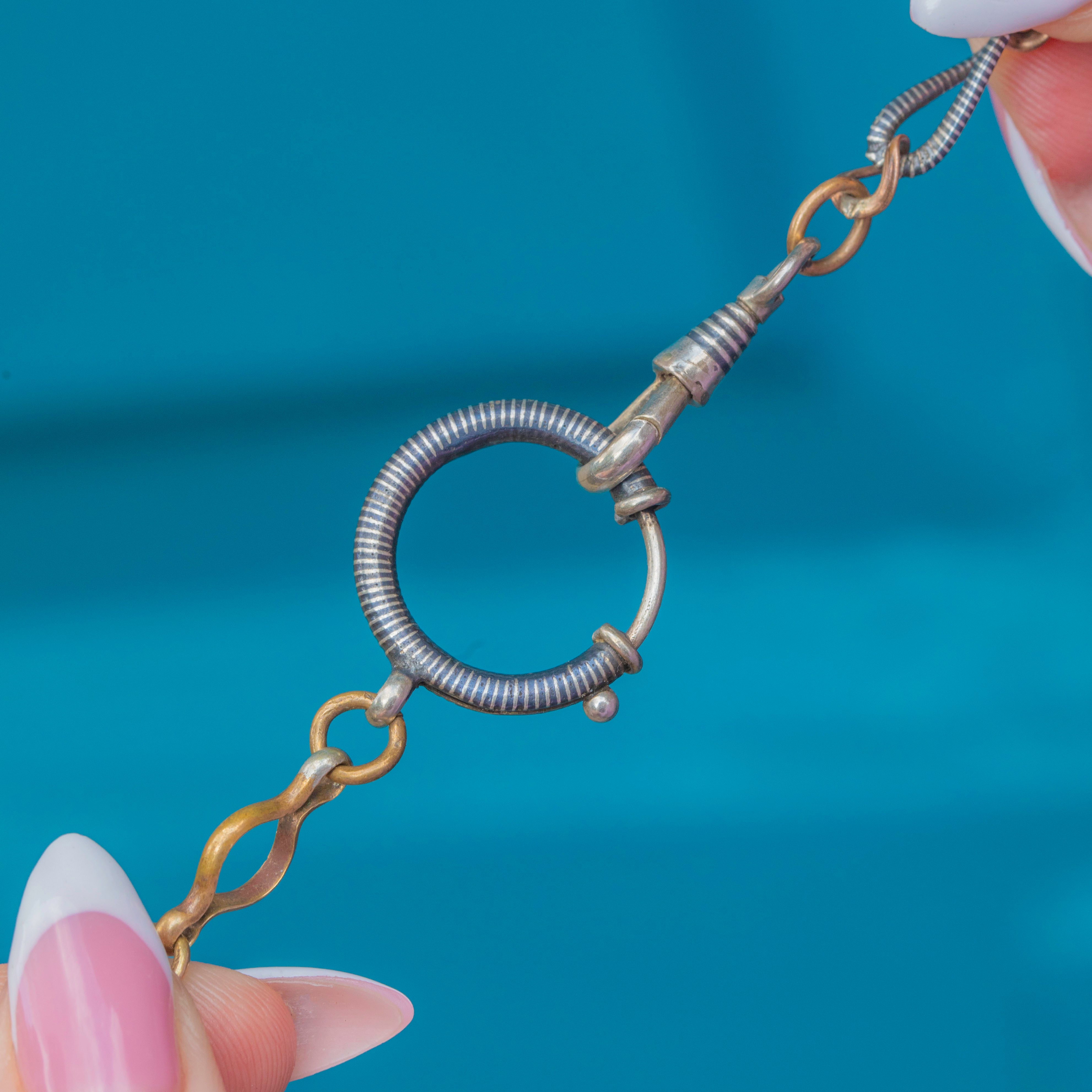 VERY GOOD: The links are robust and securley connected with only some wear in areas. One of the links has lost its Niello detailing, but this does not impact the overall appearcnace of the chain. The dog clip is in perfect working order, and although there is some stiffness to the bolt ring, although she does shut securely, so you can wear this sought-after chain with confidence!