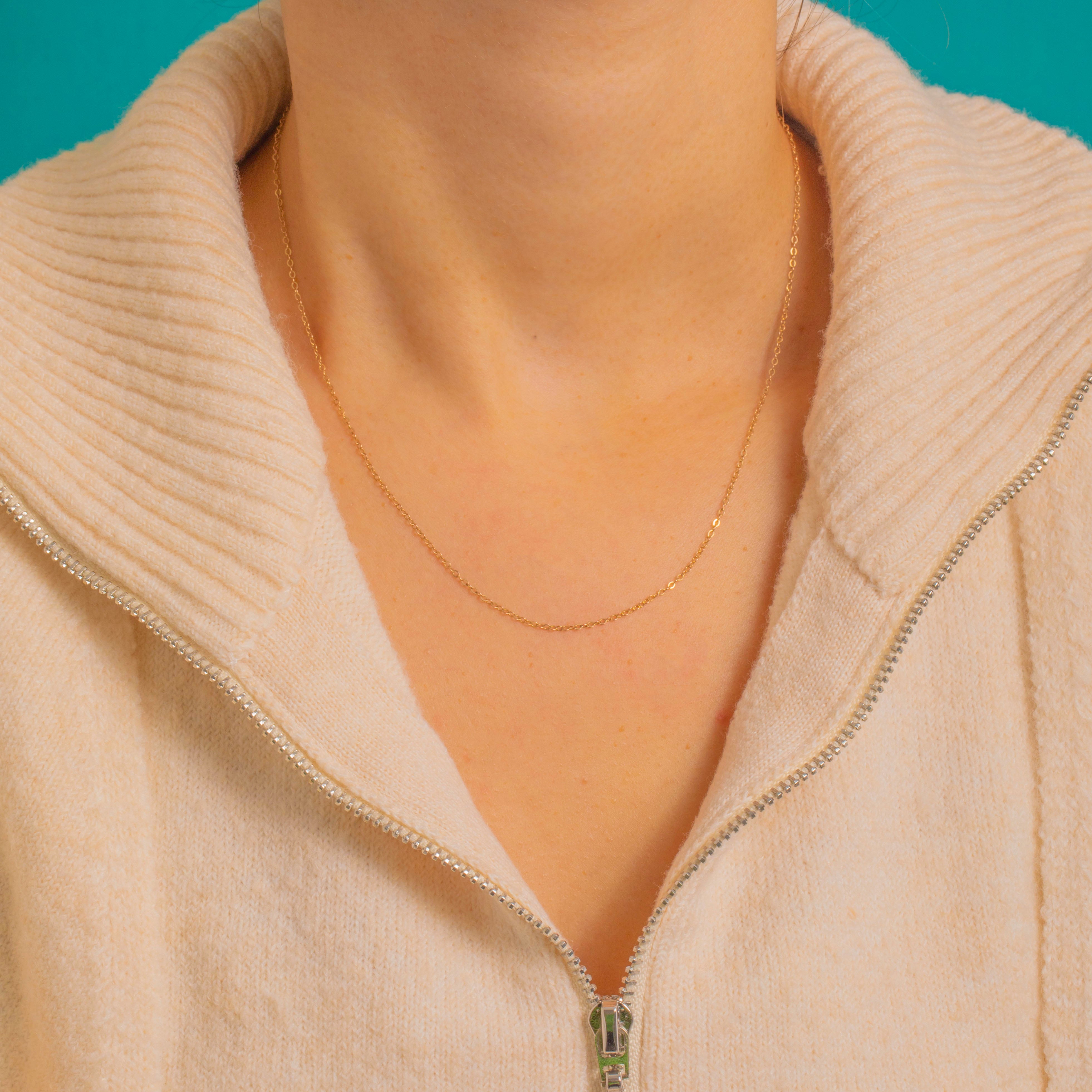 A timeless essential, this Vintage 9ct Gold trace chain is the perfect, delicate finishing touch. Its tiny, uniform oval links have a subtle, light-catching sheen and drape beautifully, giving a refined, minimalist look that layers effortlessly or anchors a favourite pendant. Completed with a classic spring-ring clasp, it’s a chic everyday staple you’ll reach for again and again.