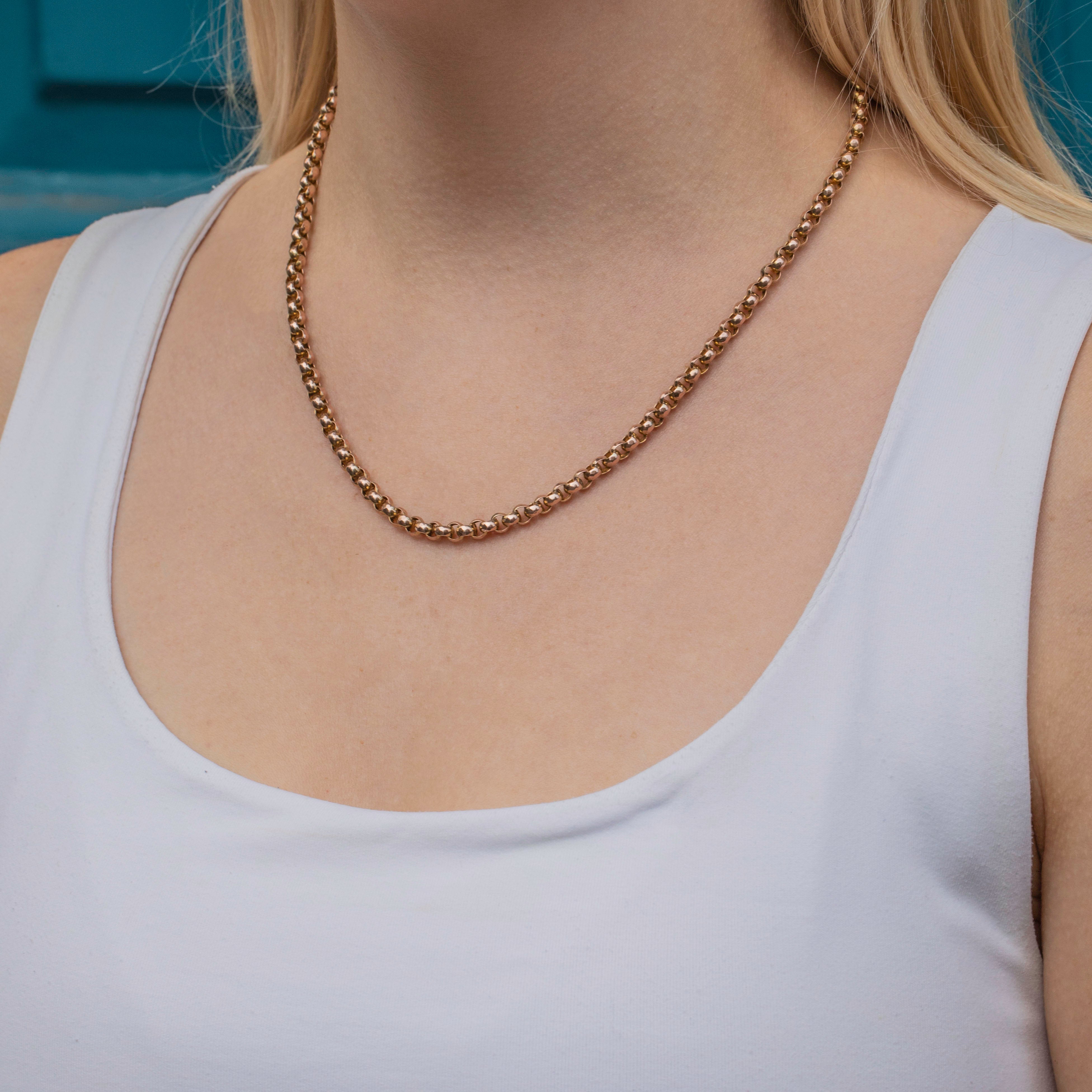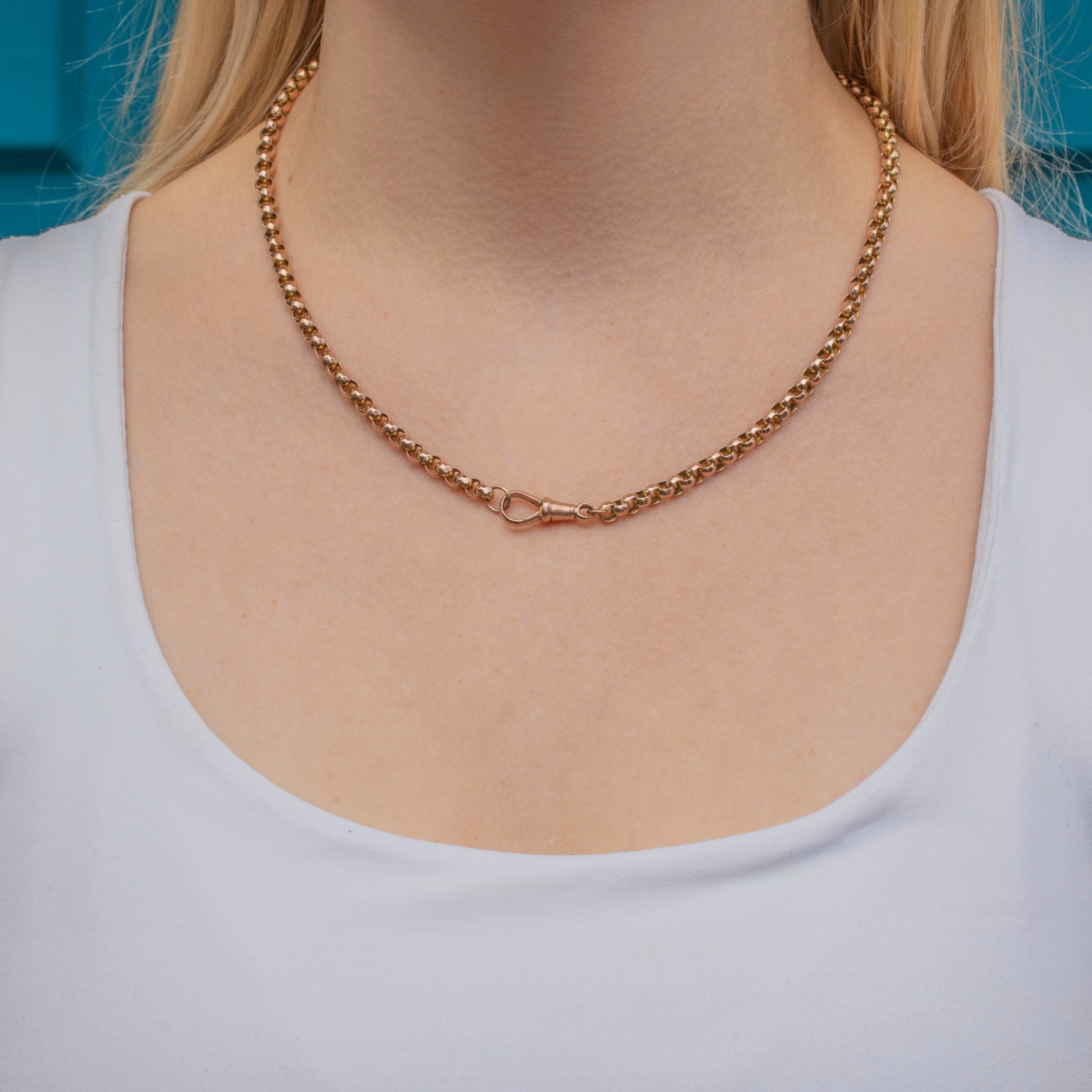 This 17" 9ct Gold Belcher link chain with dog-clip will become your new favourite go-to. 17" in length, this chain is a fantastic piece for both minimal elegant wear and stacking with longer or shorter chains.