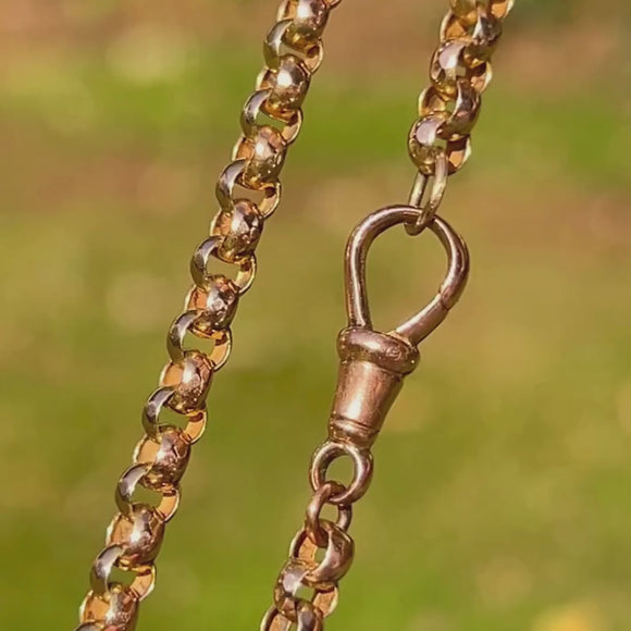 There are so many reasons why you will love this Victorian chain. The chain's colour is a rich hue of deep Gold, so she will is not only a fine collector's item, but also will instantly bring that element of luxury that antiques are so well known for. Layer this piece with your other Gold chains, or attach some charms to the dog clip!