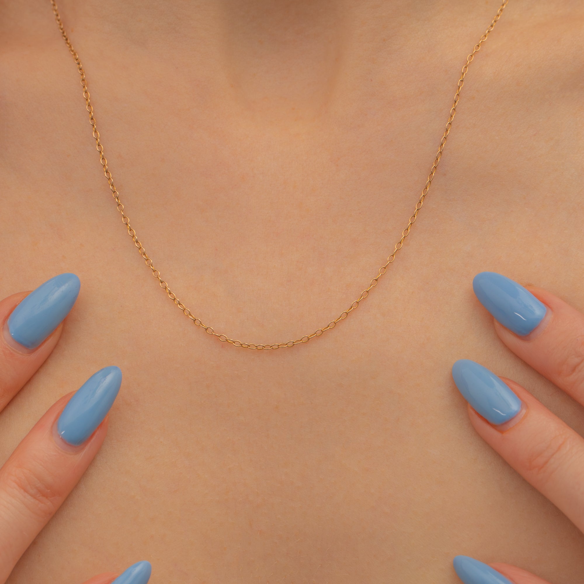 18.5" 9ct Gold Oval Skinny Pendant Chain