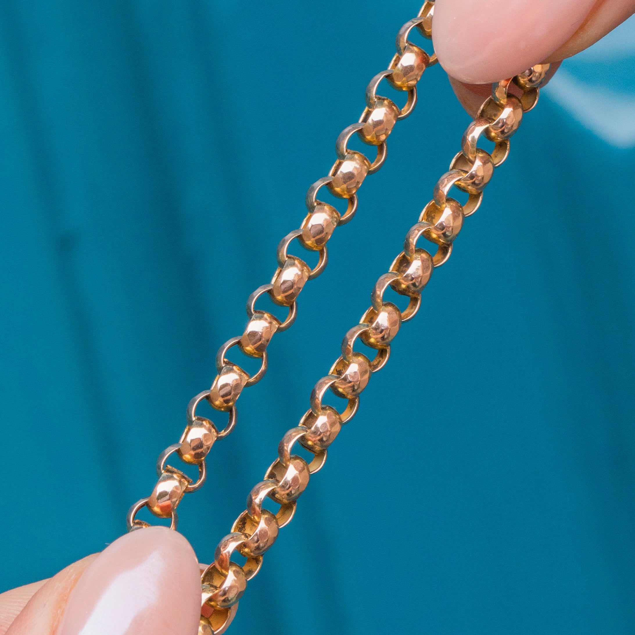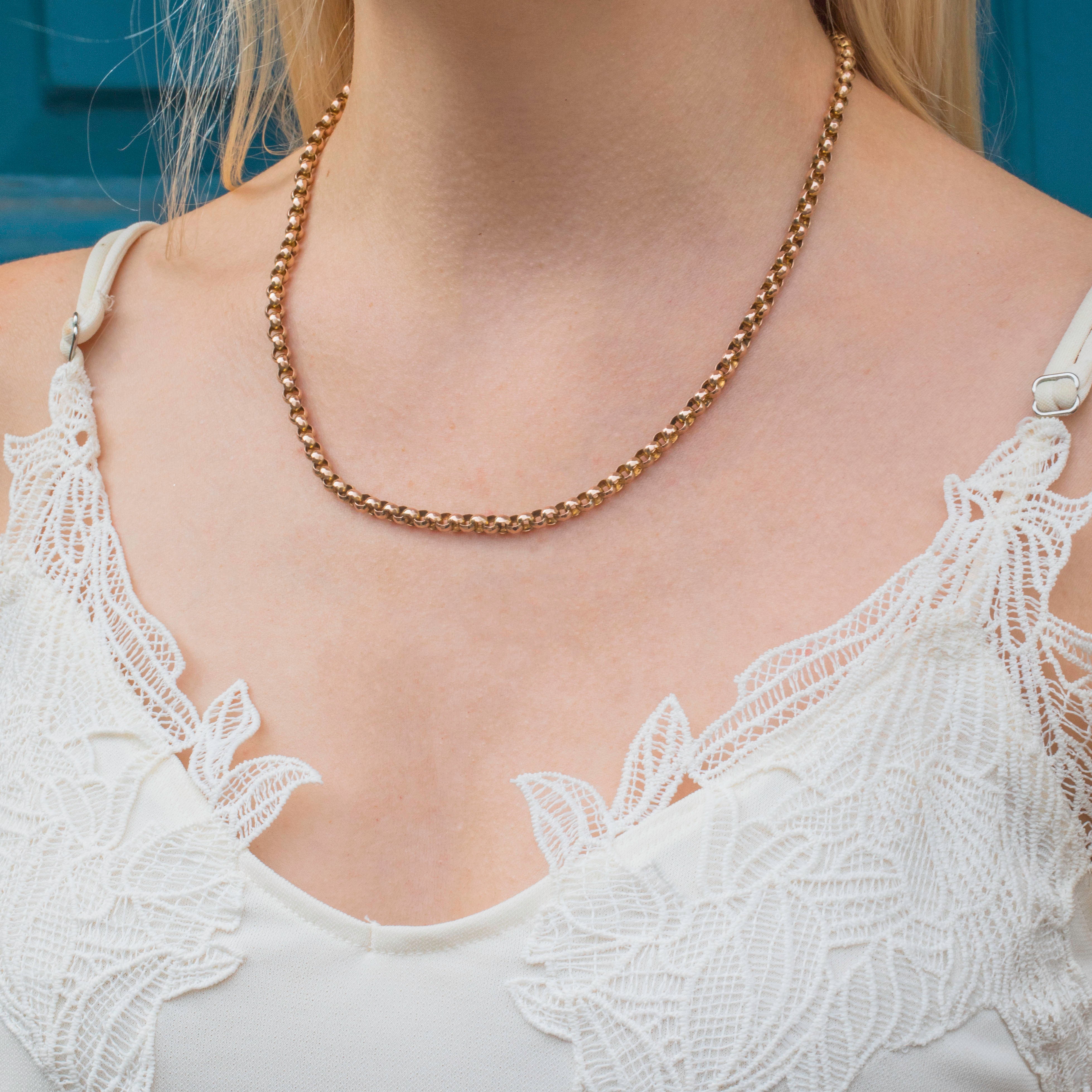 This delightful 18" 9ct Gold chunky belcher link chain exudes a bold and elegant charm! Her robust links rest gracefully along your collarbones, adding a touch of sophistication to your neckline.