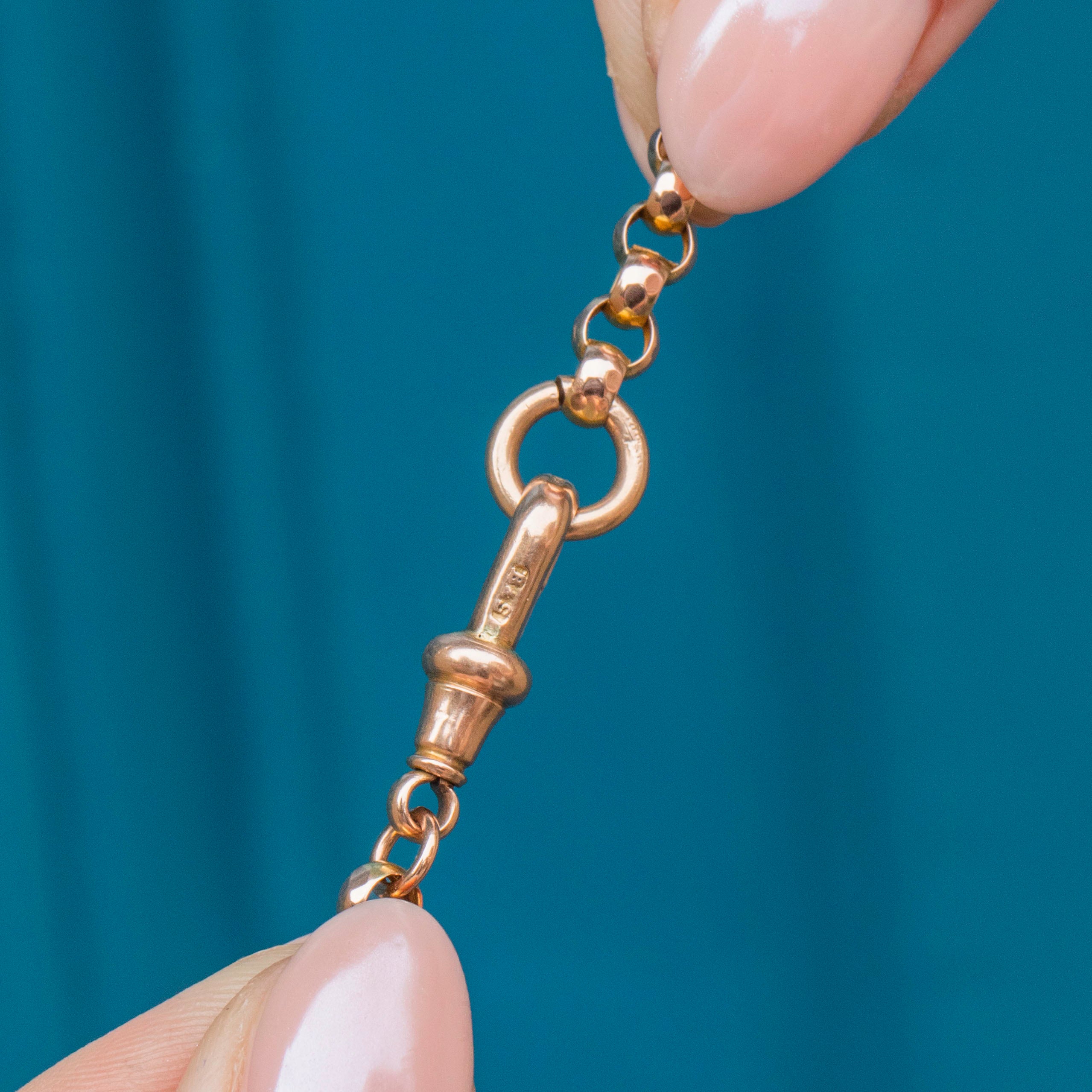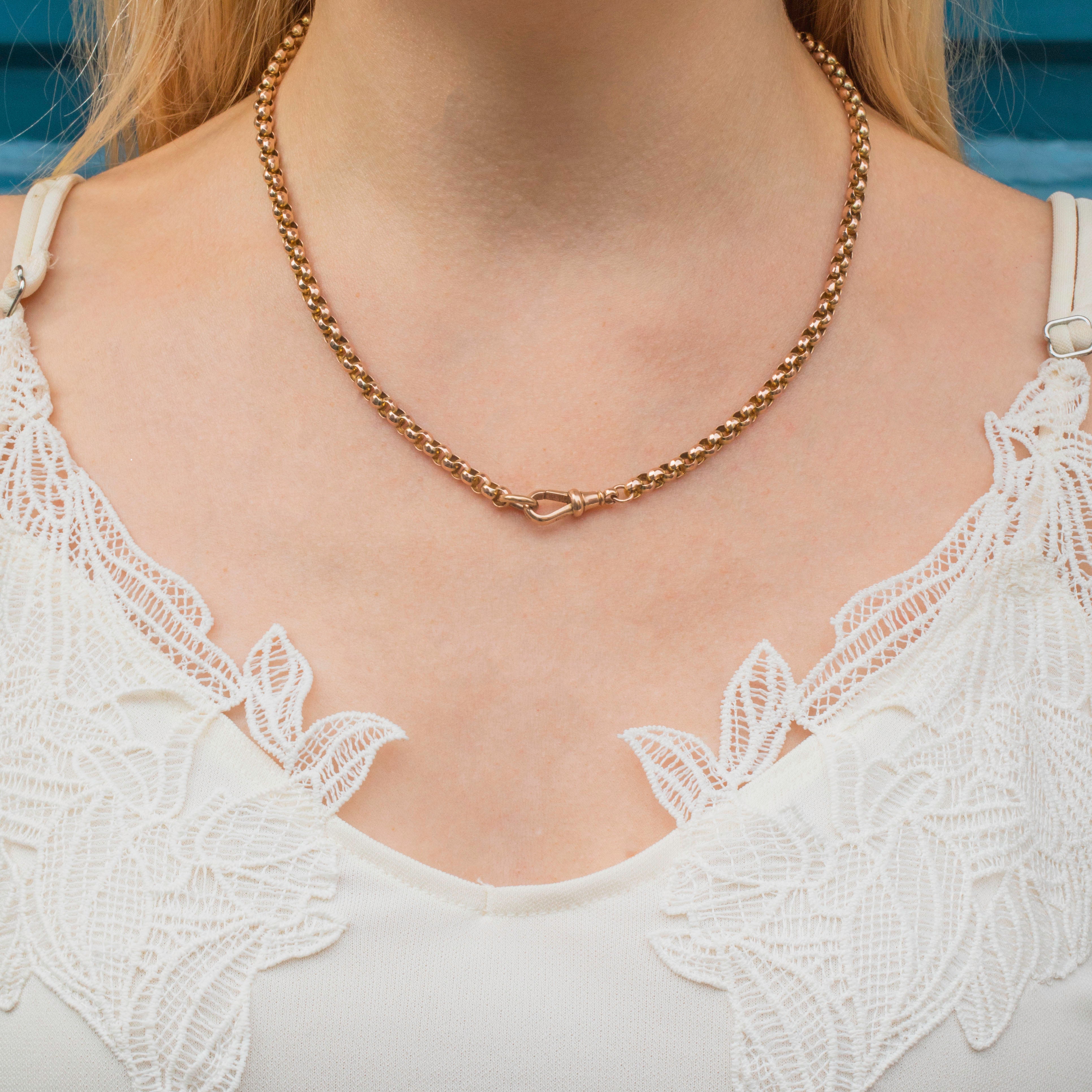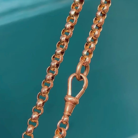 Crafted during the Victorian era, this necklace boasts a smooth, luxurious texture as she slips effortlessly through your fingers. Secured by a classic Gold dog-clip clasp, this piece is perfect for showcasing at the front, especially with a few cherished charms hanging from her.