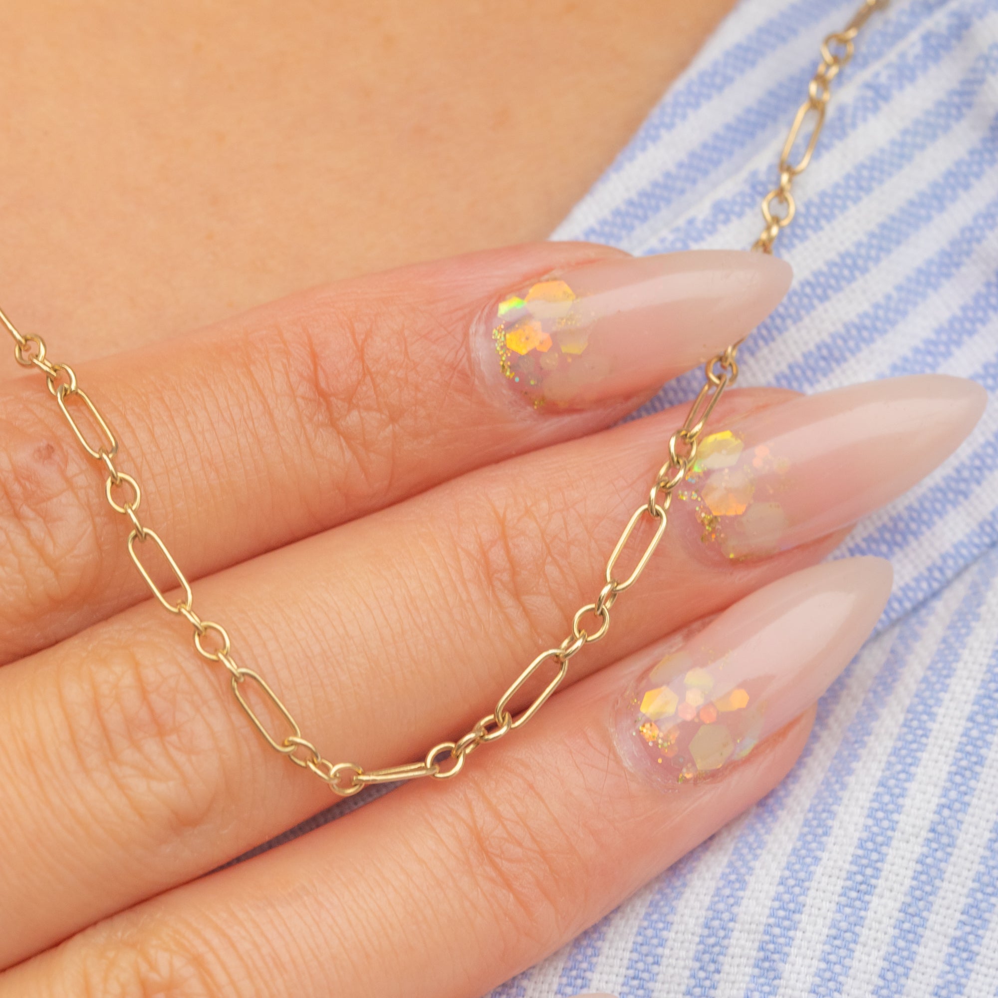 This chain has all the charm of 20th-century design; perfect to wear alone for a subtle accent of Gold, or layered with other necklaces for a modern stacked look.