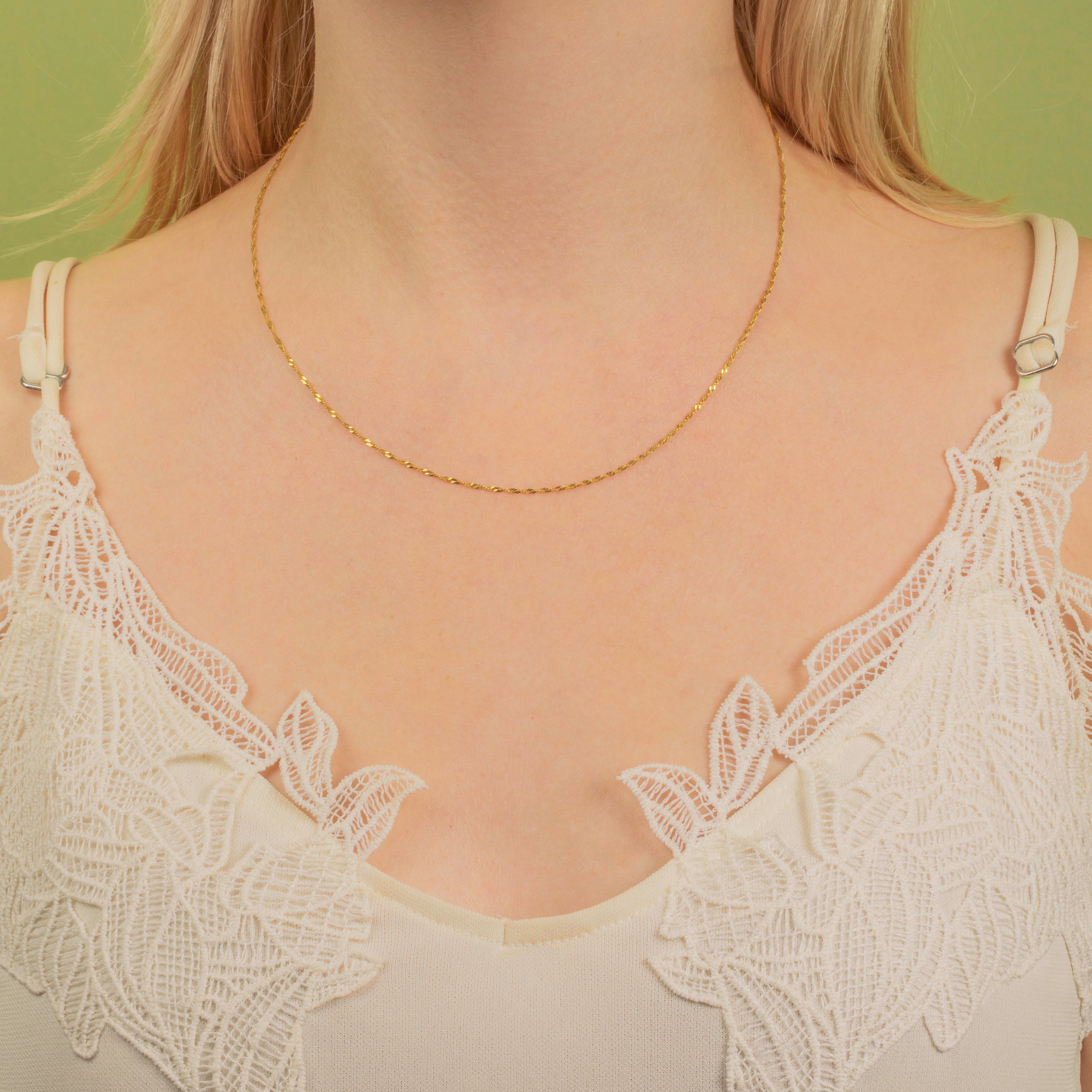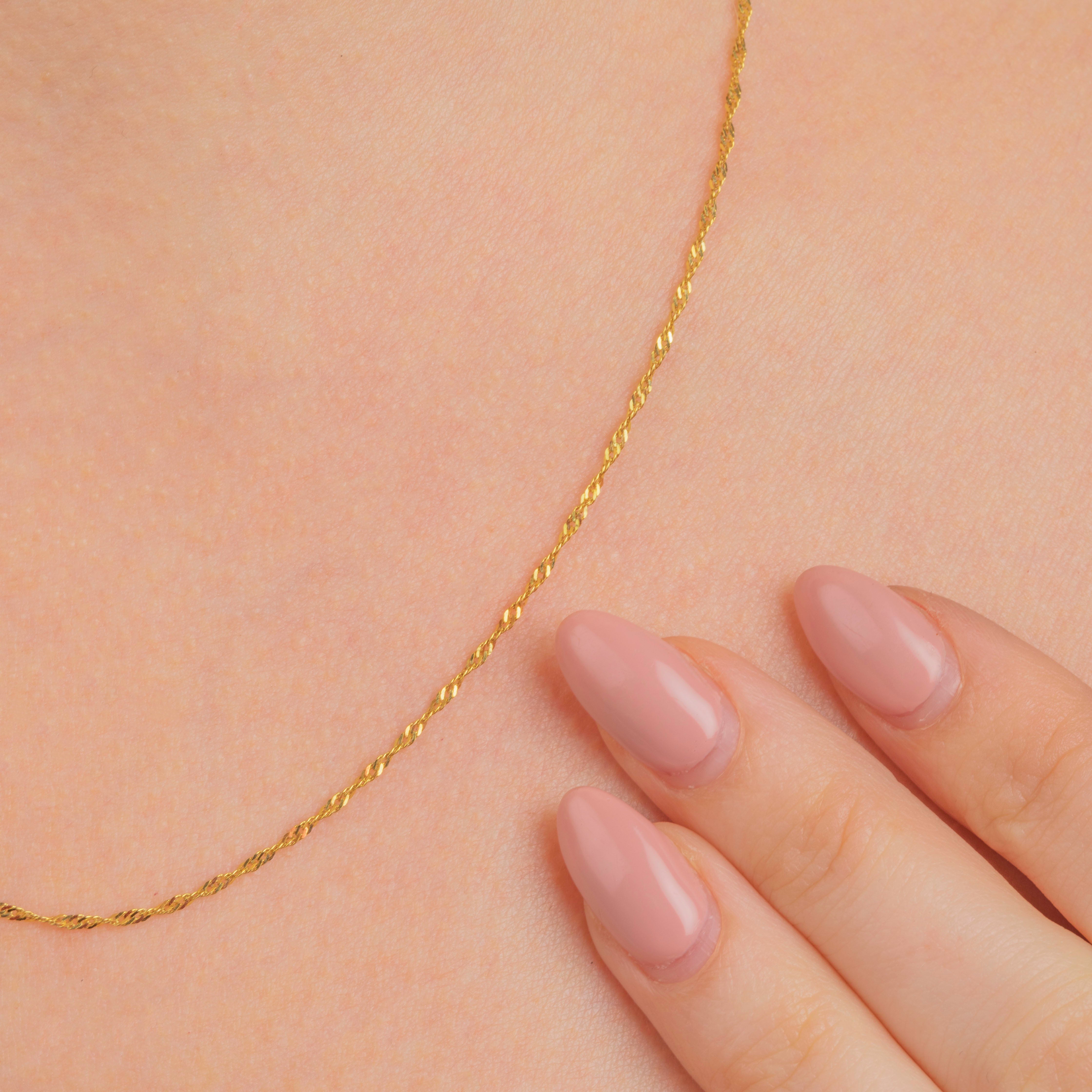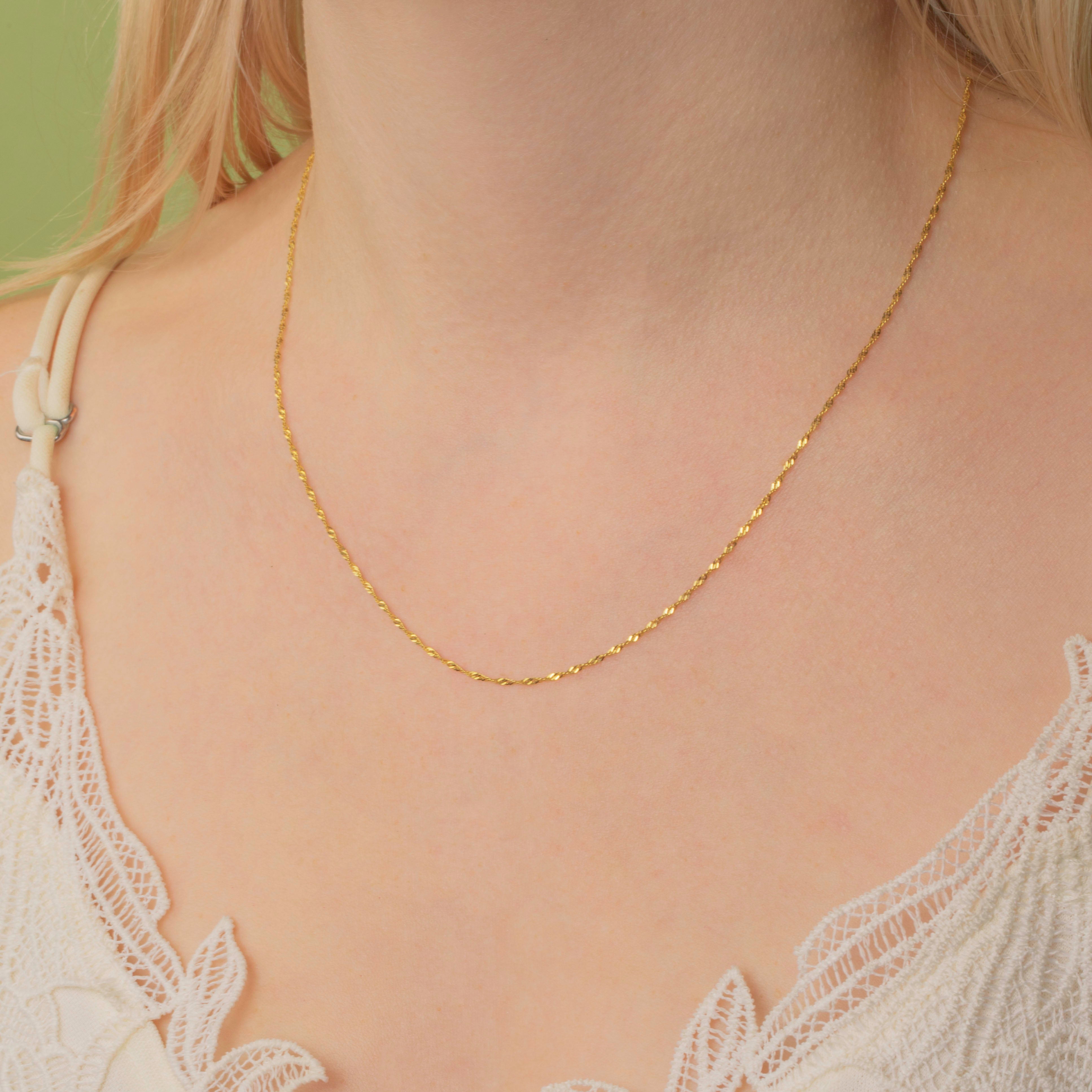 This gorgeous 18" 9ct Gold Prince of Wales pendant chain is the perfect delicate addition to your necklace stack, we simple love the way her twisted links glitter as the light hits them, like shimmering droplets of sunlight!
