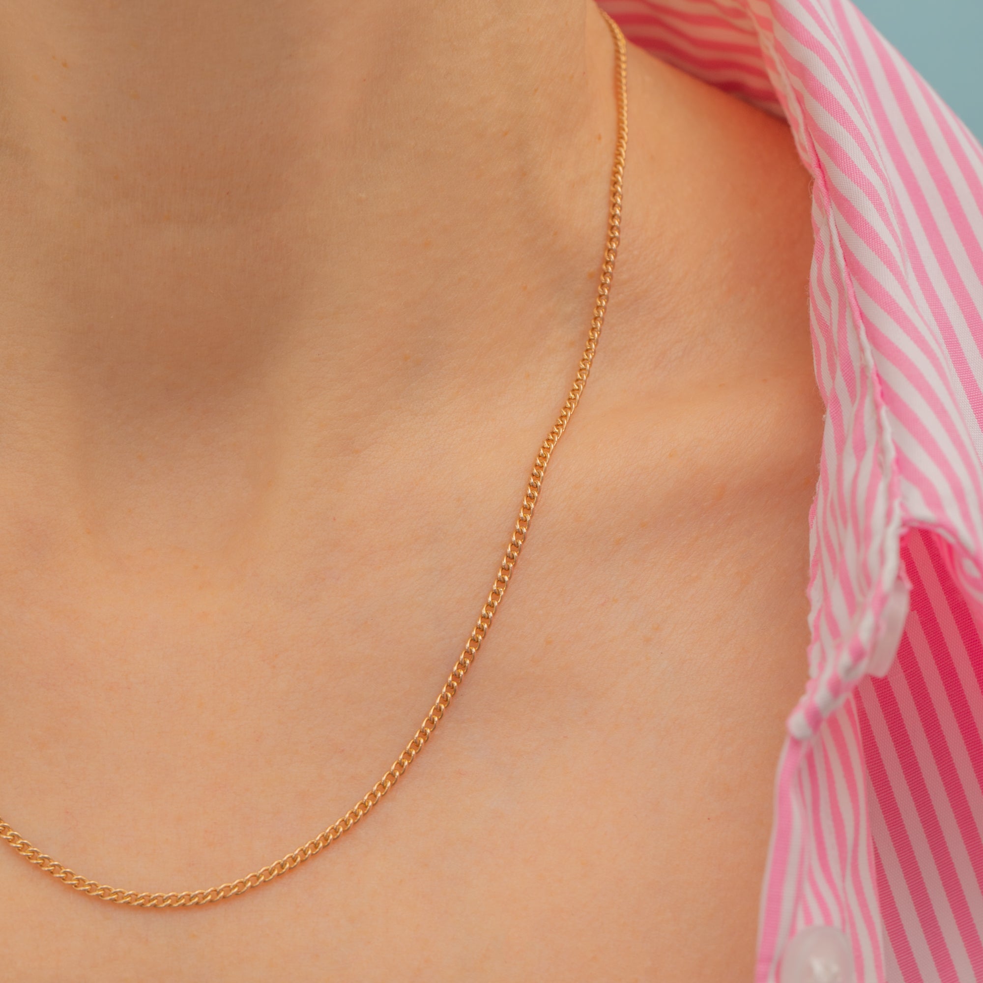 This 18" antique 15ct Gold skinny curb chain is a must-have within your jewellery box! Her skinny curb links, crafted from buttery 15ct Gold, comes complete with a large bolt-ring allow your favourite pendant to affixed with ease, and at 18" long, it will rest centrally across your décolletage.