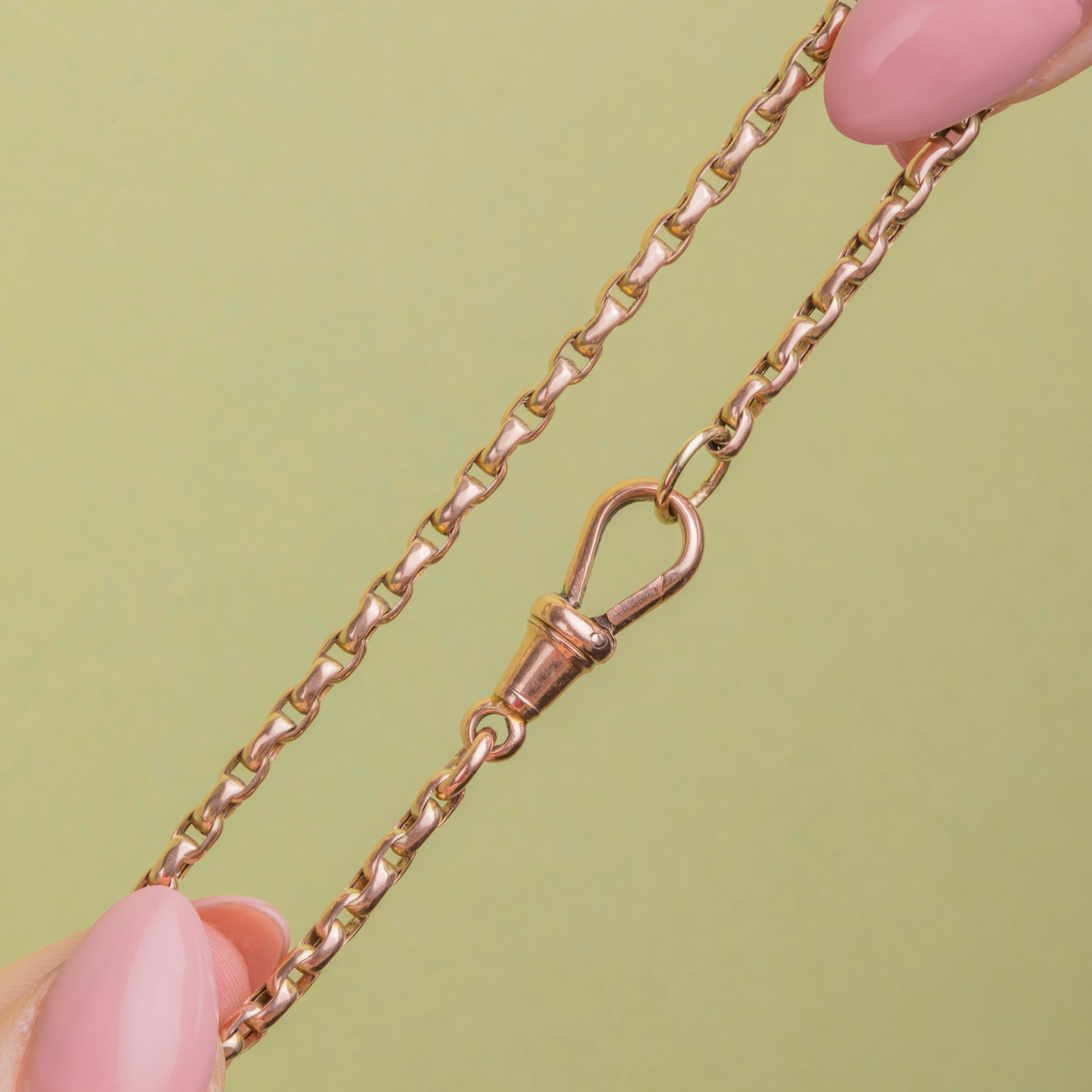 EXCELLENT. This 18" antique 9ct Gold belcher chain is in stellar condition throughout. The links feel strong and sturdy, and the dog clip has excellent spring back allowing you to wear this versatile Victorian belcher with confidence!