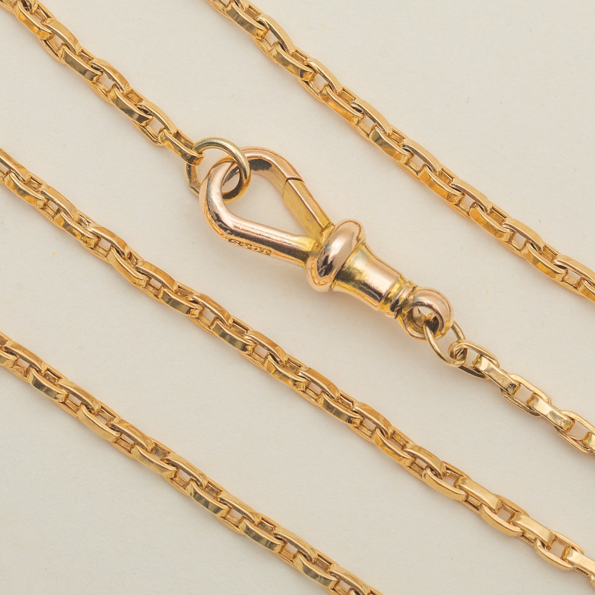 EXCELLENT. This antique 9ct Gold oval belcher link chain is in excellent condition. The Gold is buttery and the links are all securely connected. The dog clip is in perfect working condition, allowing you to enjoy this Victorian belcher chain with absolute confidence!
