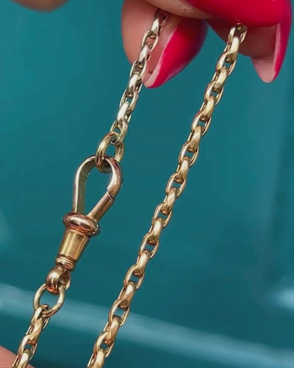 18" Antique 9ct Gold Skinny Belcher Chain, with Dog-Clip