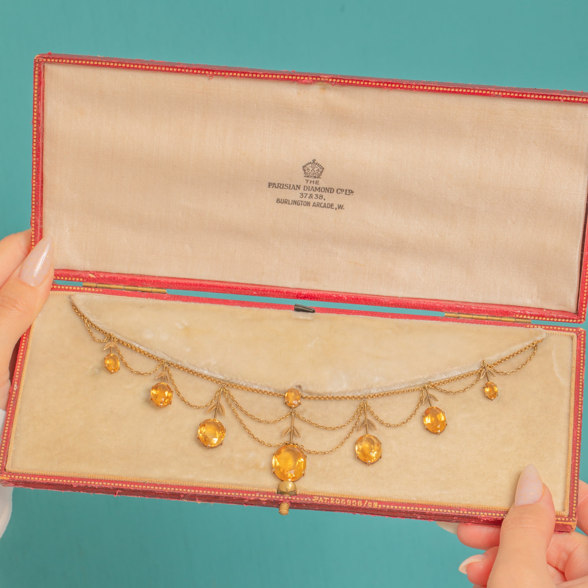 18ct Gold French Citrine Flower Festoon Necklace, with Antique Box