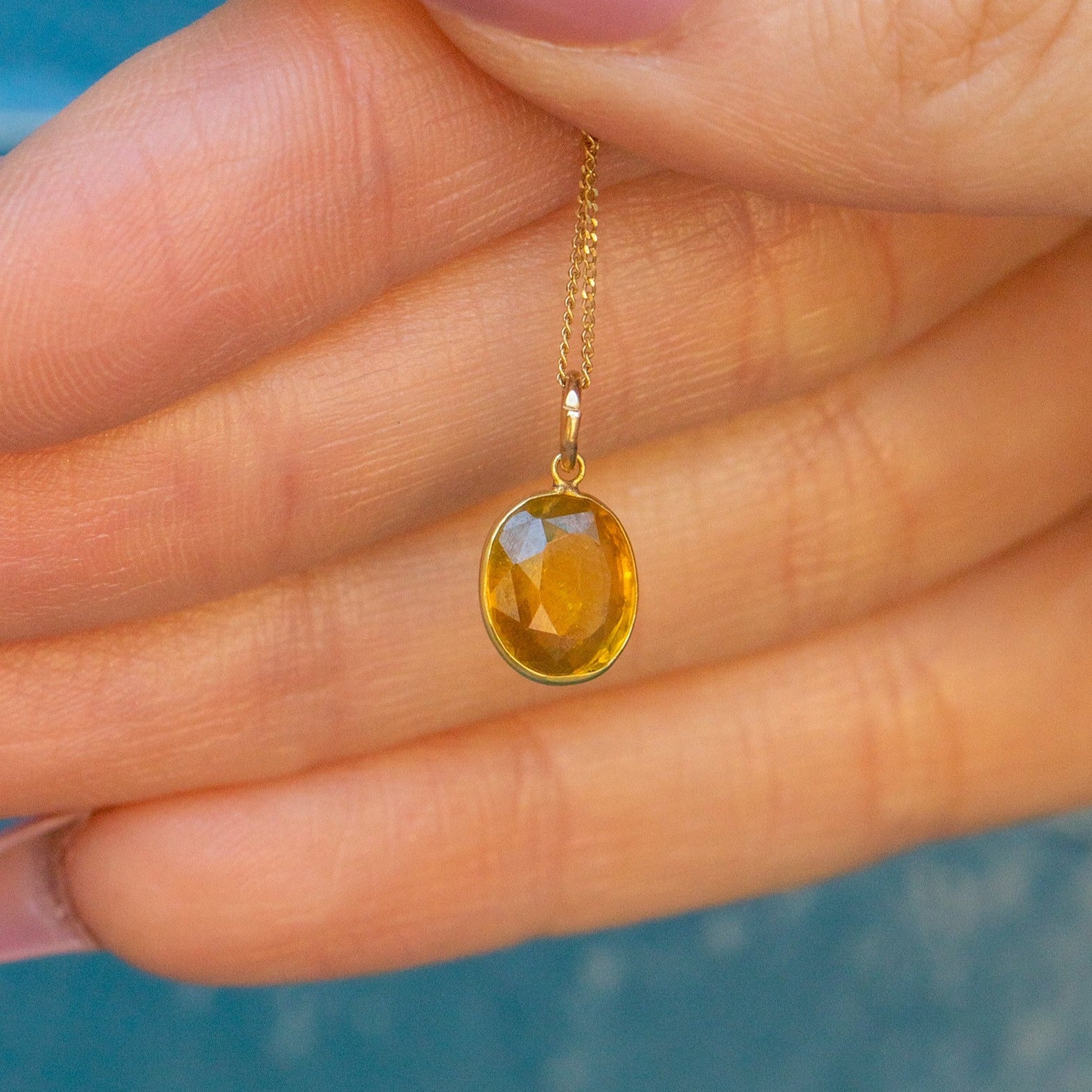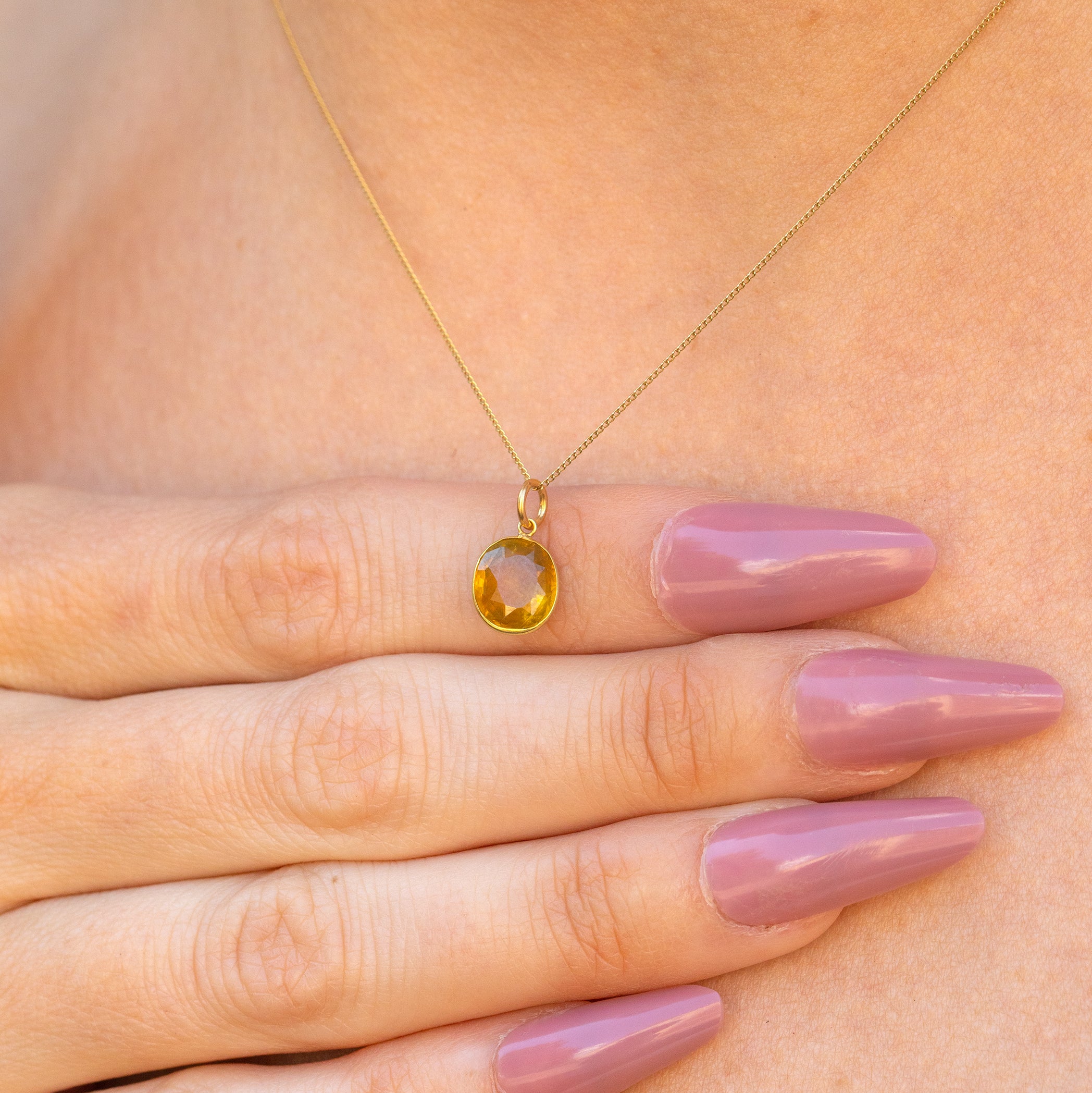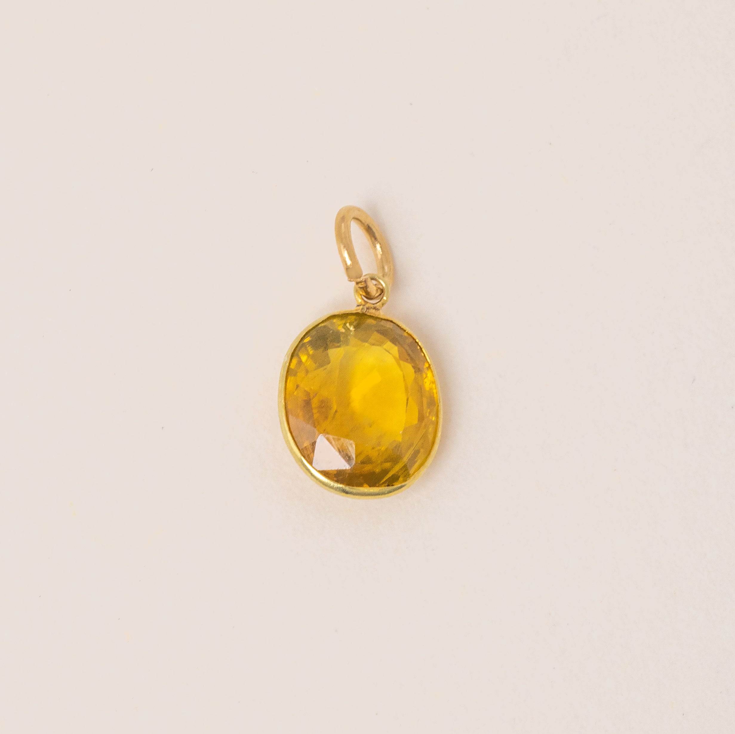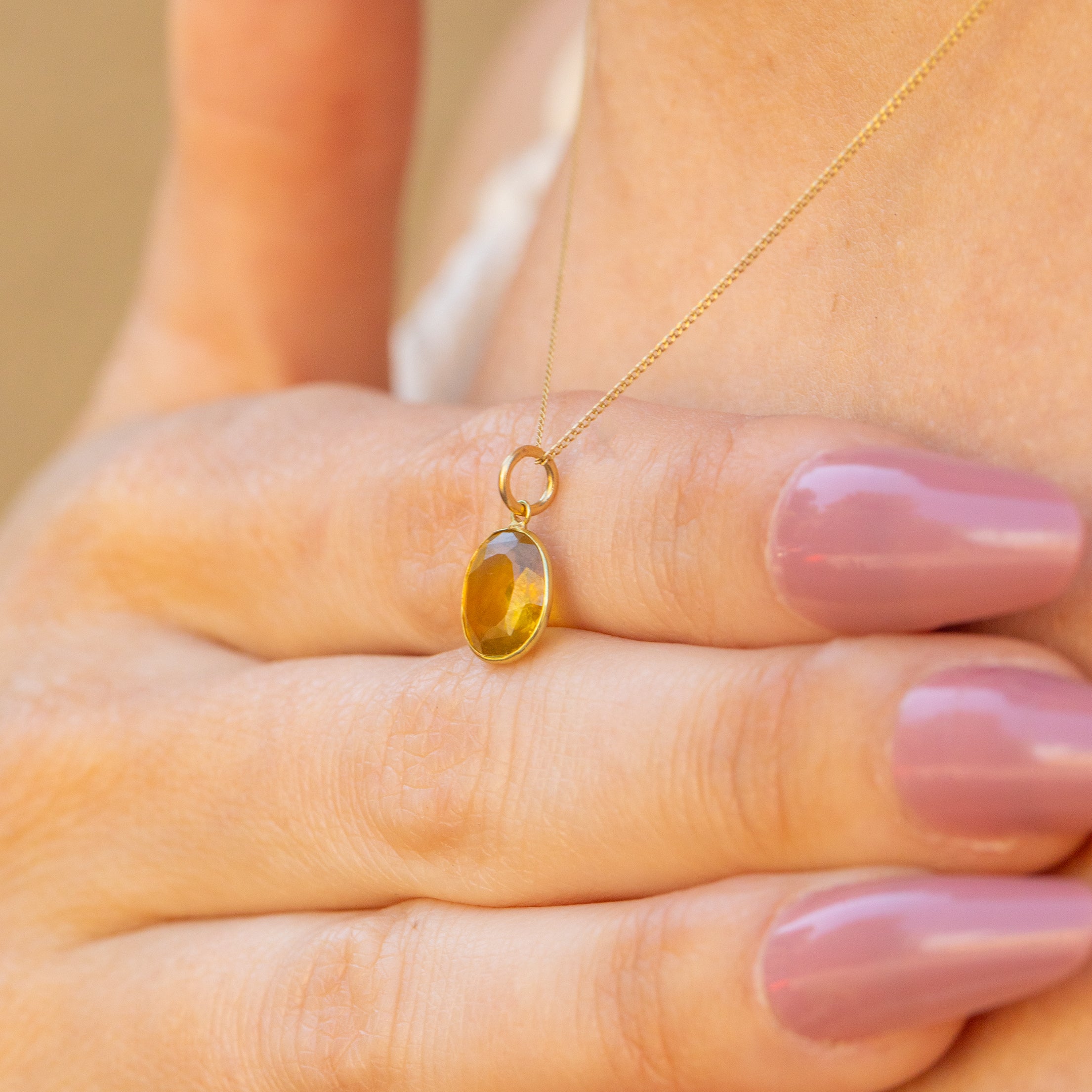 Bring earthy tones into your repertoire with this 18ct Gold Garnet bezel-set charm! Flickers of butterscotch combine with olive hues to flash across her core, pairing perfectly with her 18ct Gold bezel setting.