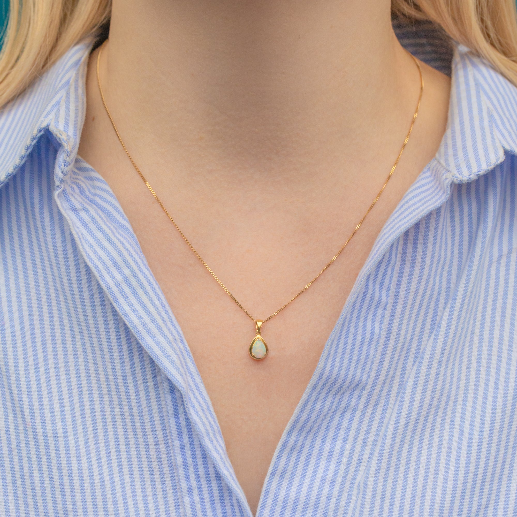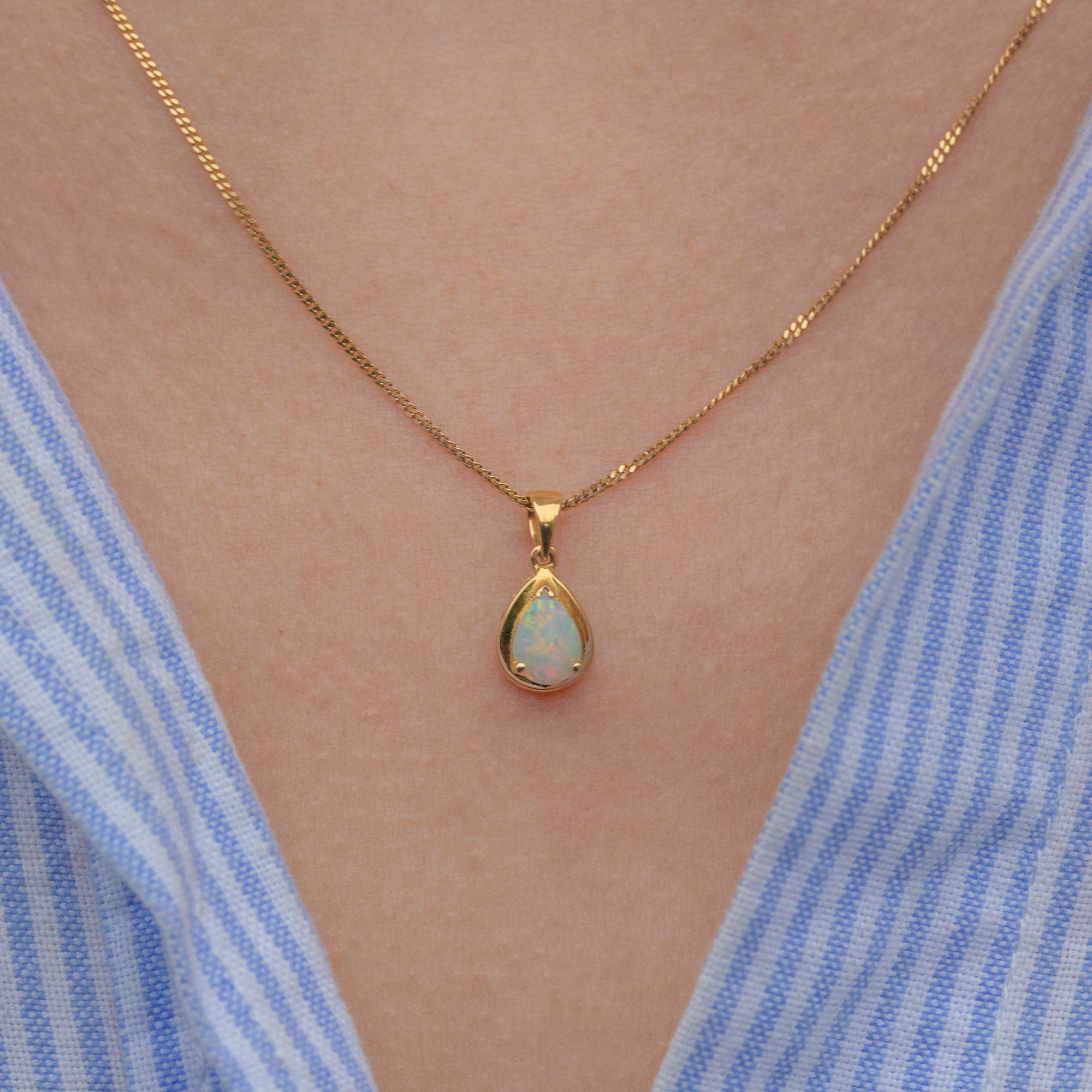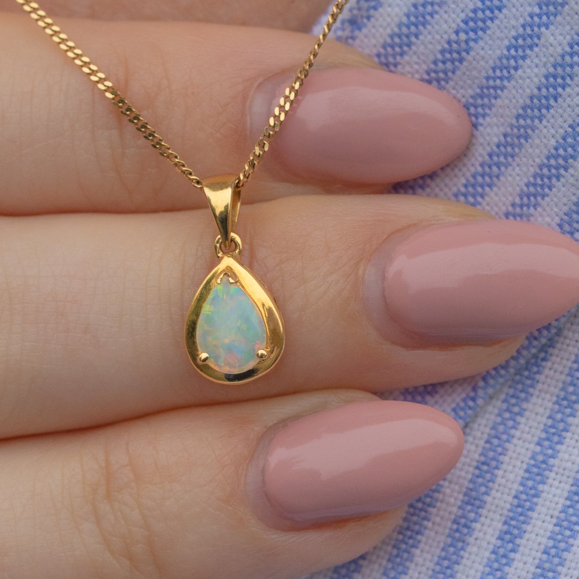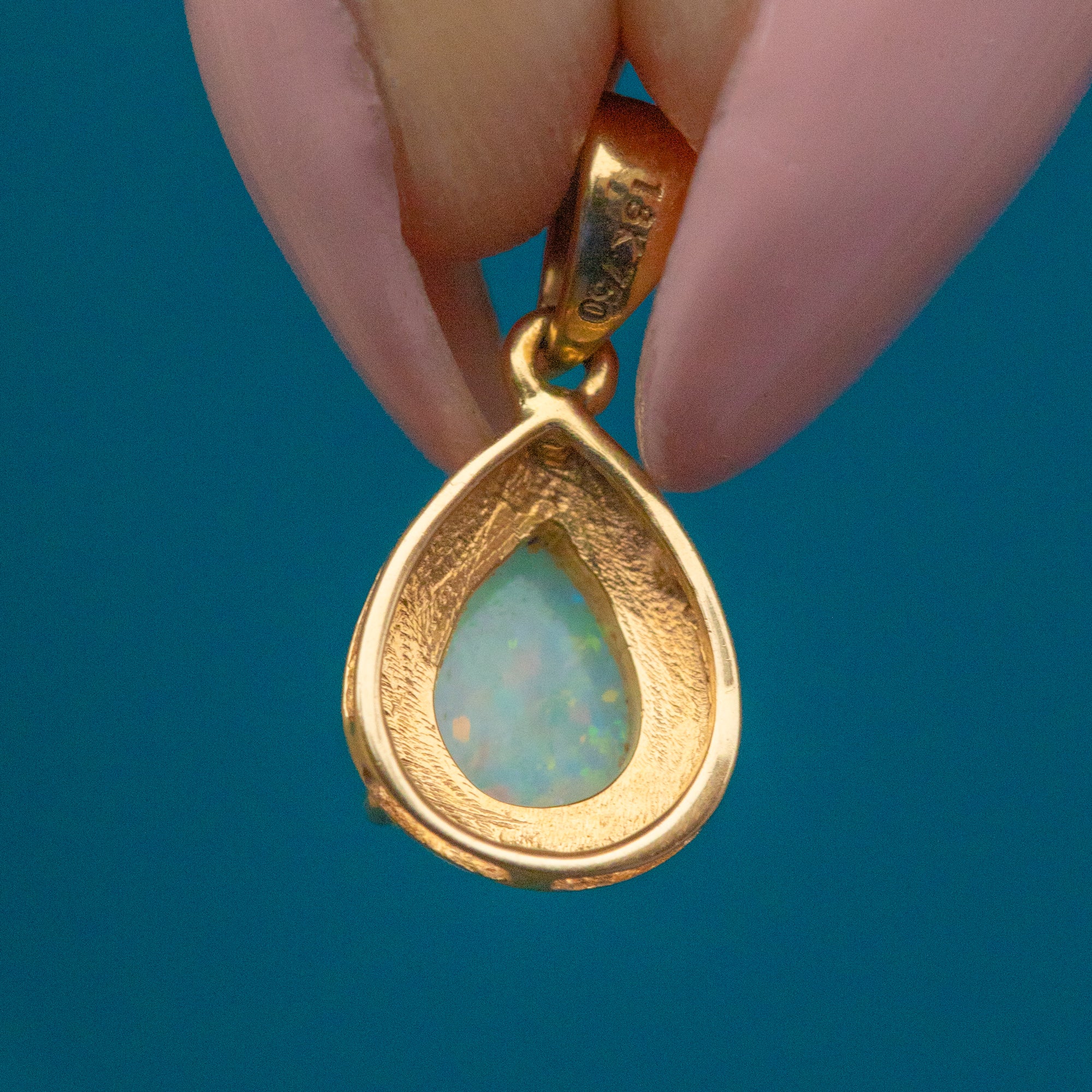 EXCELLENT. This 18ct Gold Opal charm is in excellent condition. The Opal cabochon has a lively display of colour, is smooth with no signs of wear, and securely held within its claw setting. The Gold has a bright saturation throughout and the stamp on the back of the bale has remained crisp. All this Vintage Opal charm needs is a skinny Gold chain to adorn!