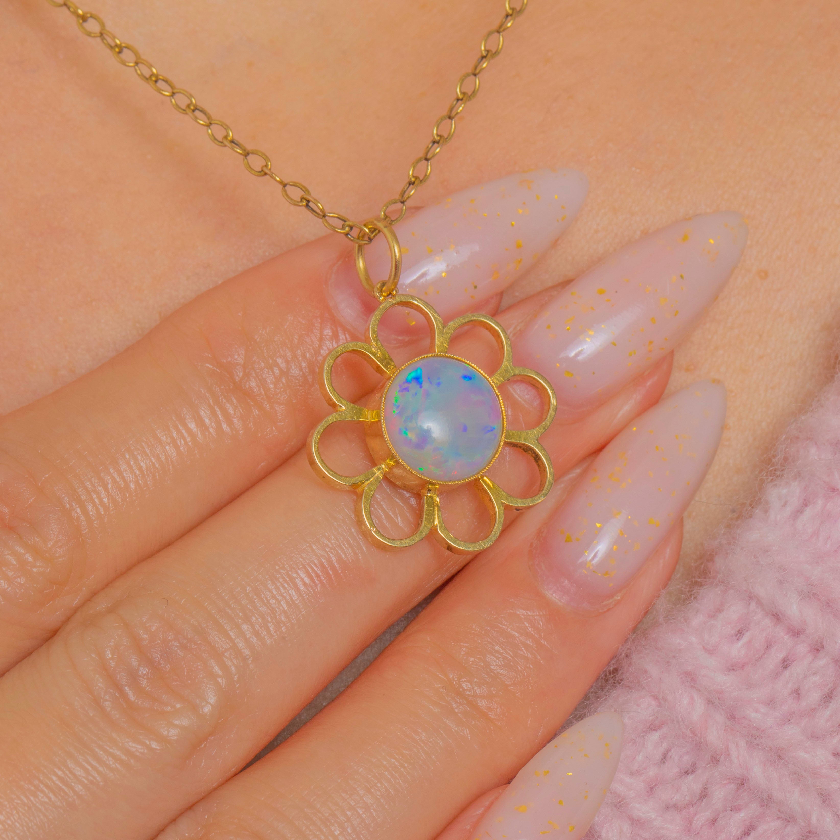 18ct Gold Opal Flower Pendant - 1.84ct Natural Solid Opal