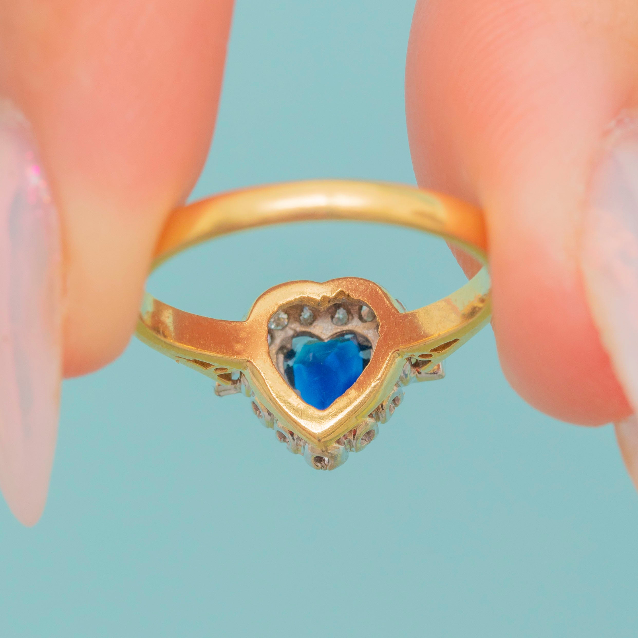 Vintage 18ct Gold Sapphire Diamond Heart Cluster Ring