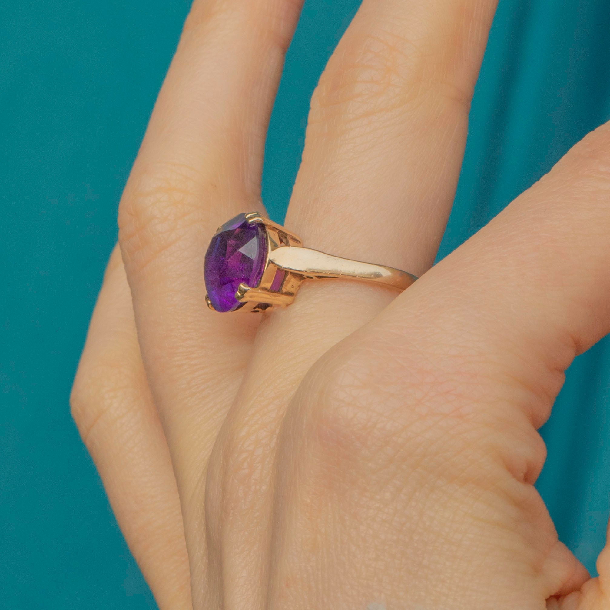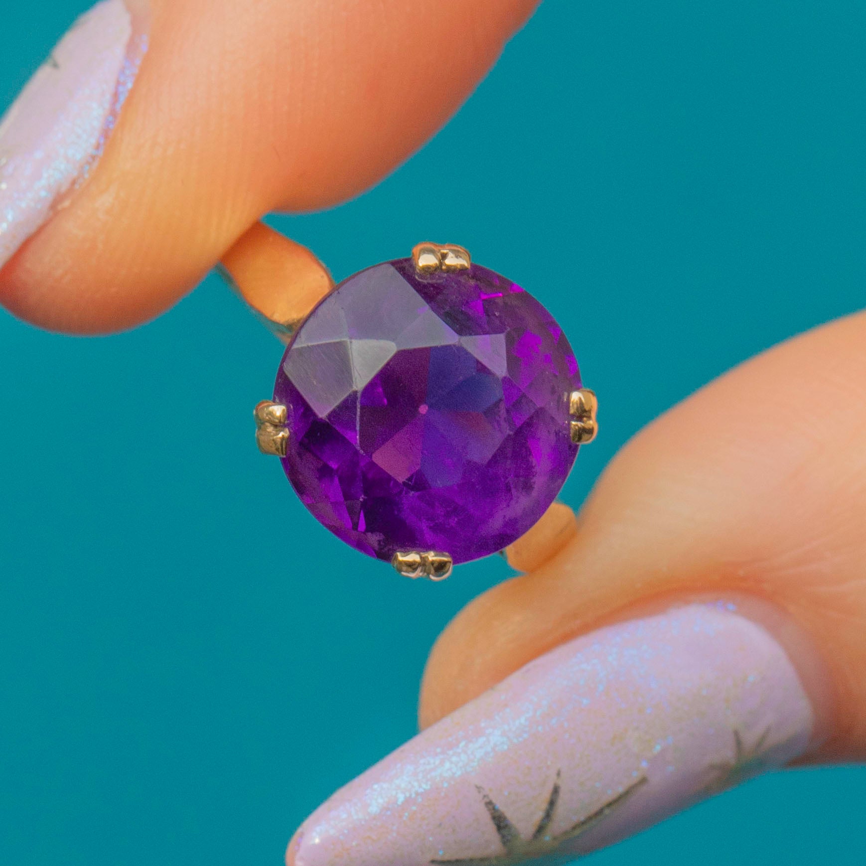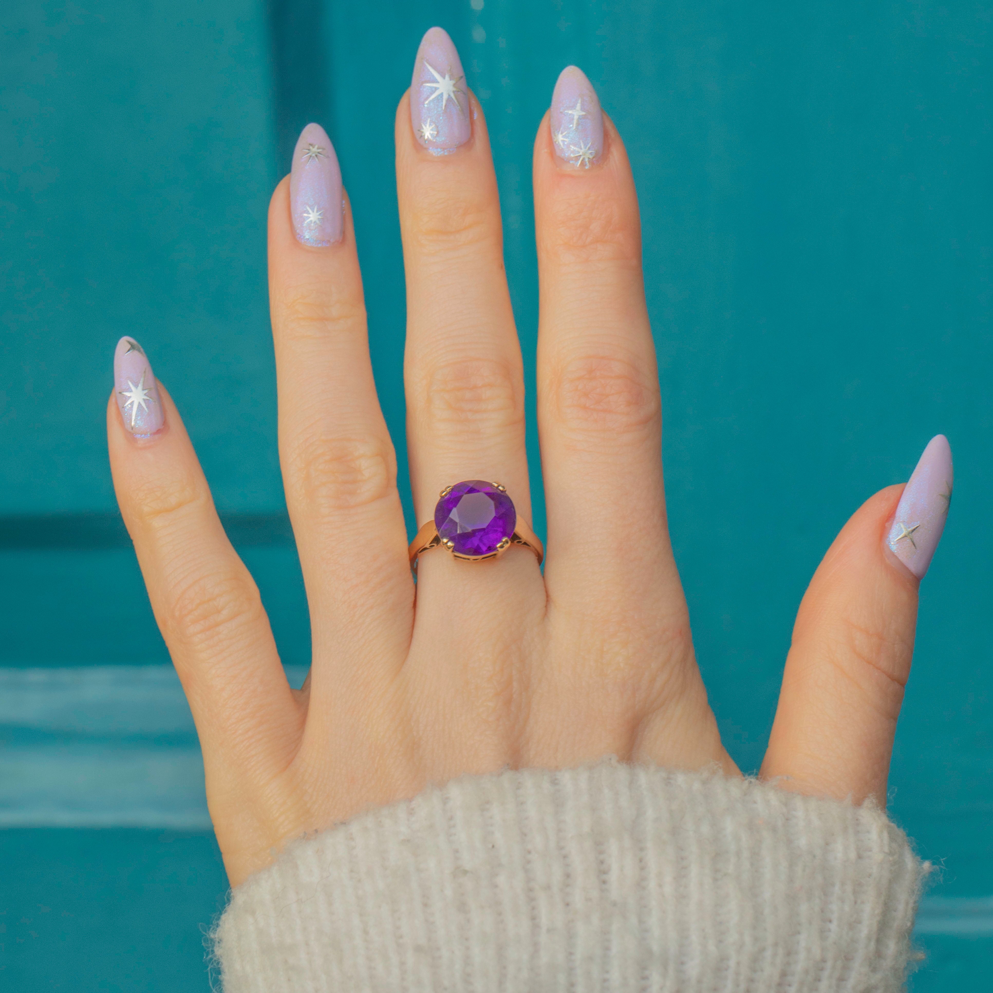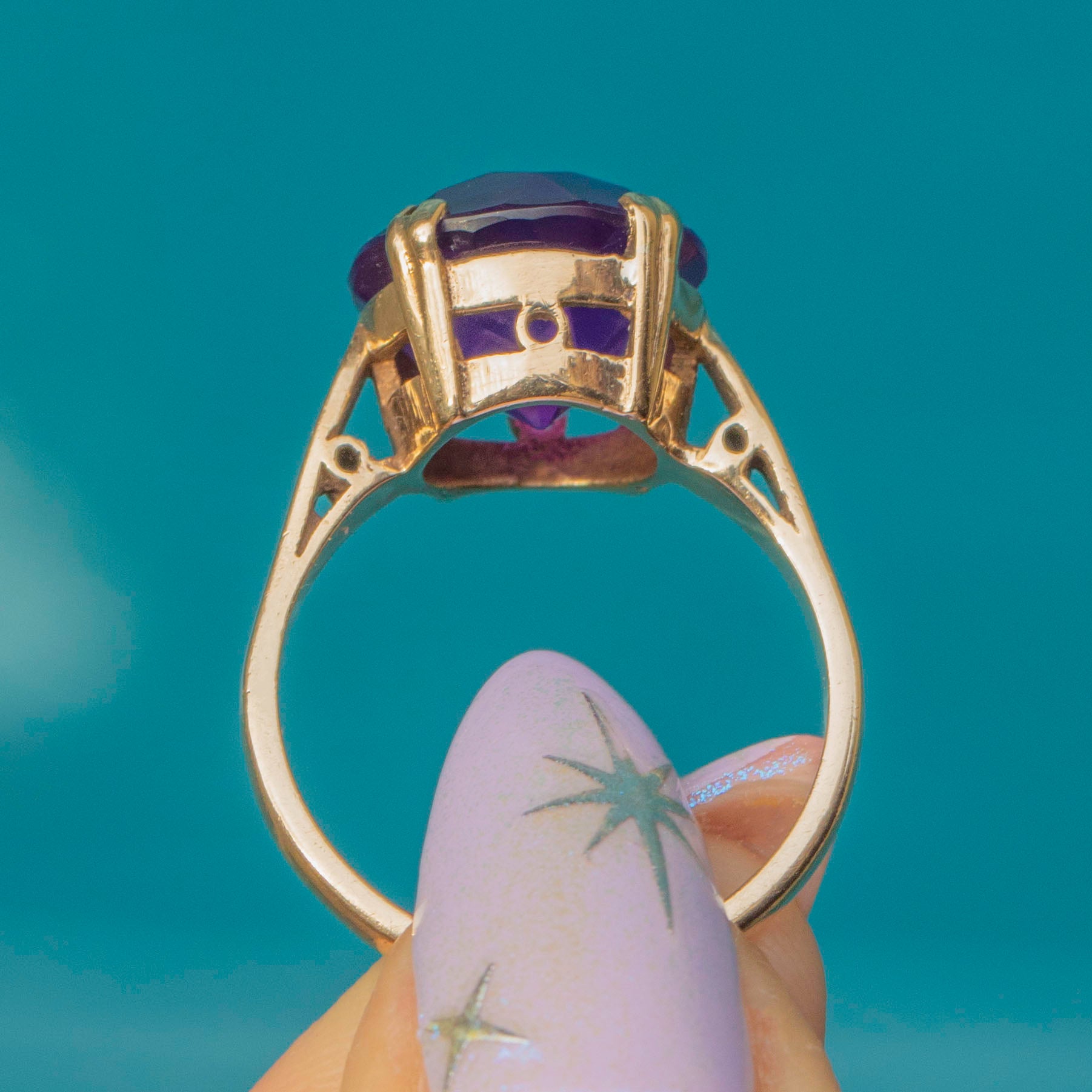 The Amethyst, not only saturated in colour, sits raised in a claw setting allowing each of her facets to sparkle impeccably. Oozing charm, this mid-century vintage Amethyst ring will look incredible stacked with your other favourite jewels!