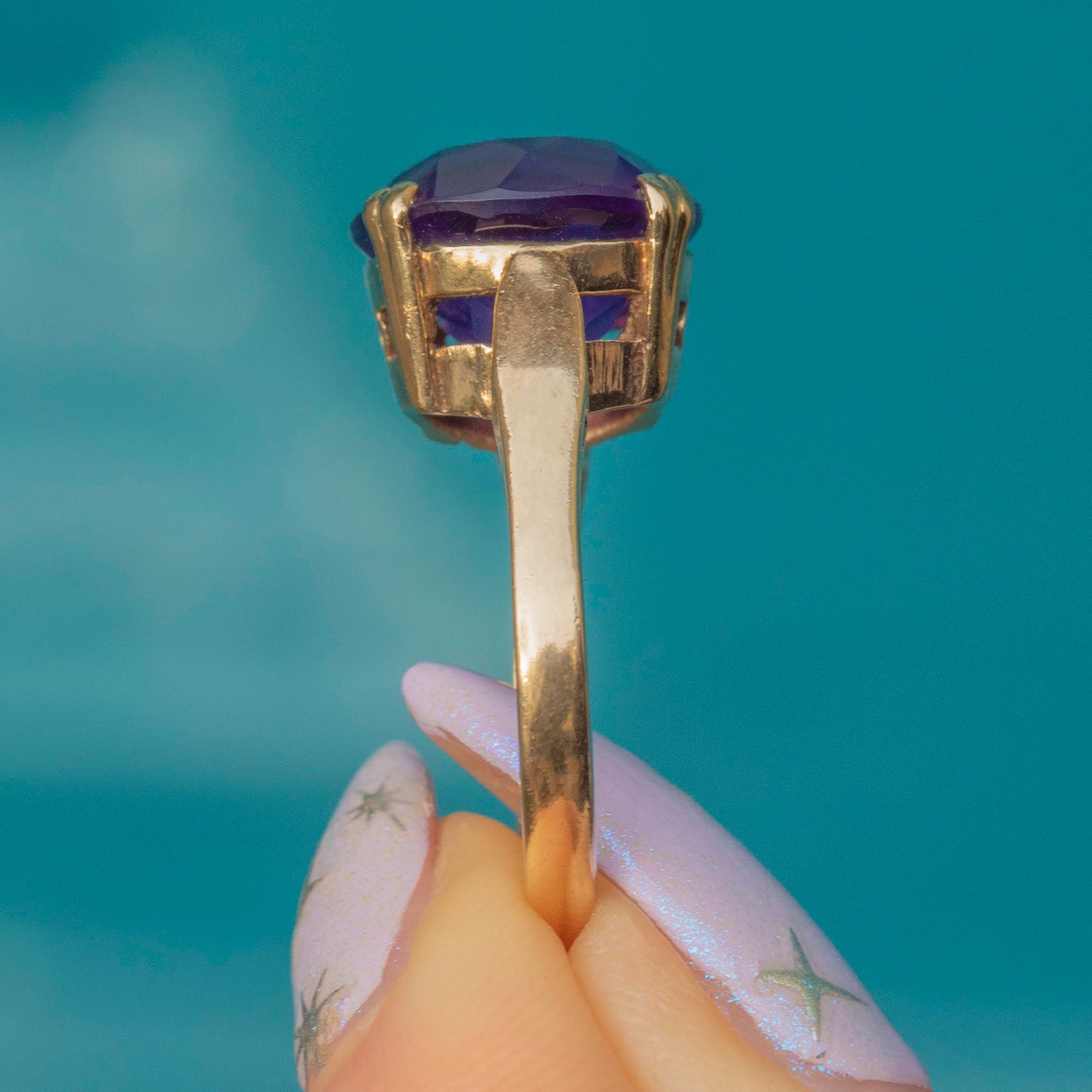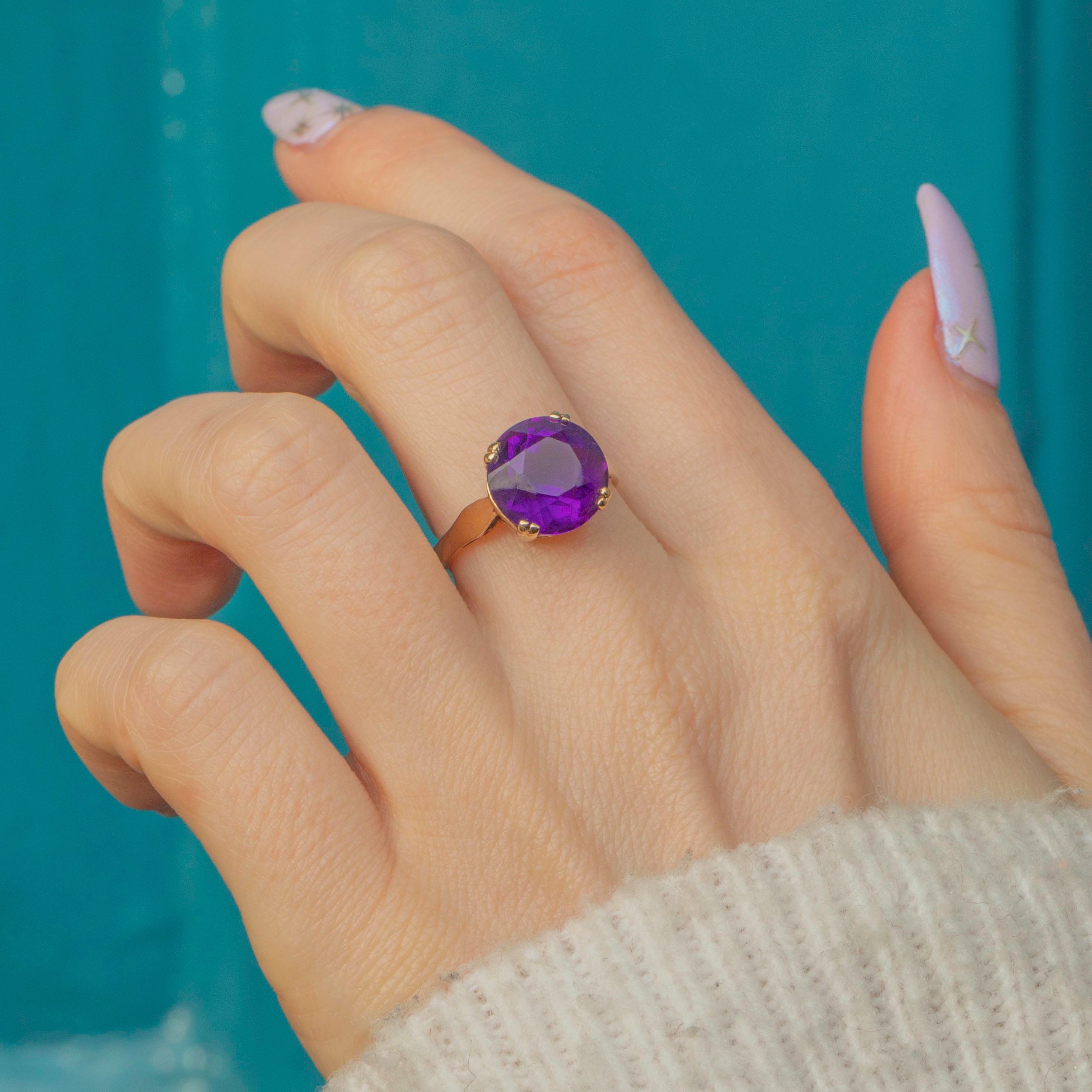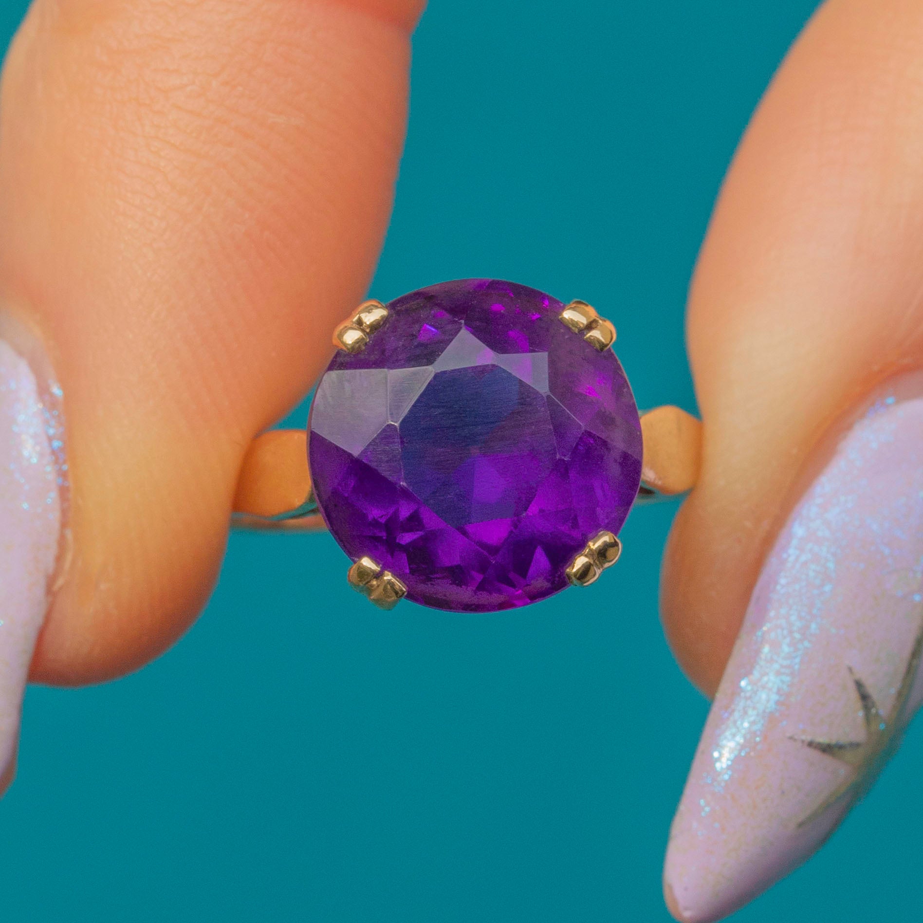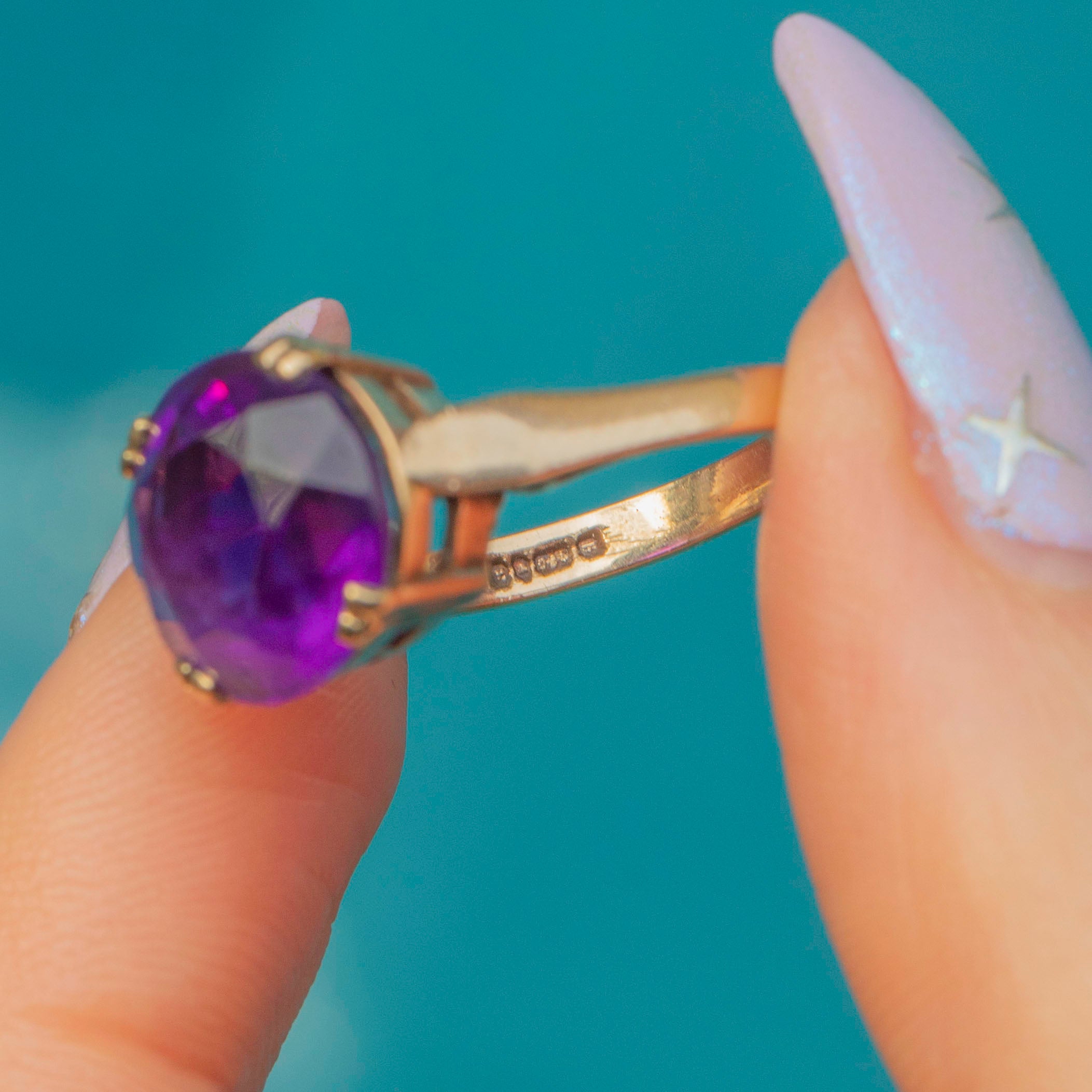 The Amethyst, not only saturated in colour, sits raised in a claw setting allowing each of her facets to sparkle impeccably. Oozing charm, this mid-century vintage Amethyst ring will look incredible stacked with your other favourite jewels!