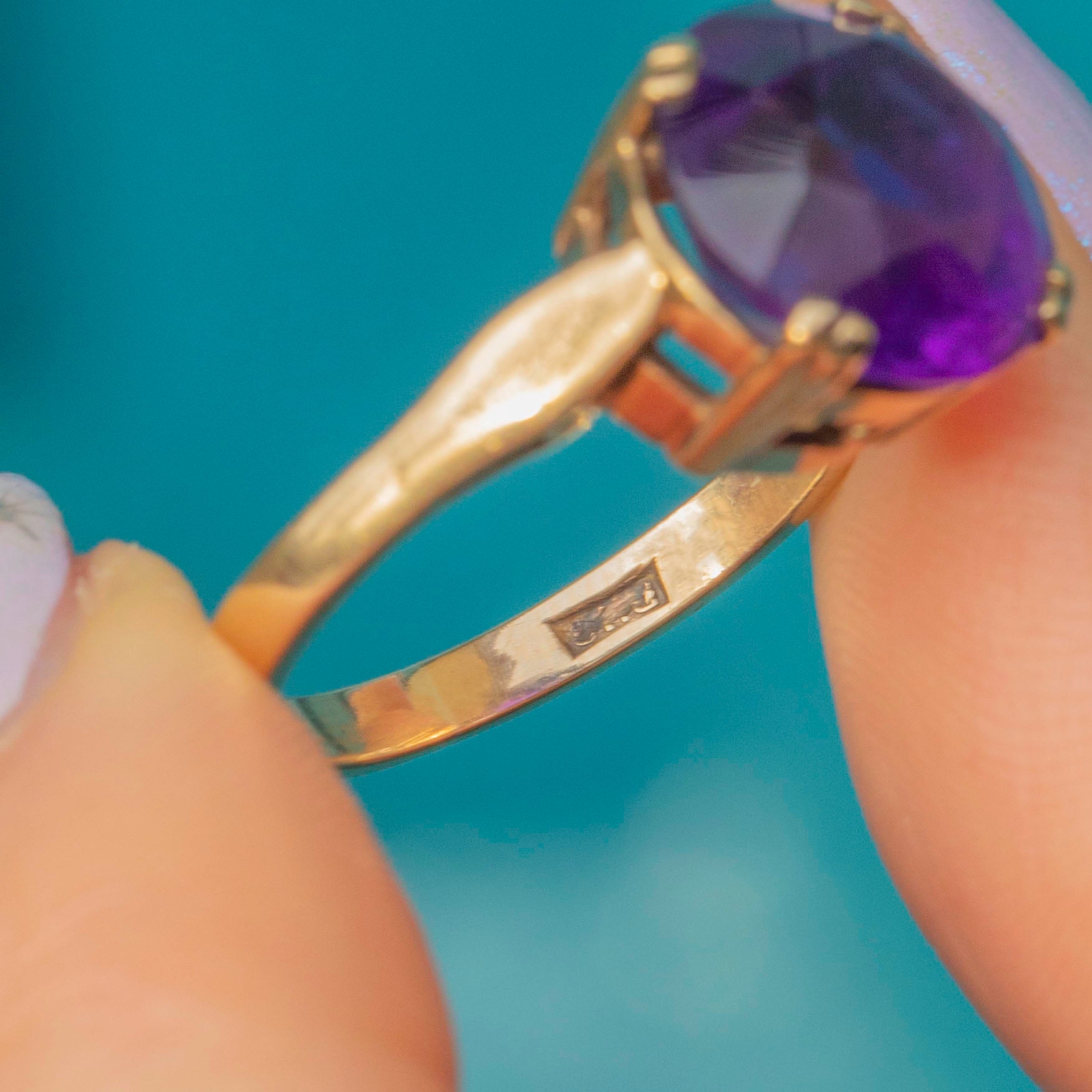 EXCELLENT This 9ct Gold Amethyst solitaire ring is in excellent condition. The Amethyst is gorgeous, beautifully cut and set in secure claws. What a delight!
