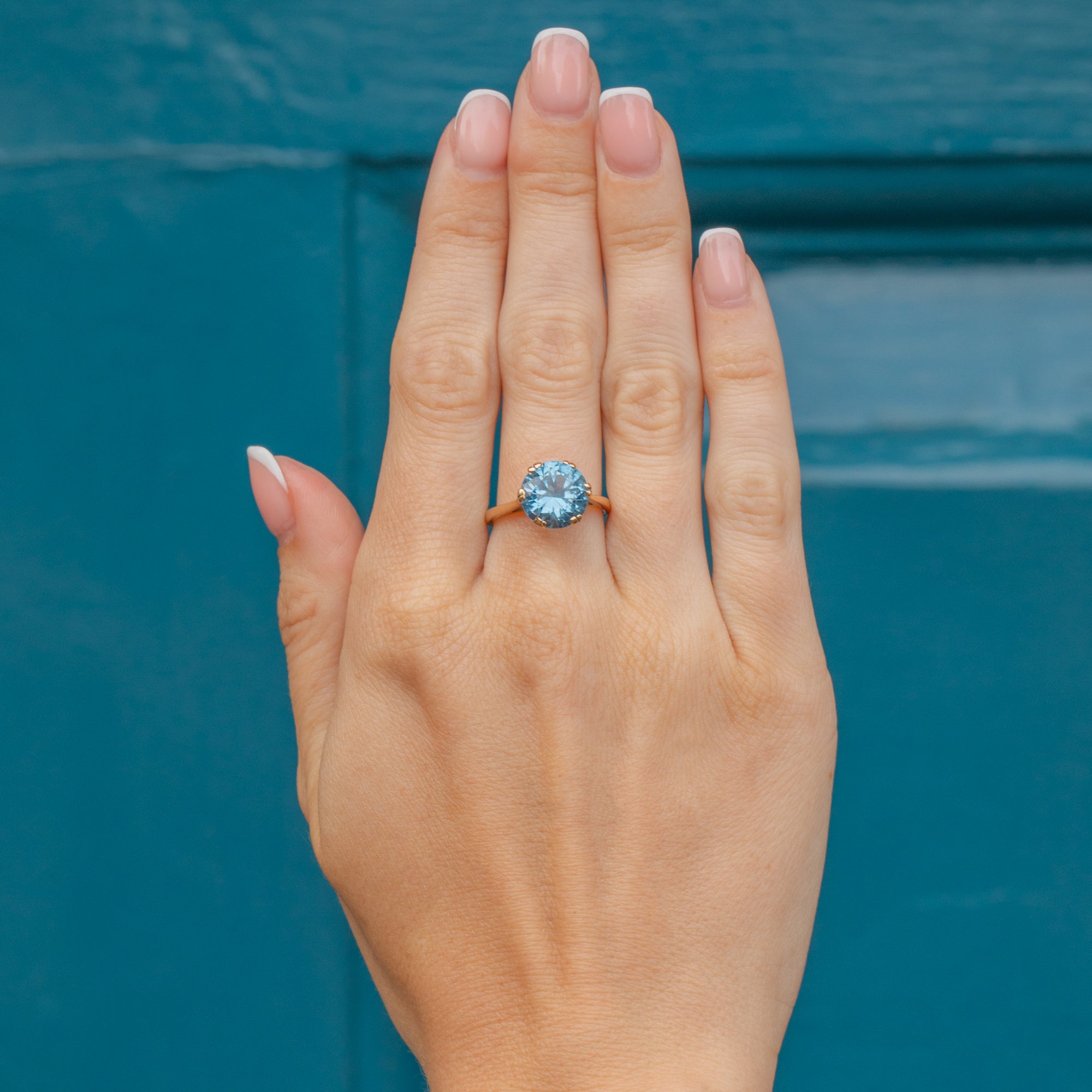 9ct Gold Blue Topaz Solitaire Ring, 5.29ct