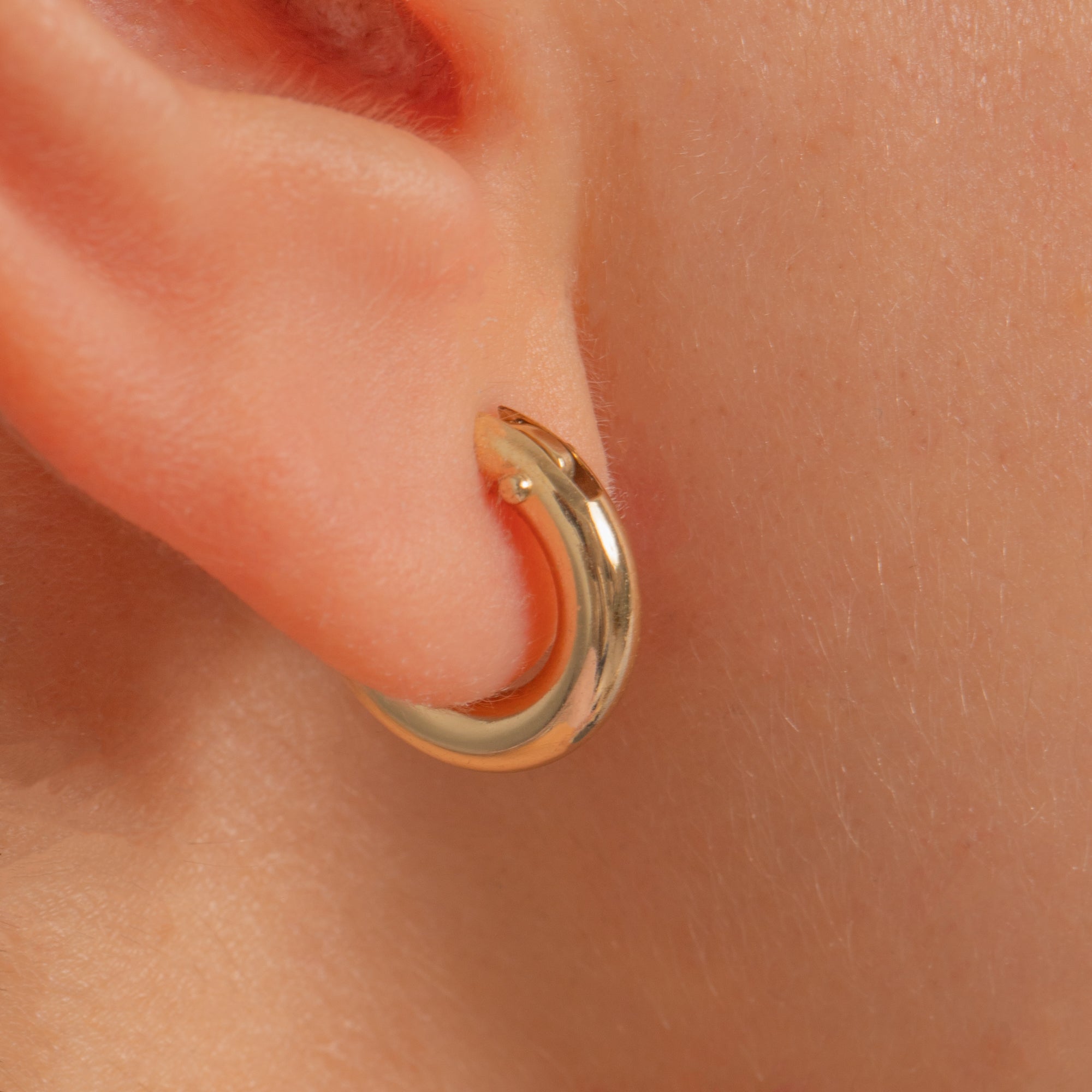 Chic, compact, and endlessly wearable, these chubby “donut” huggie hoops are crafted in gleaming 9ct Gold with a smooth, rounded profile that catches the light beautifully. Their minimalist, high-polish finish gives a luxurious yet understated look that pairs effortlessly with everything from off-duty denim to evening tailoring.