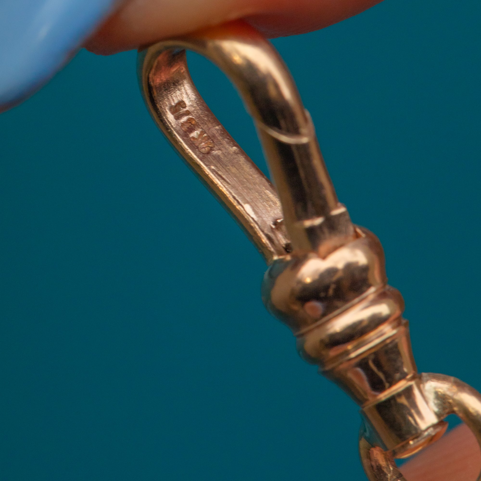This lovely swivel 9ct Gold dog-clip is truly sublime! With its beautiful buttery-yellow hue and saturated glow, this easy-wind piece is a must-have for any antique enthusiast.