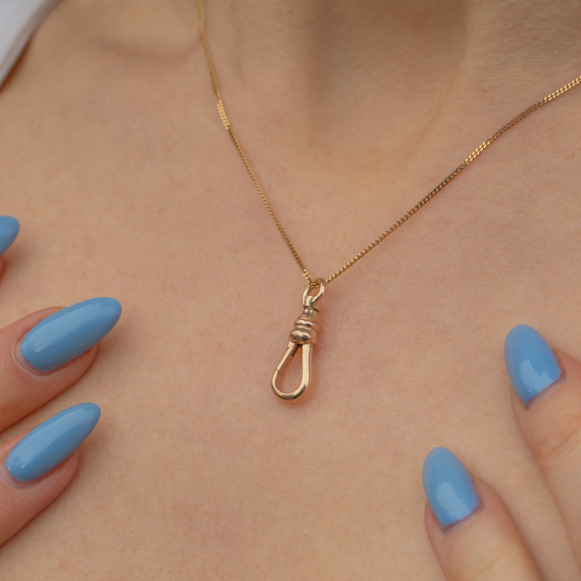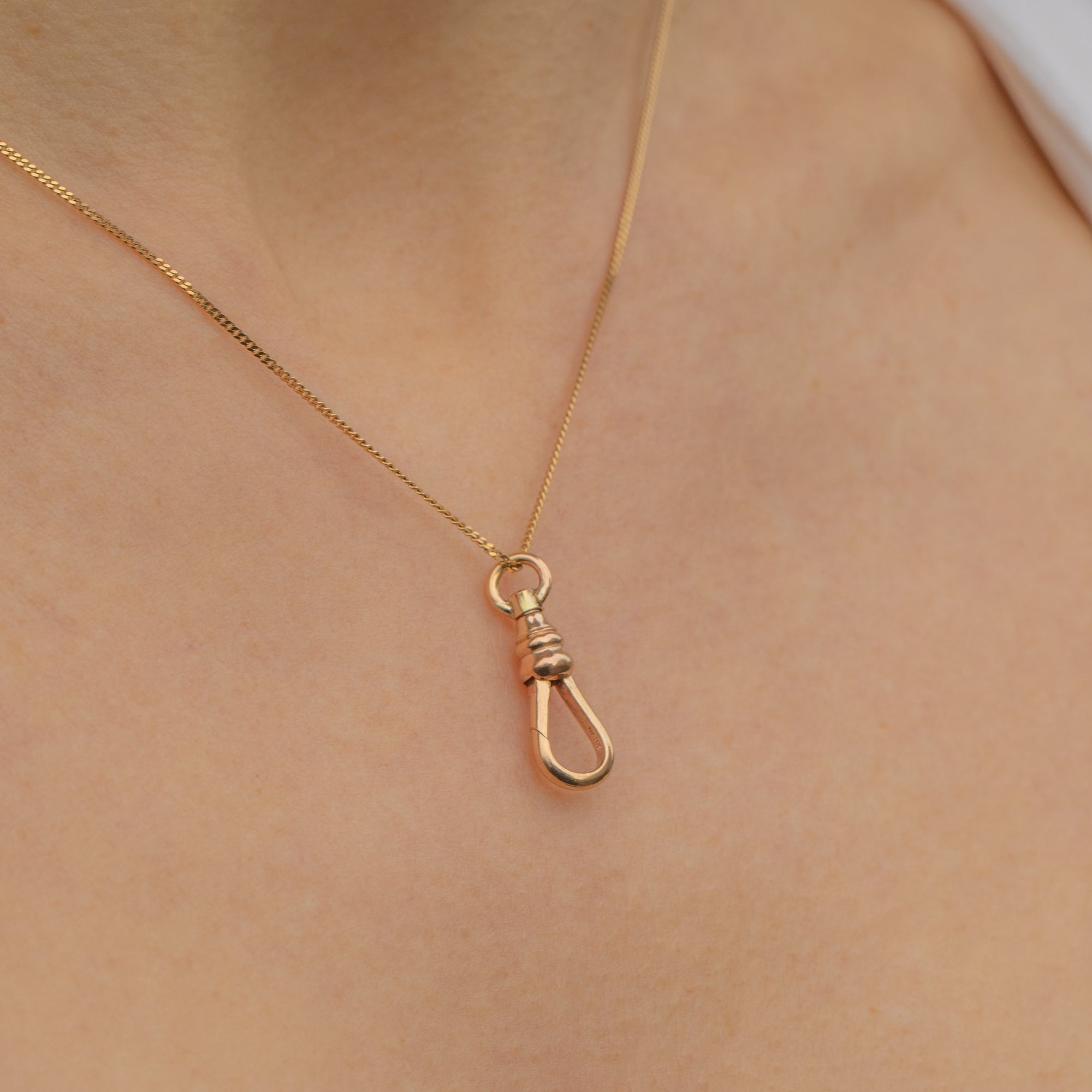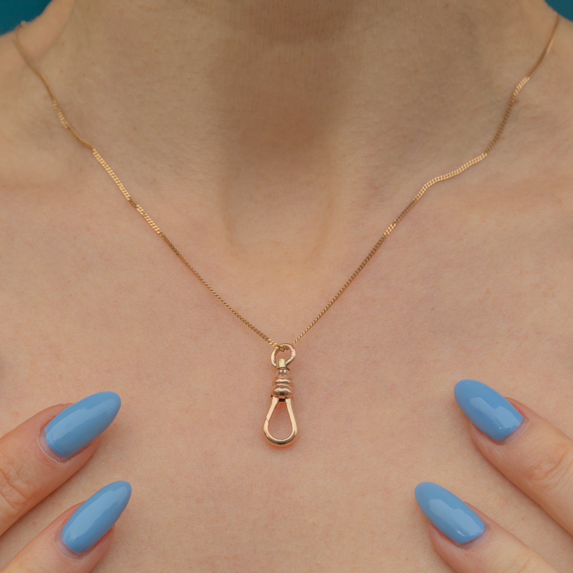 Incredibly versatile, this Victorian dog clip can be attached to a Gold chain as a distinctive pendant or adorned with a sparkling charm, pendant, or fob, adding a personal touch to any look!