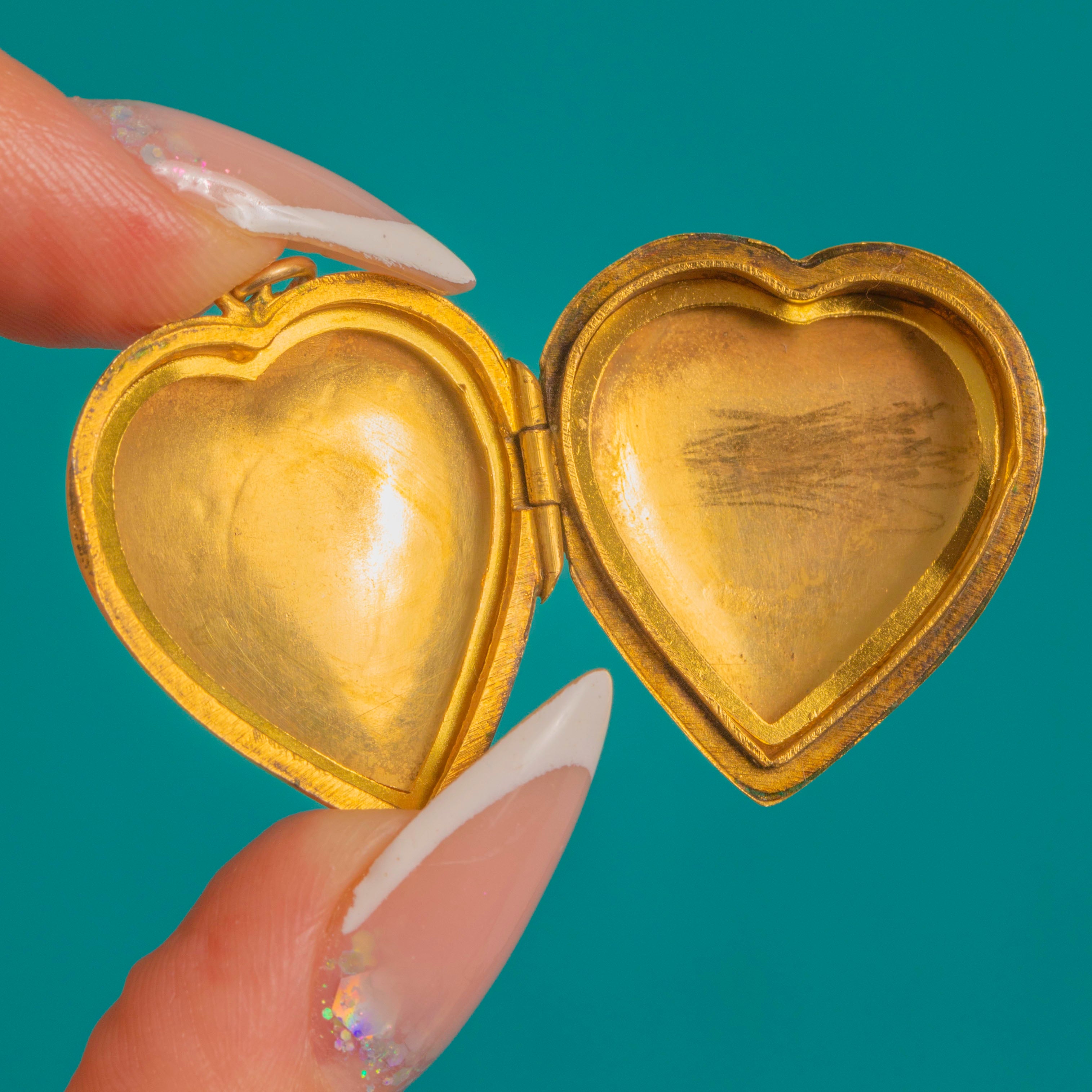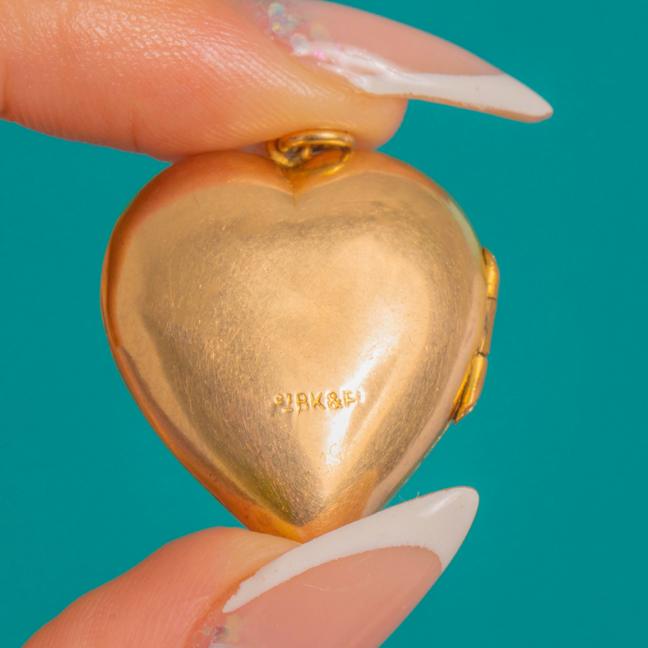 Inside are two stepped, heart-shaped recesses with two frames ready to hold your most cherished photographs, while the exterior carries the period “9ct BK & FT” stamp, a detail often seen on turn-of-the-century British lockets - romantic, refined, and effortlessly versatile.