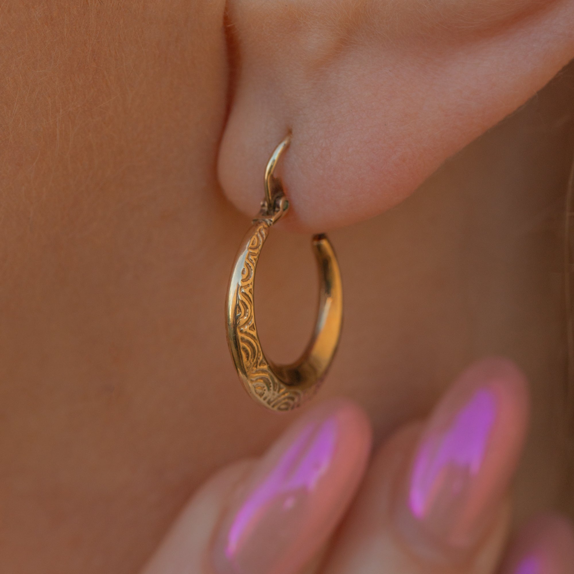 These 9ct Gold engraved huggie hoop earrings are the perfect pair for everyday wear!