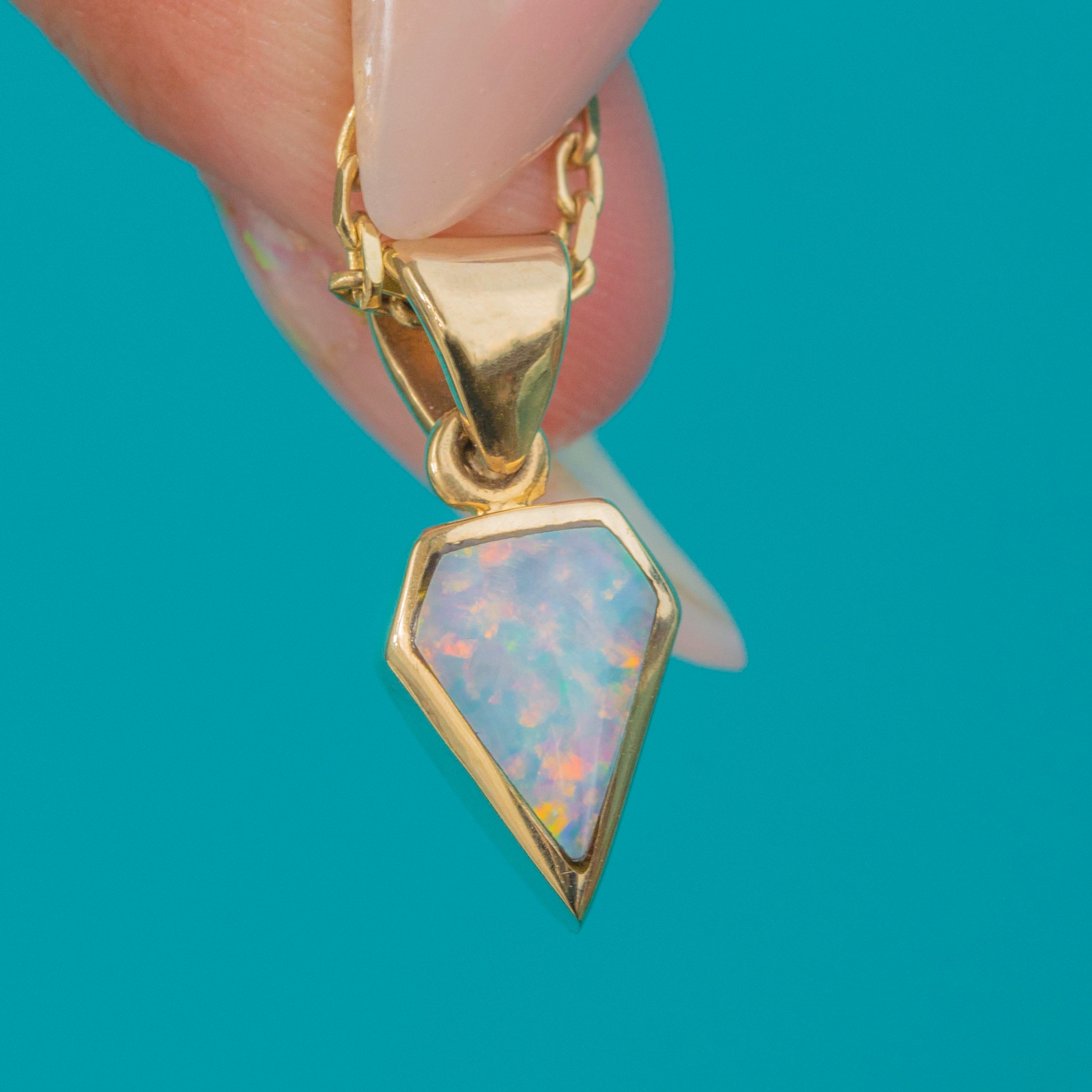9ct Gold Geometric Opal Pendant with 18" Chain