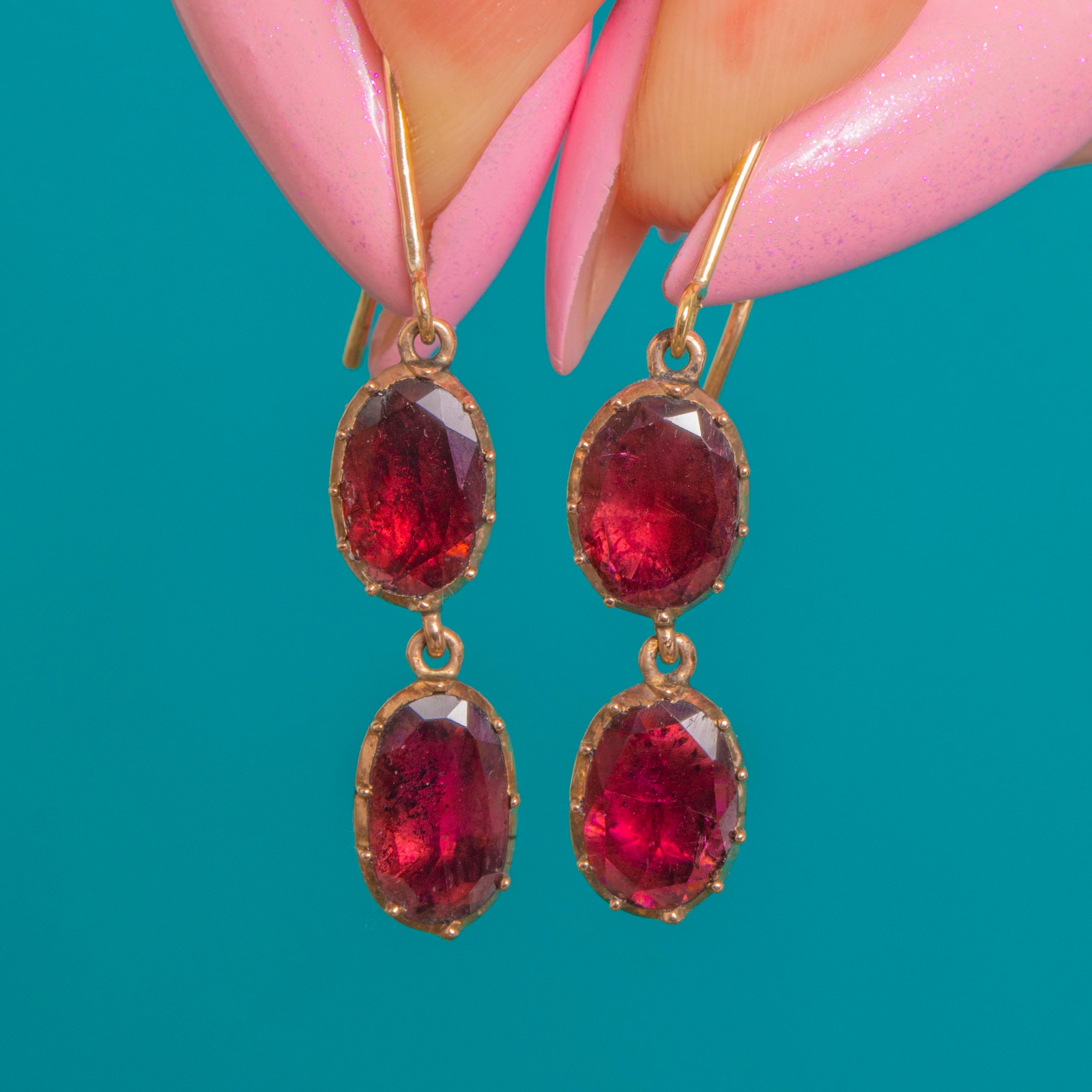 9ct Gold Georgian Garnet Double Drop Earrings