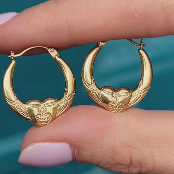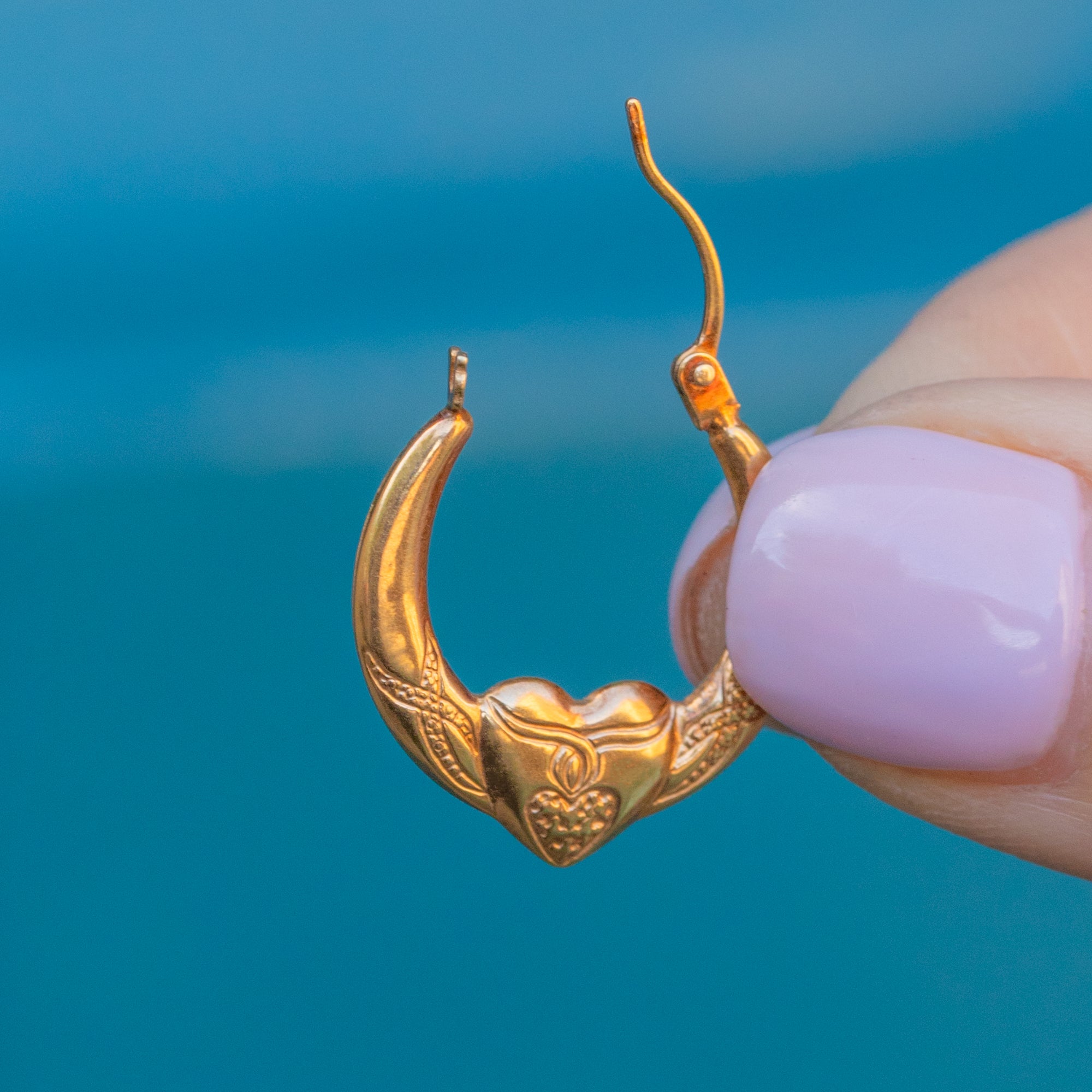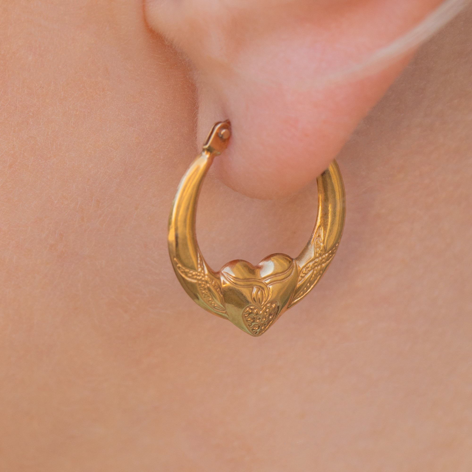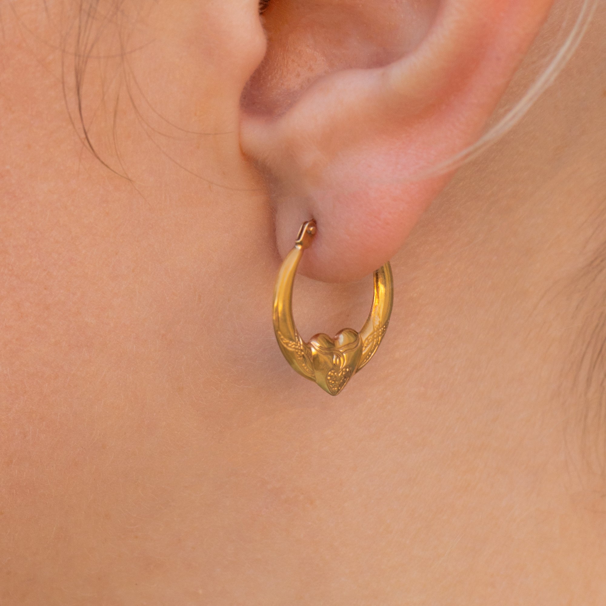 These 9ct Gold heart hoop earrings are a delight! Ideal for daily wear, these hoops are the perfect size and will add a flash of vintage Gold to any attire.