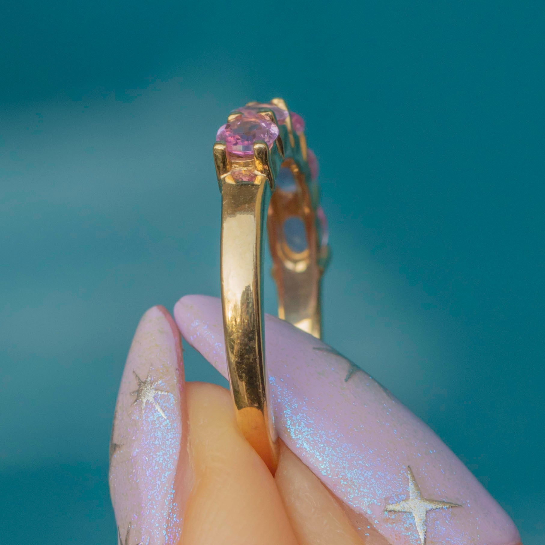 Add a pop of pastel to your collection with this 9ct Gold pink Sapphire eternity ring!