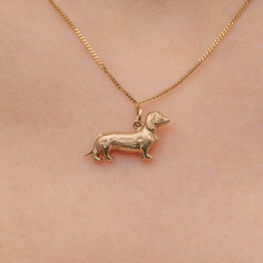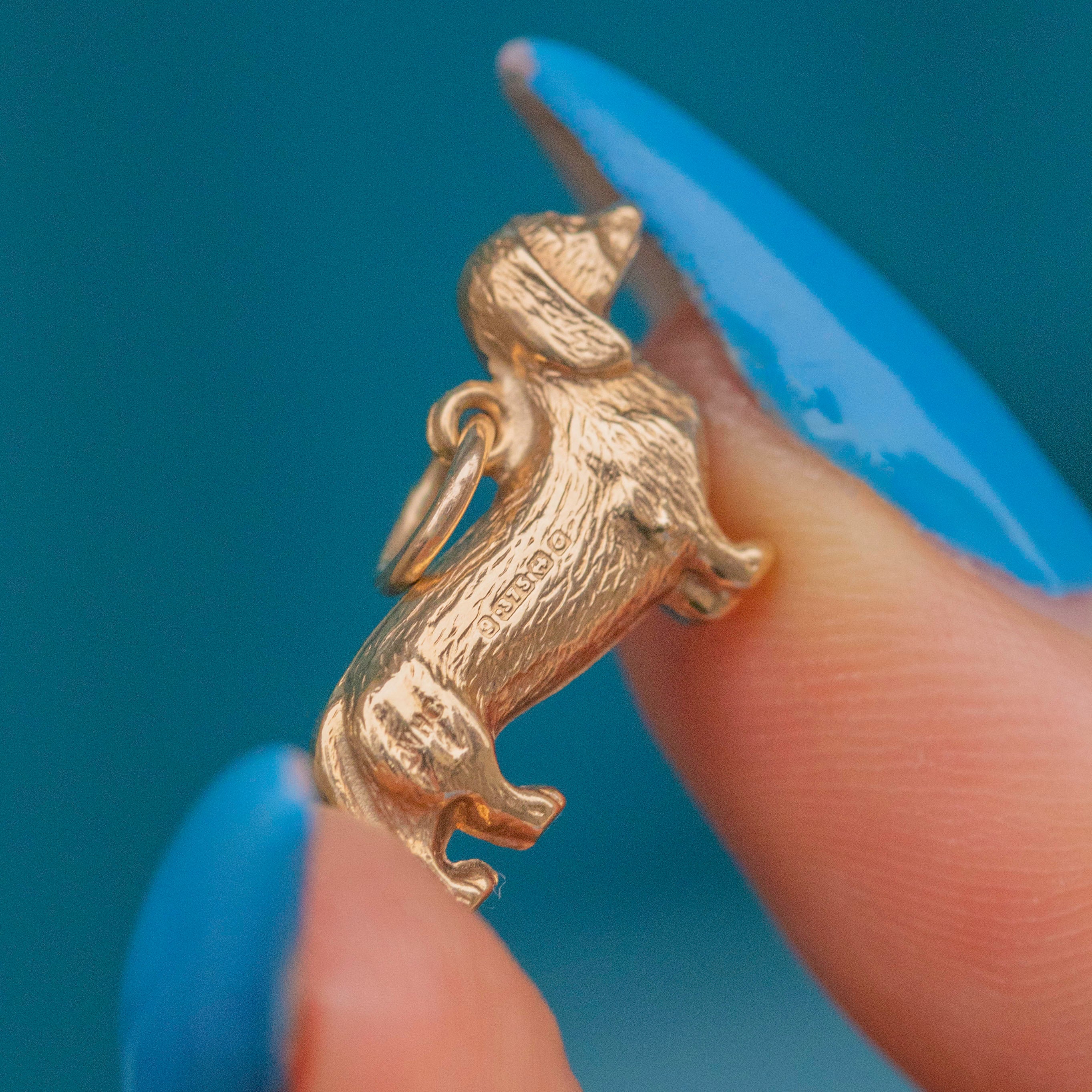 A piece to celebrate man's best friend, this 9ct Gold sausage dog charm is the perfect accessory for any dog lover! Crafted from solid 9ct Gold, the attention to detail is next to none, with finely engraved fur and defined facial features, this vintage pendant is packed full of character.