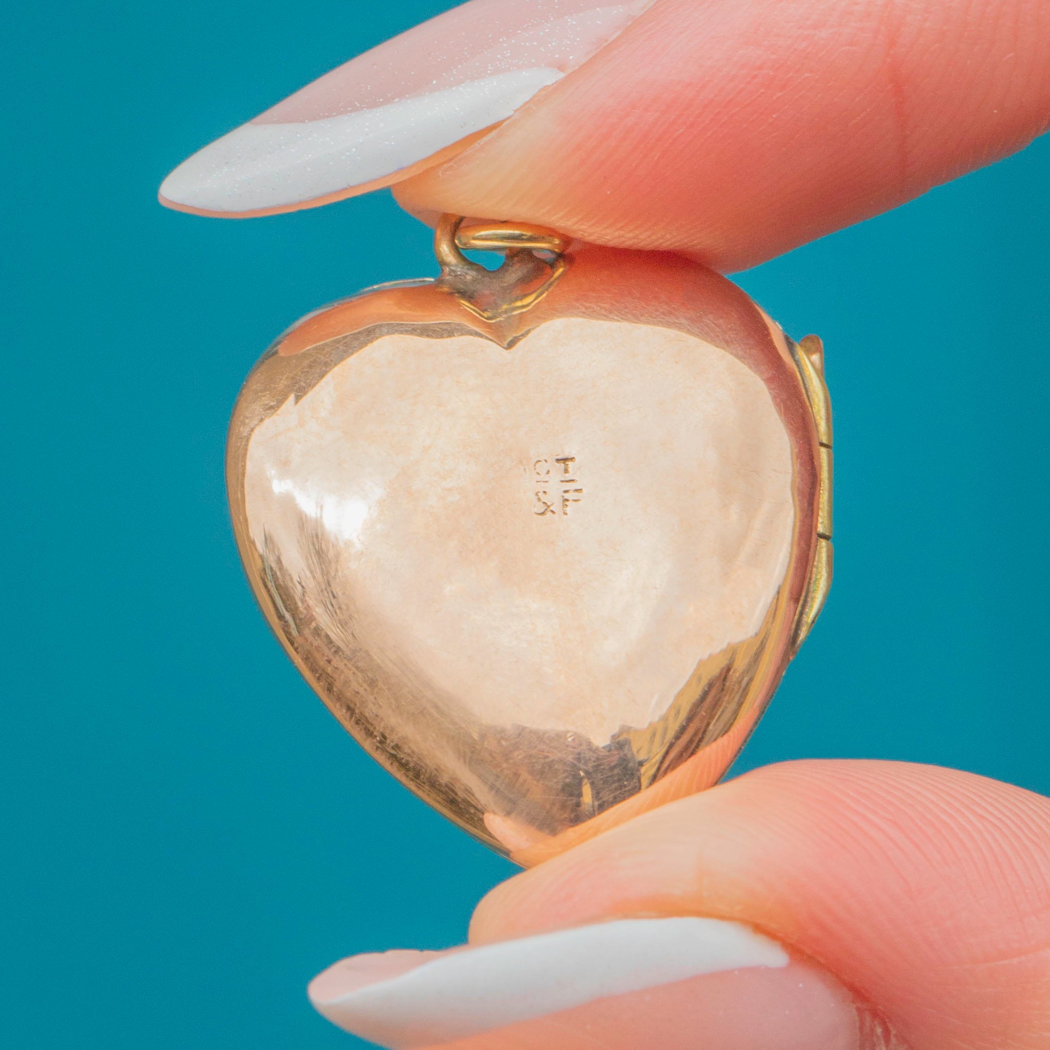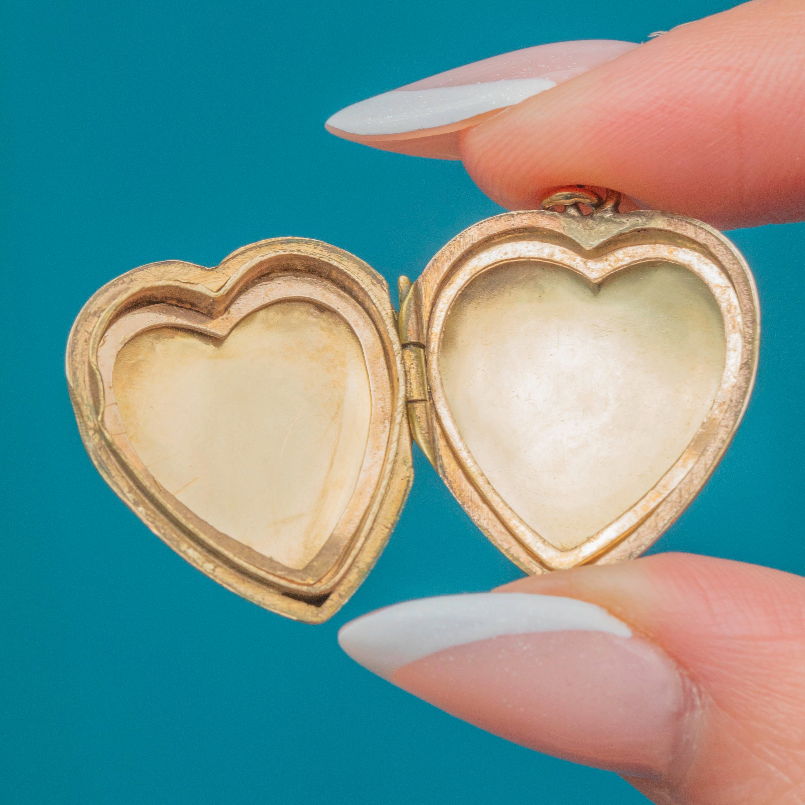 VERY GOOD: This 9ct Gold sunburst heart locket is in very good condition! The locket has both frames present so your photos will remain safe. The sunburst design is in fabulous condition, crisp and vibrant, and the Gold hue is simply divine. The locket opens from the bottom and closes tightly, guaranteed to provide you with decades of happiness!