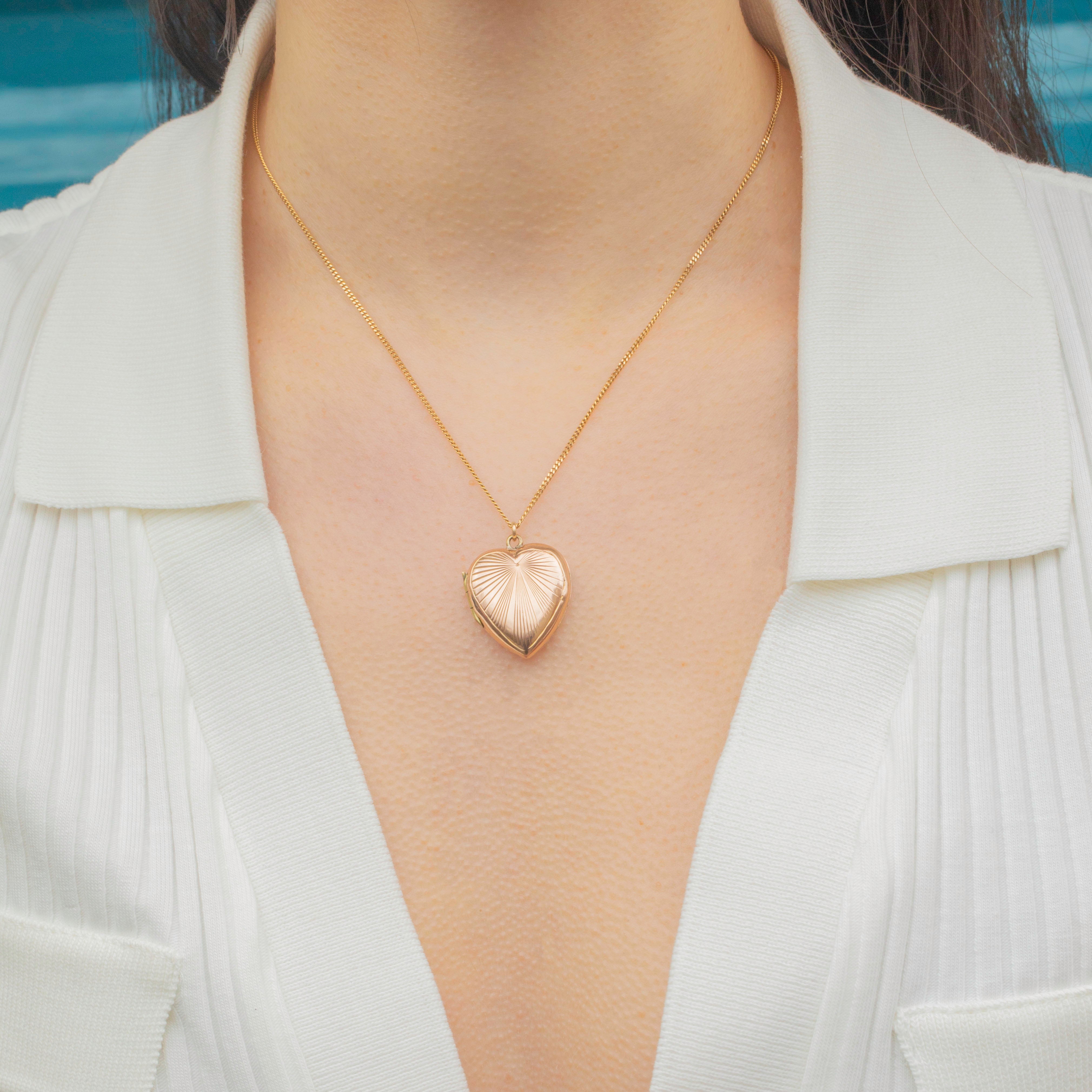 We are in love with this 9ct Gold sunburst heart locket! Steeped in Art Deco allure, this is a wonderful piece to gift, with hearts being a timeless symbol of love.