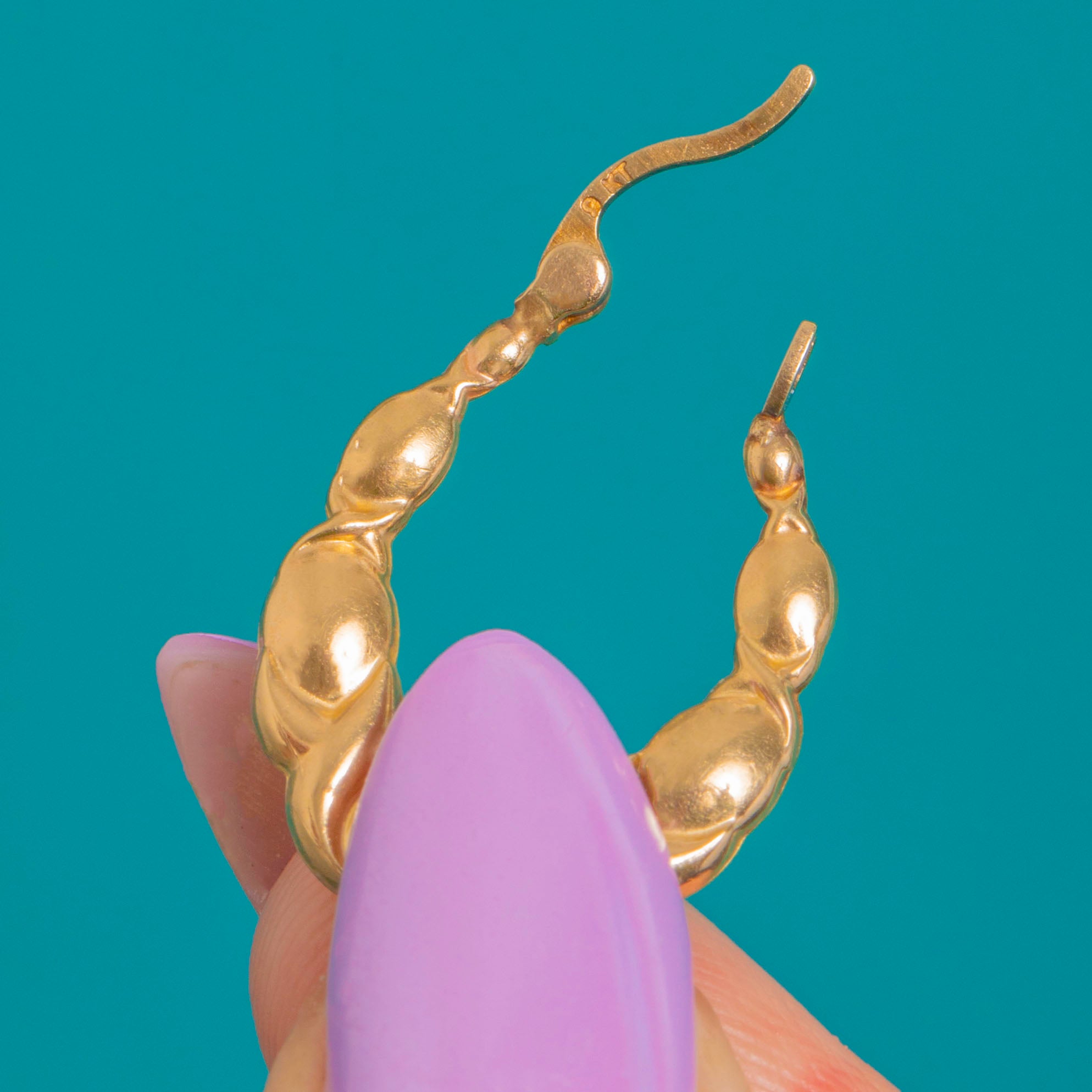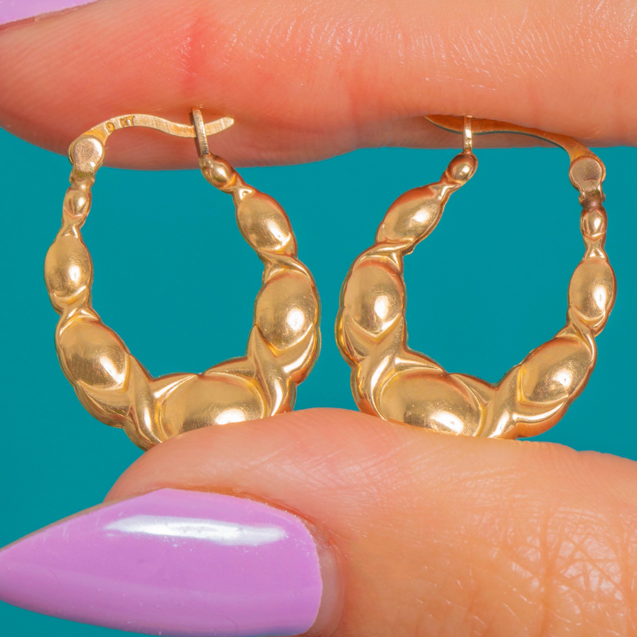 Sculptural and sleek, these Vintage 9ct Gold mini hoops are formed from a rhythm of softly domed segments that flow in an undulating silhouette. Their high-polish finish catches the light beautifully, delivering a warm, contemporary look with timeless appeal.