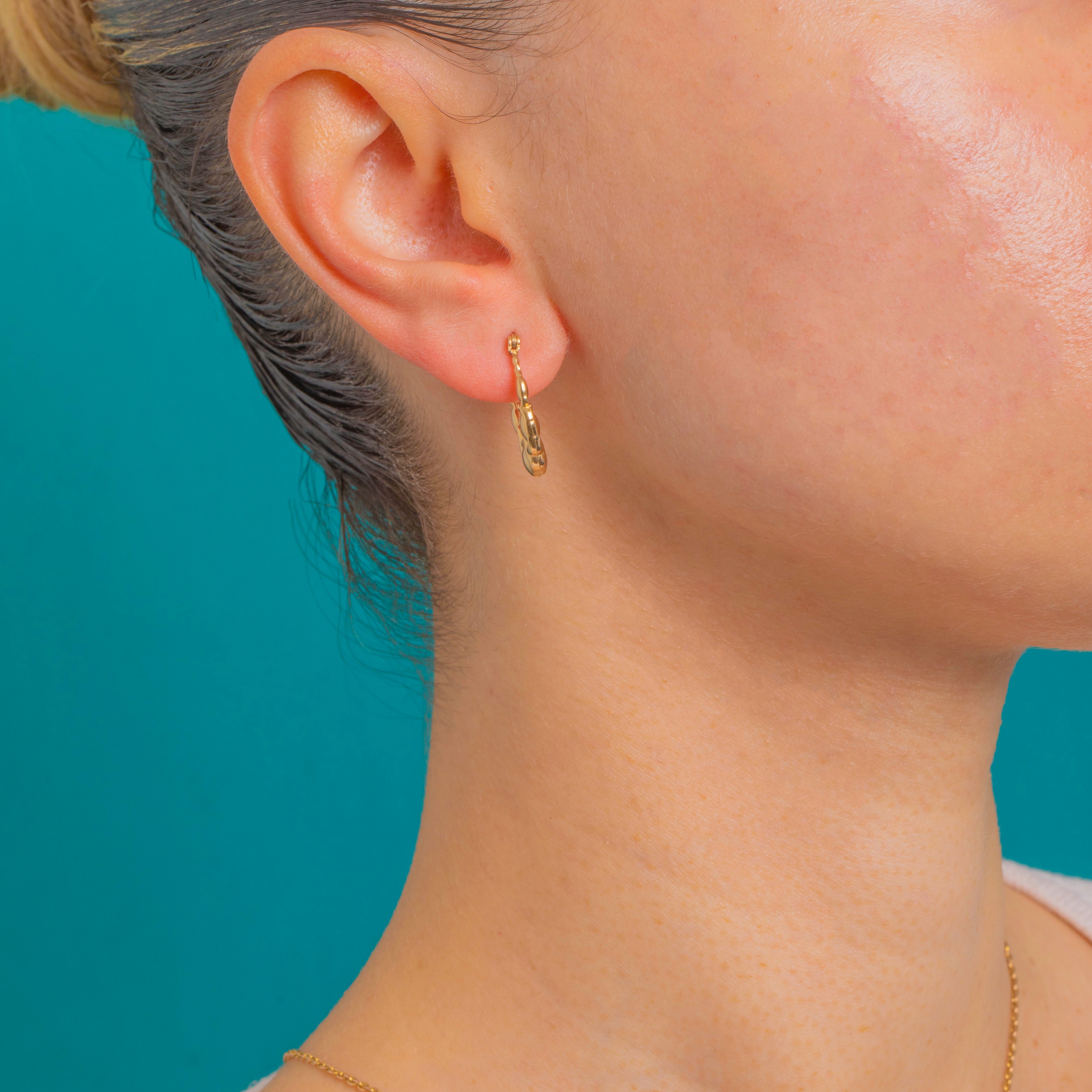 Designed for effortless wear, the hinged closures snap shut neatly to sit close to the ear. Pure Gold lets the elegant form take centre stage, with a subtle stamp to the interior for a refined finishing touch.