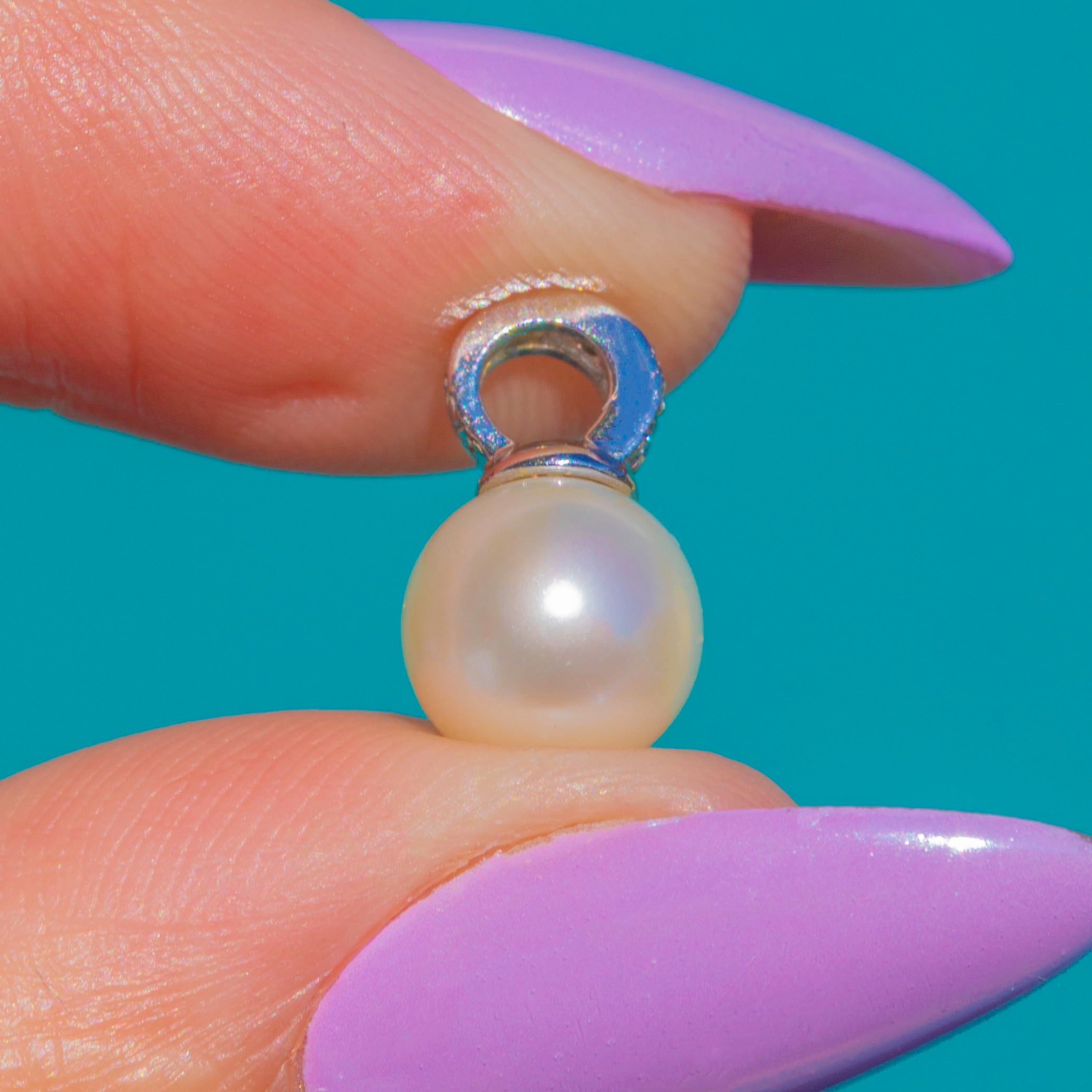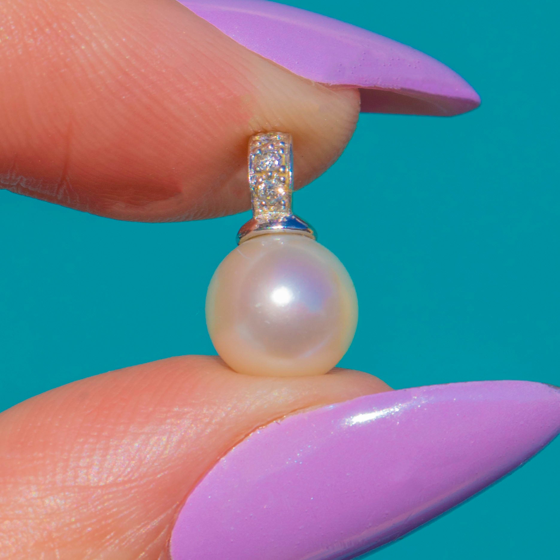 EXCELLENT: The Pearl displays high lustre and a smooth surface with no visible chips or cracks. The pavé-set Diamonds are bright and securely set, with no losses observed. The 9ct White Gold shows only the lightest signs of wear, consistent with careful use.