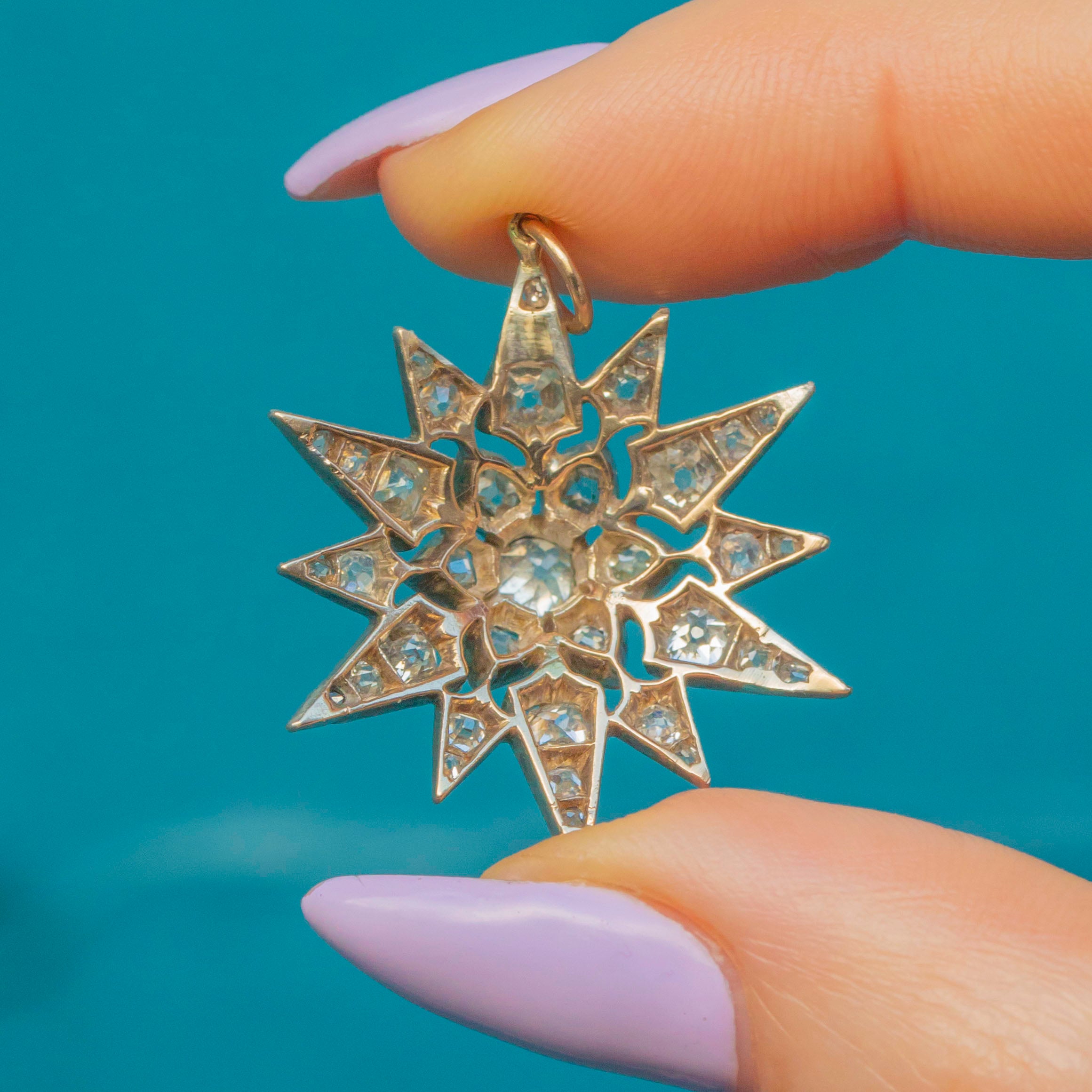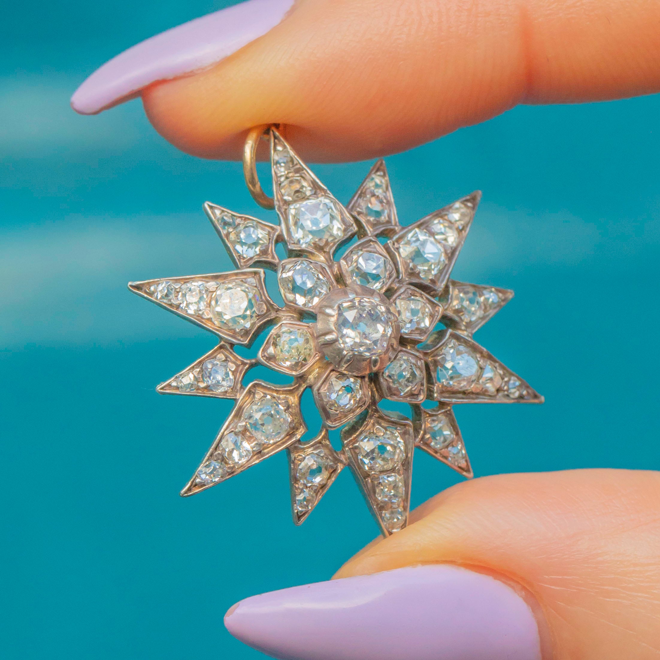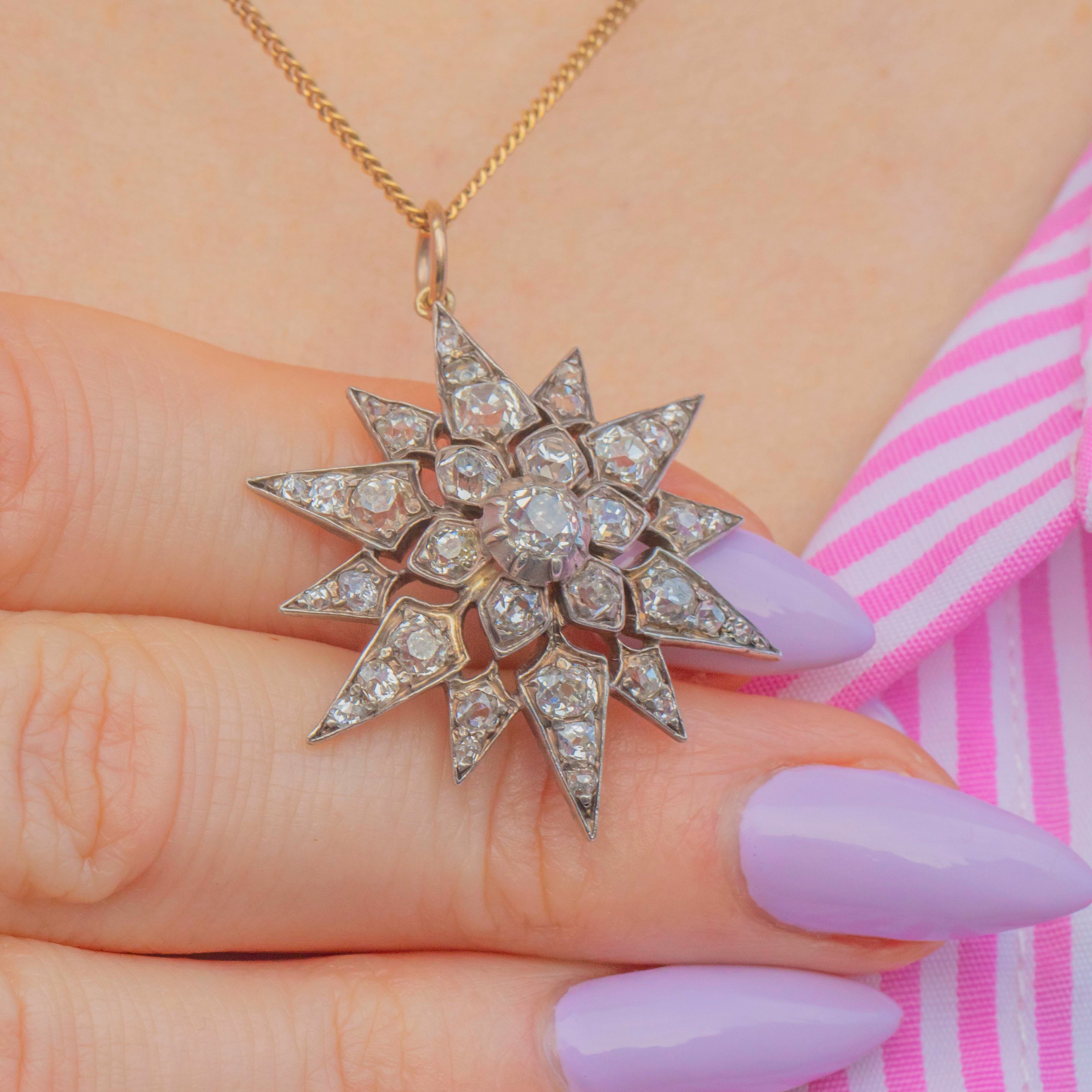 Antique 14ct Gold & Silver Diamond Starburst Pendant, 1.75ct