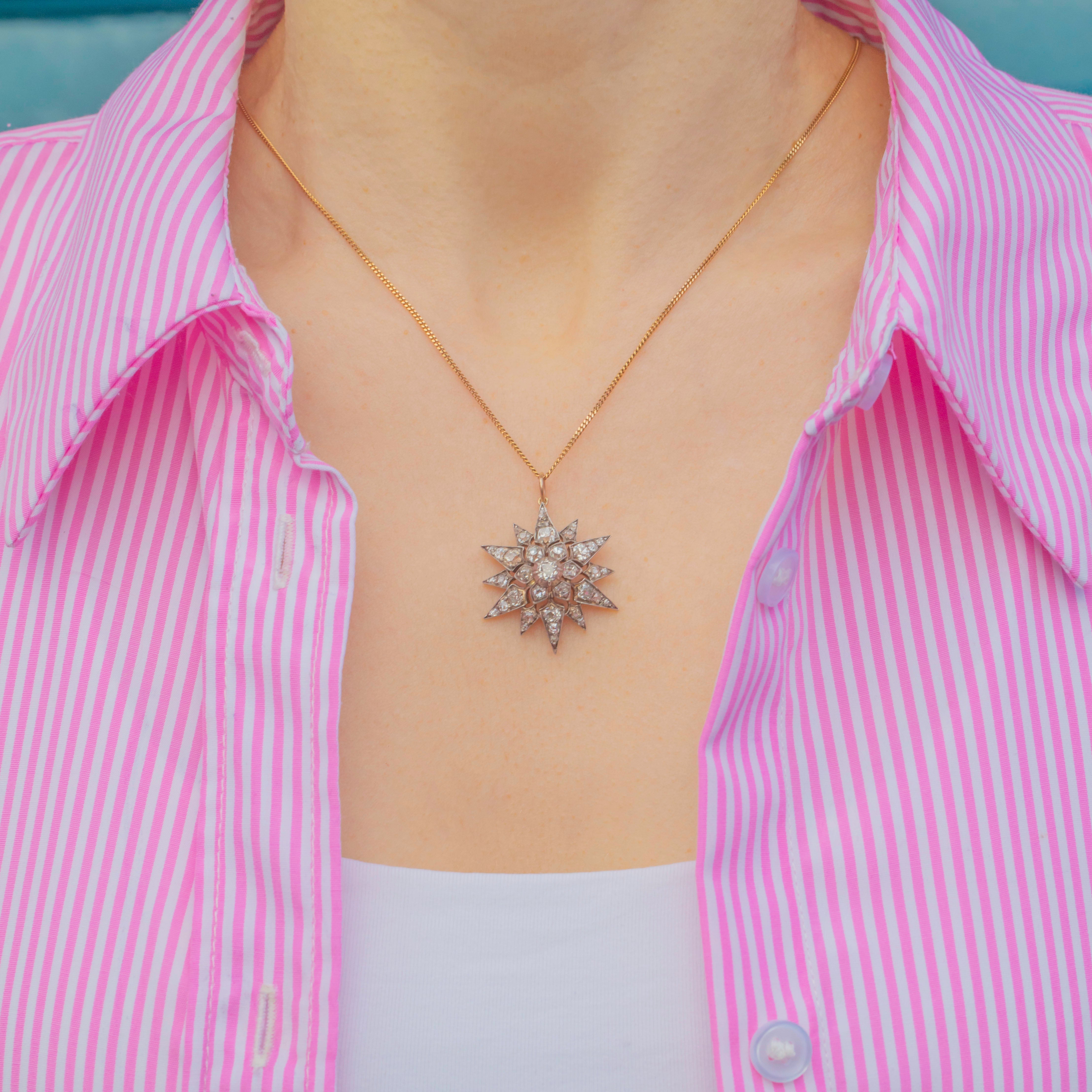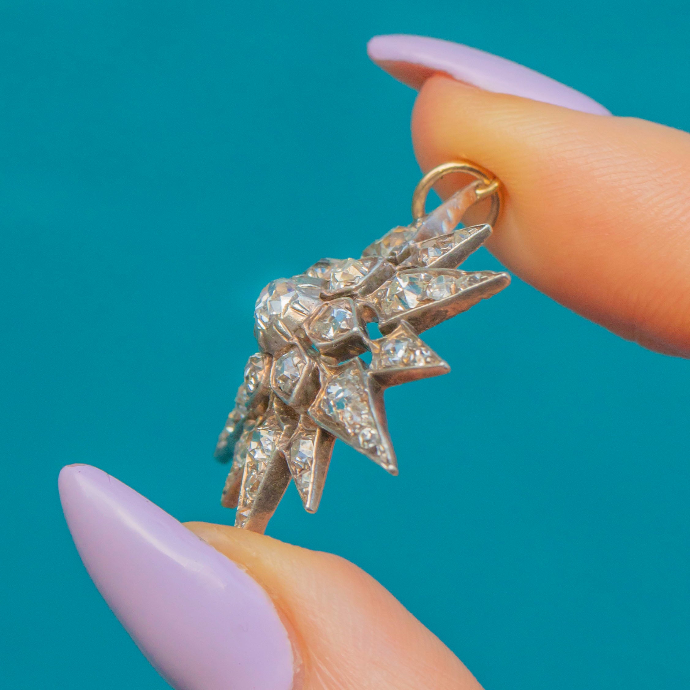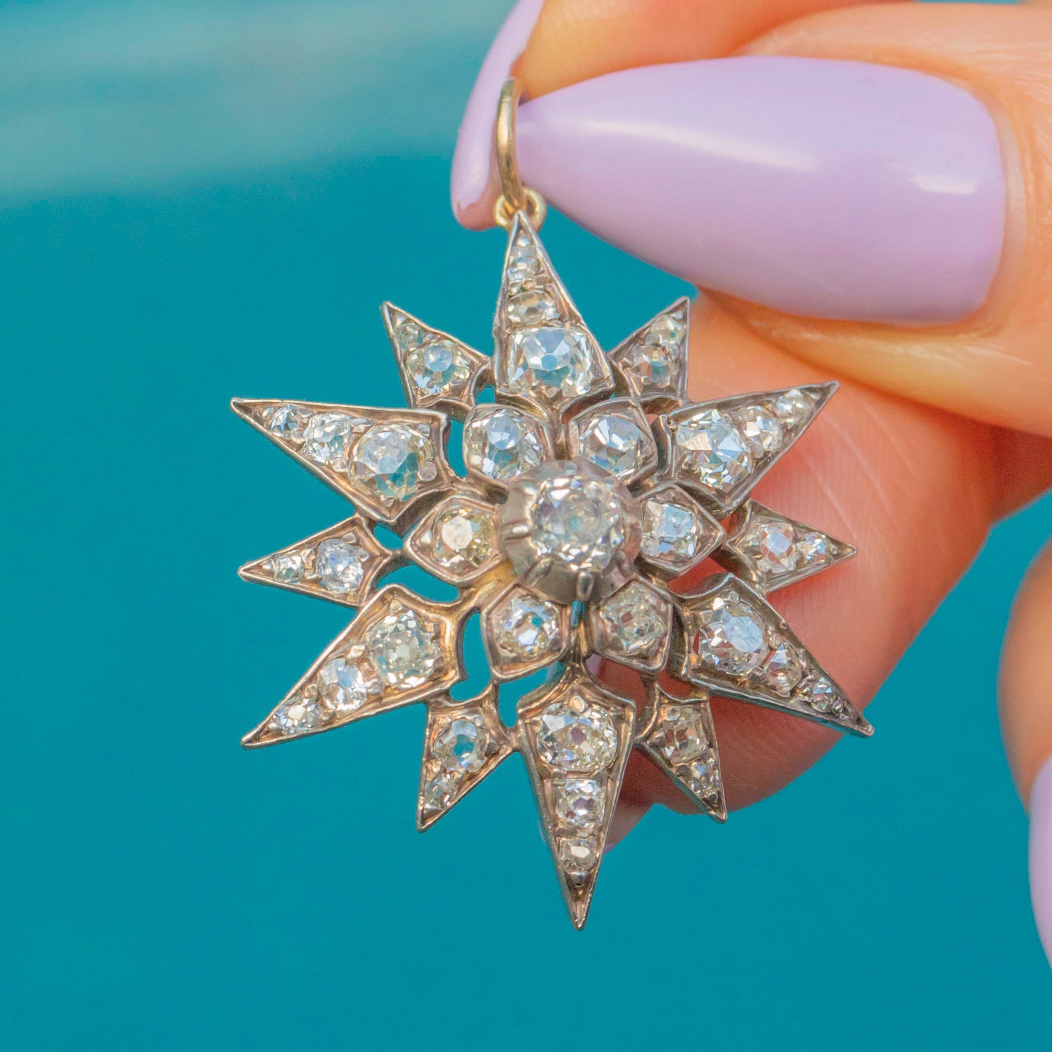 Antique 14ct Gold & Silver Diamond Starburst Pendant, 1.75ct
