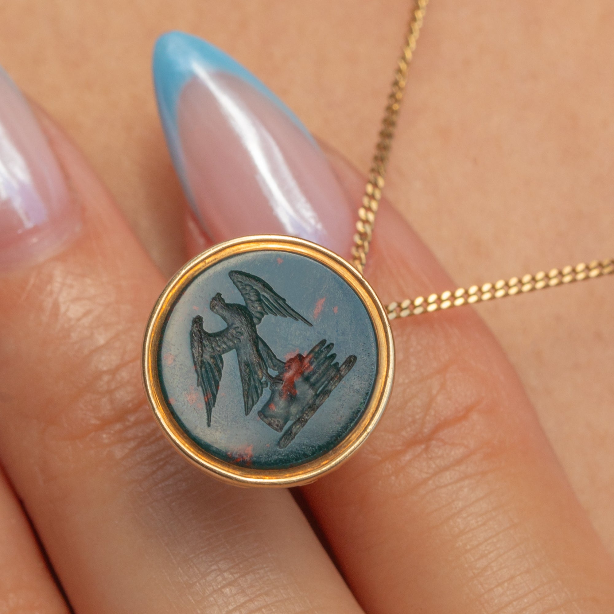 Antique 15ct Gold Bloodstone Eagle Intaglio Fob Pendant