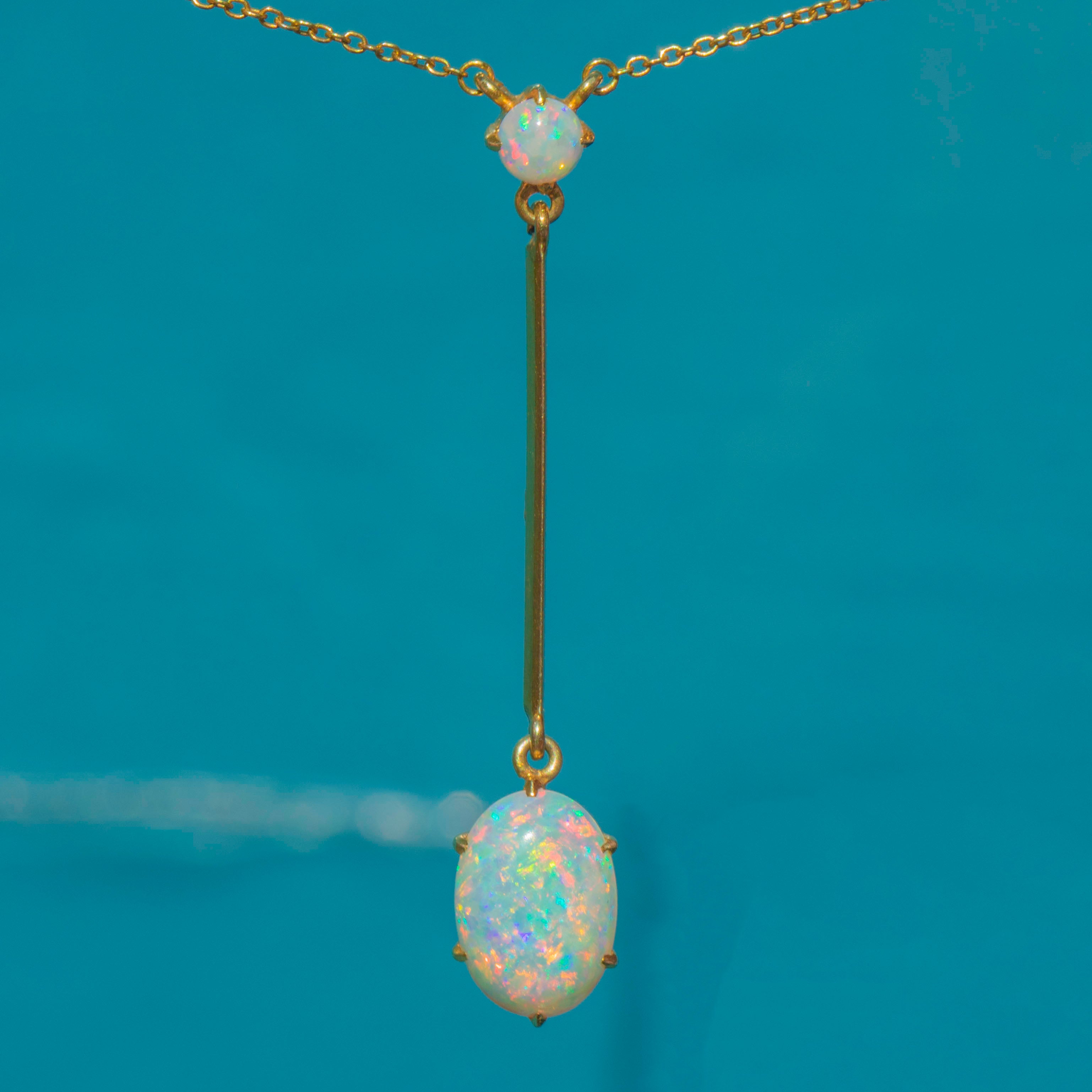 Antique 15ct Gold Opal Drop Necklace, 1.41ct Natural Solid Opal